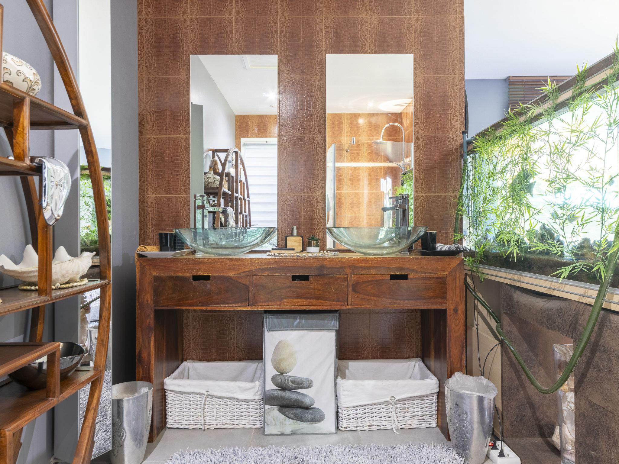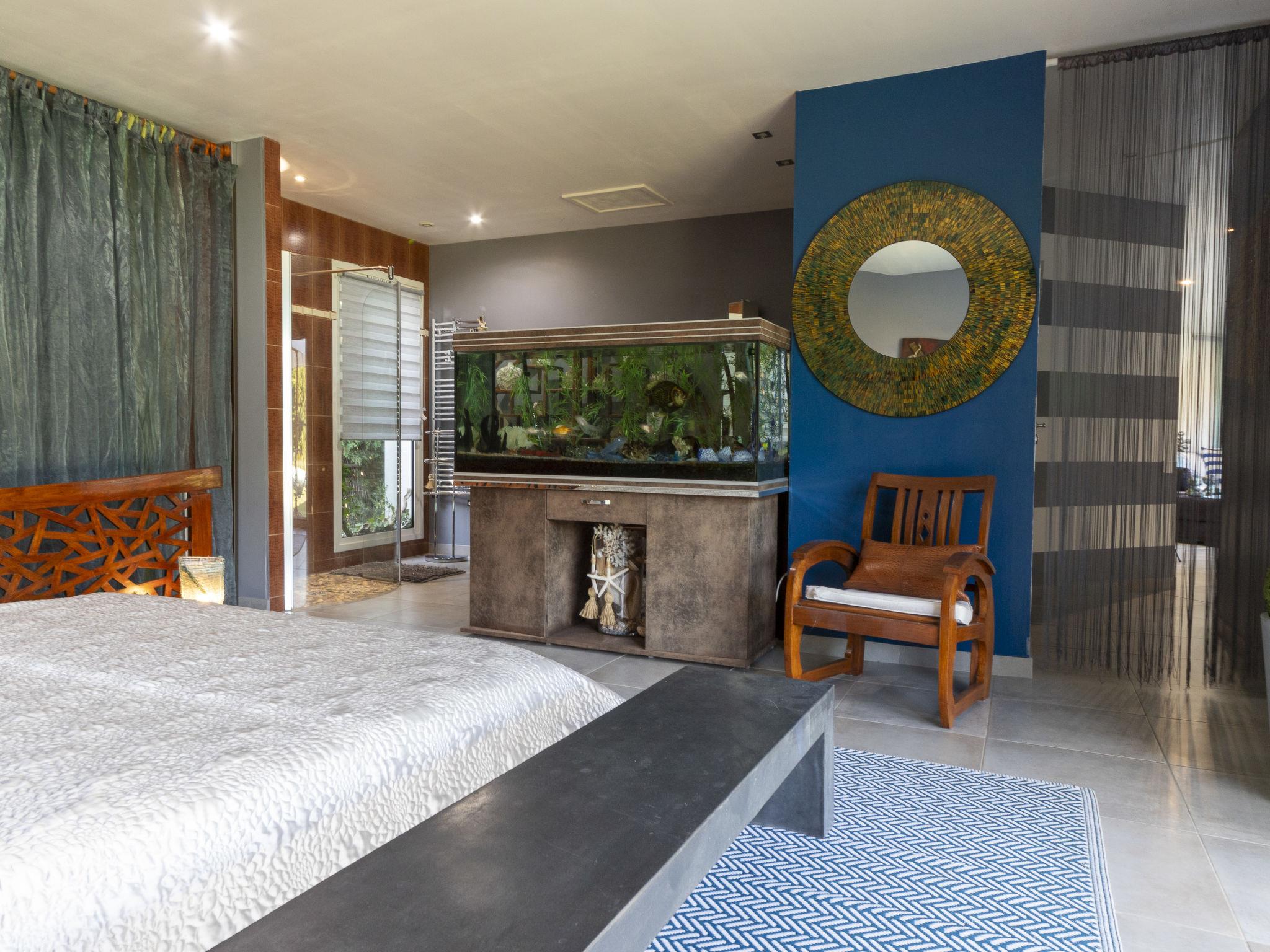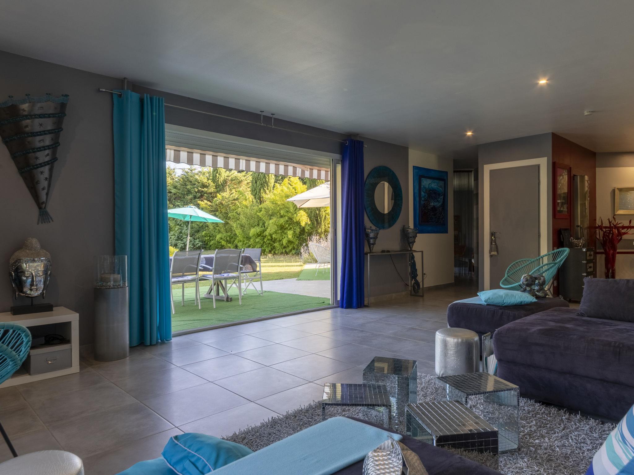 "Un petit coin de paradis", 2-room house 90 m2. Object suitable for 2 adults + 2 children. Modern furnishings: living/dining room with 1 sofabed (270 cm, length 240 cm), TV (flat screen), air conditioning. Exit to the terrace. 1 room with panoramic window with 1 double bed (160 cm), shower and air conditioning. Exit to the terrace. Open kitchen (oven, dishwasher, 3 ceramic glass hob hotplates, microwave, electric coffee machine). Sep. WC. Heating. Terrace furniture, electric barbecue, deck chairs (4). View of the swimming pool and the garden. Facilities: washing machine, baby cot. Internet (WiFi, free). Please note: 1 small pet/ dog allowed. Smoke alarm. The pool mentioned in the description is for private use.
