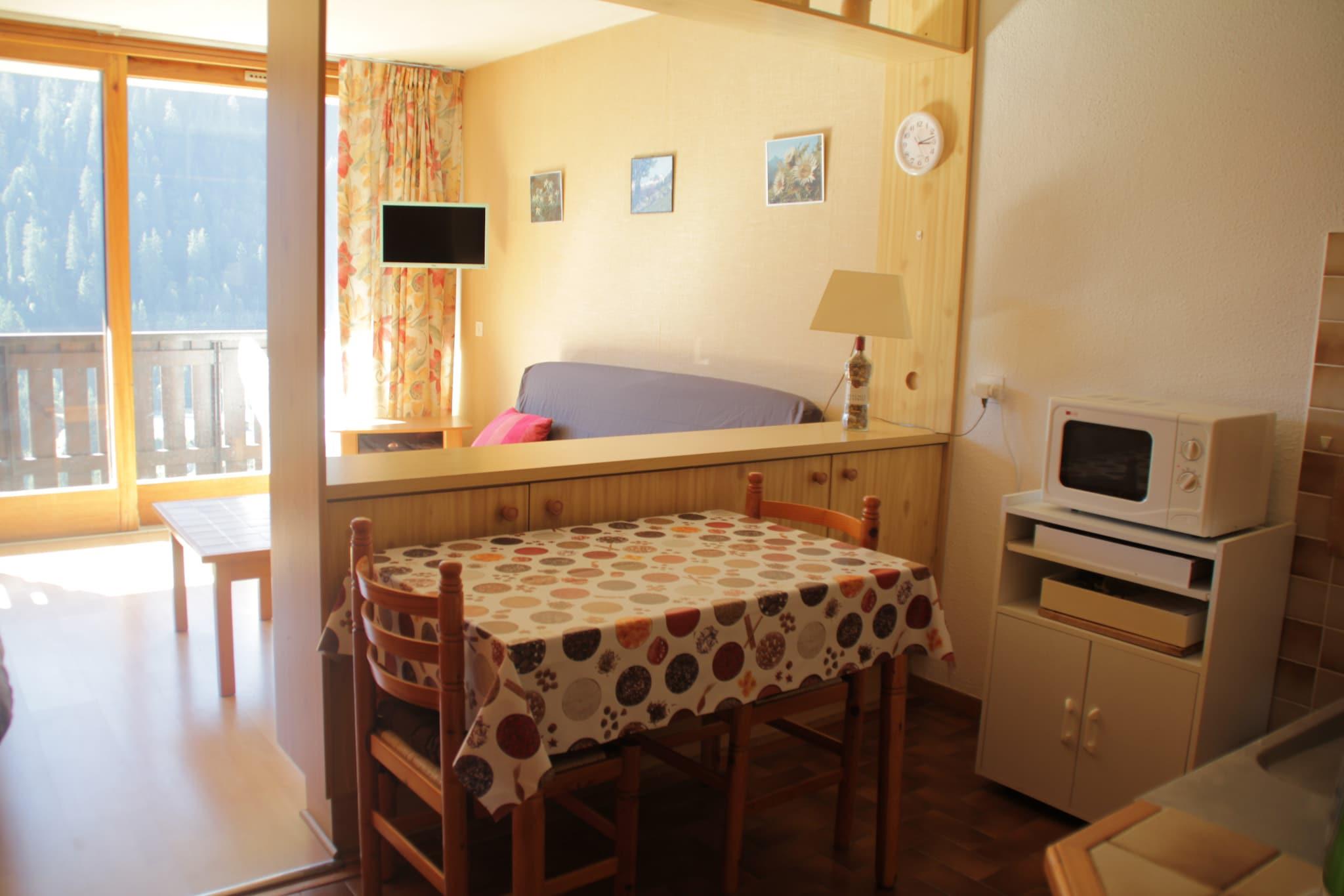 Denne charmerende studiolejlighed i hjertet af landsbyen tilbyder et hyggeligt tilflugtssted med en betagende udsigt over dalen. Den er designet til op til fire gæster og har en komfortabel dobbelt sovesofa og et sæt køjesenge, hvilket gør den ideel til par eller små familier. Den lyse opholdsstue er udstyret med et fladskærms-tv, og store vinduer åbner ud til en privat balkon, hvor gæsterne kan nyde det fantastiske bjerglandskab. Et skiskab er tilgængeligt til opbevaring, og en udendørs parkeringsplads sikrer problemfri adgang. Kæledyr er velkomne, så gæsterne kan tage deres lodne ledsagere med. Denne studiolejlighed har en perfekt beliggenhed kun 500 meter fra den nærmeste svævebane, hvilket gør den til en god base for skiløb og vandreture. En gratis shuttlebus stopper i nærheden, hvilket giver nem adgang til vigtige områder. Butikker, herunder et bageri og en købmand, er kun 400 meter væk, hvilket sikrer bekvemmelighed til daglige fornødenheder. Gæsterne kan også nyde et udvalg af lokale spisemuligheder, med en charmerende restaurant kun 200 meter fra boligen, som serverer traditionelle Savoyard-specialiteter i varme og indbydende omgivelser. Lejligheden har et veludstyret åbent køkken med elektrisk køleskab, ovn, mikroovn, kedel, brødrister og en Dolce Gusto-kaffemaskine til friskbrygget kaffe hver morgen. Badeværelset har badekar og toilet, hvilket giver et afslappende rum efter en aktiv dag. Med sin førsteklasses beliggenhed og moderne bekvemmeligheder er dette hyggelige tilflugtssted perfekt til en fornøjelig bjergferie. Bemærk: Turistskatten opkræves på ejendommen og er ikke en del af udlejningen.