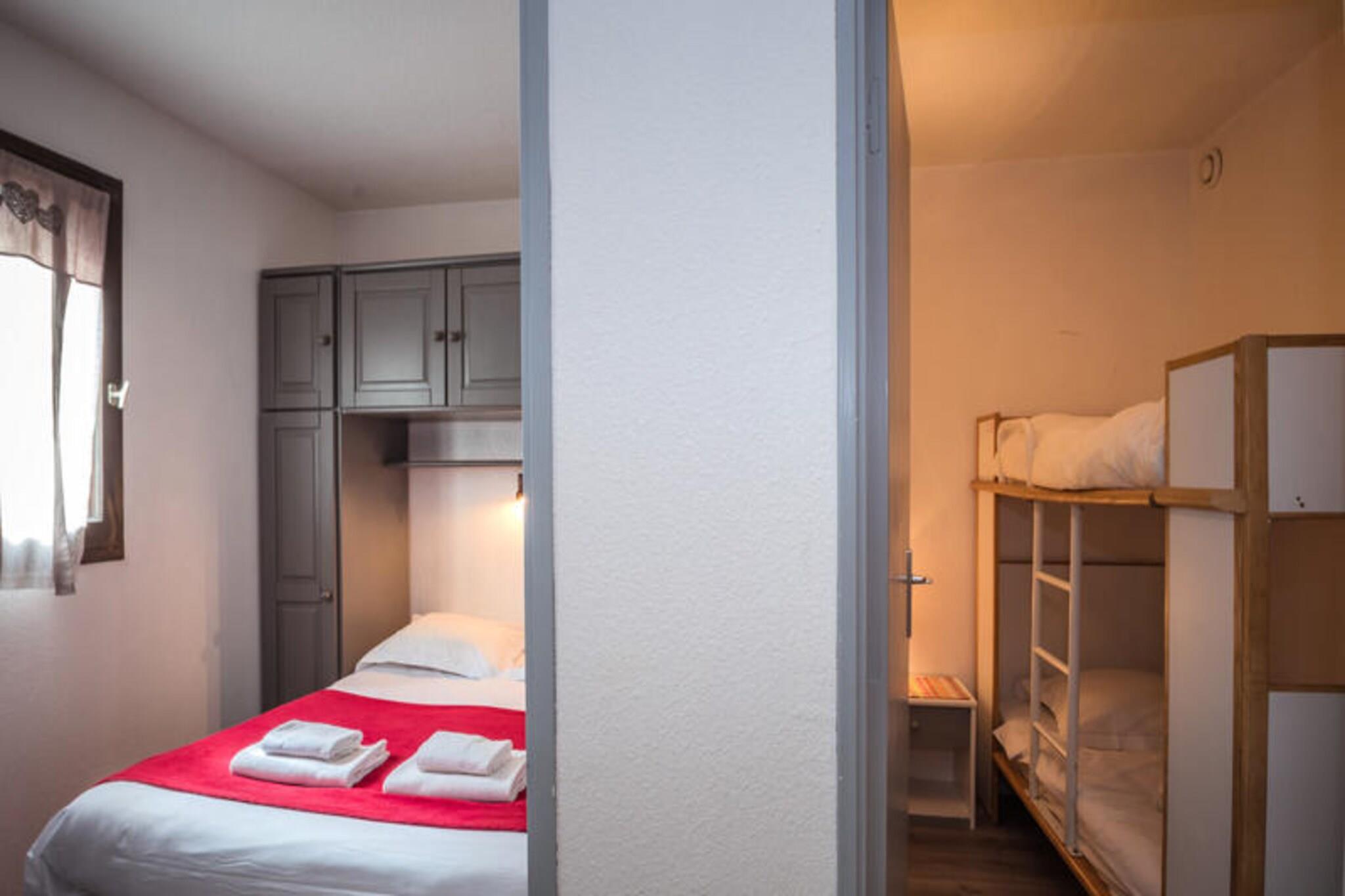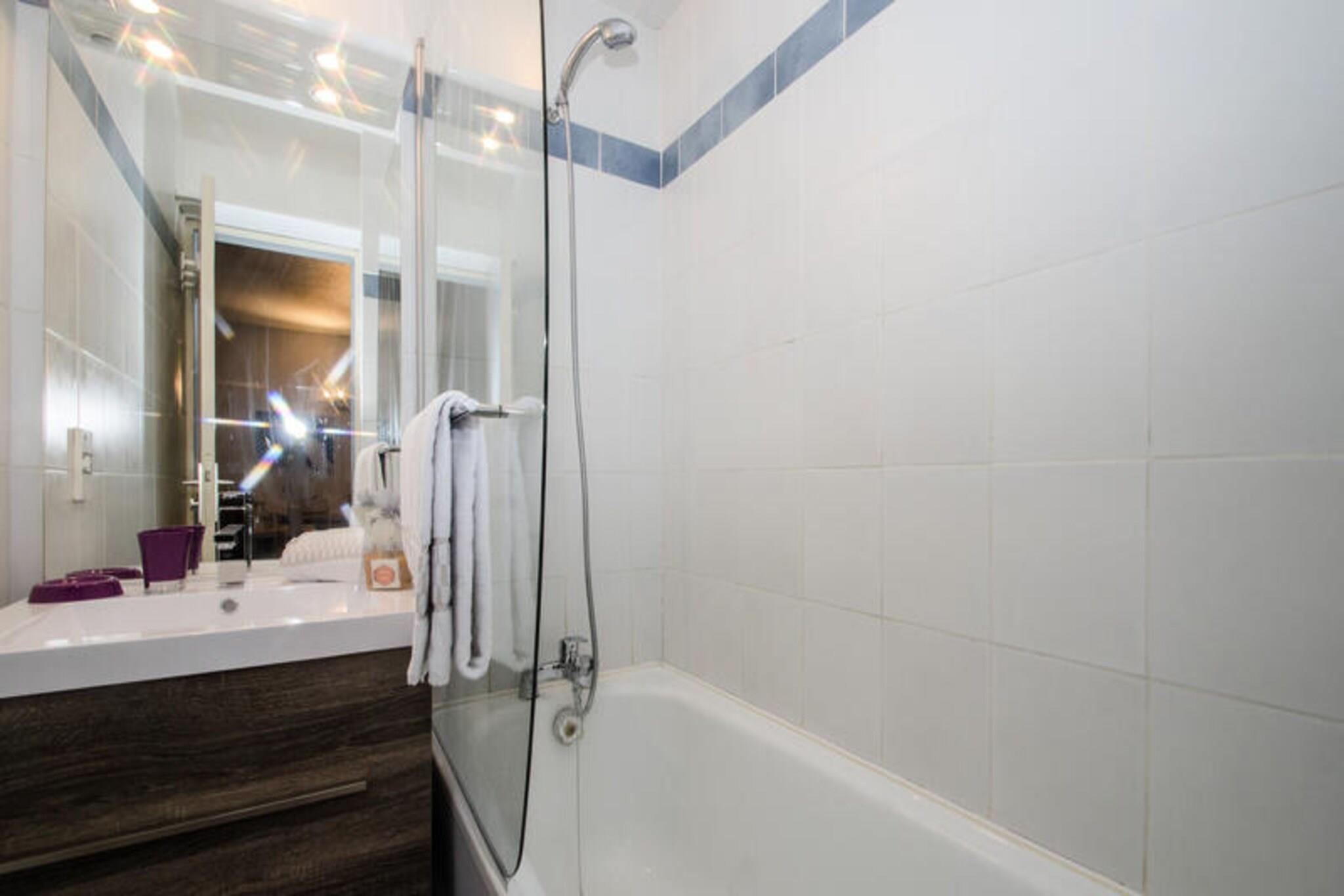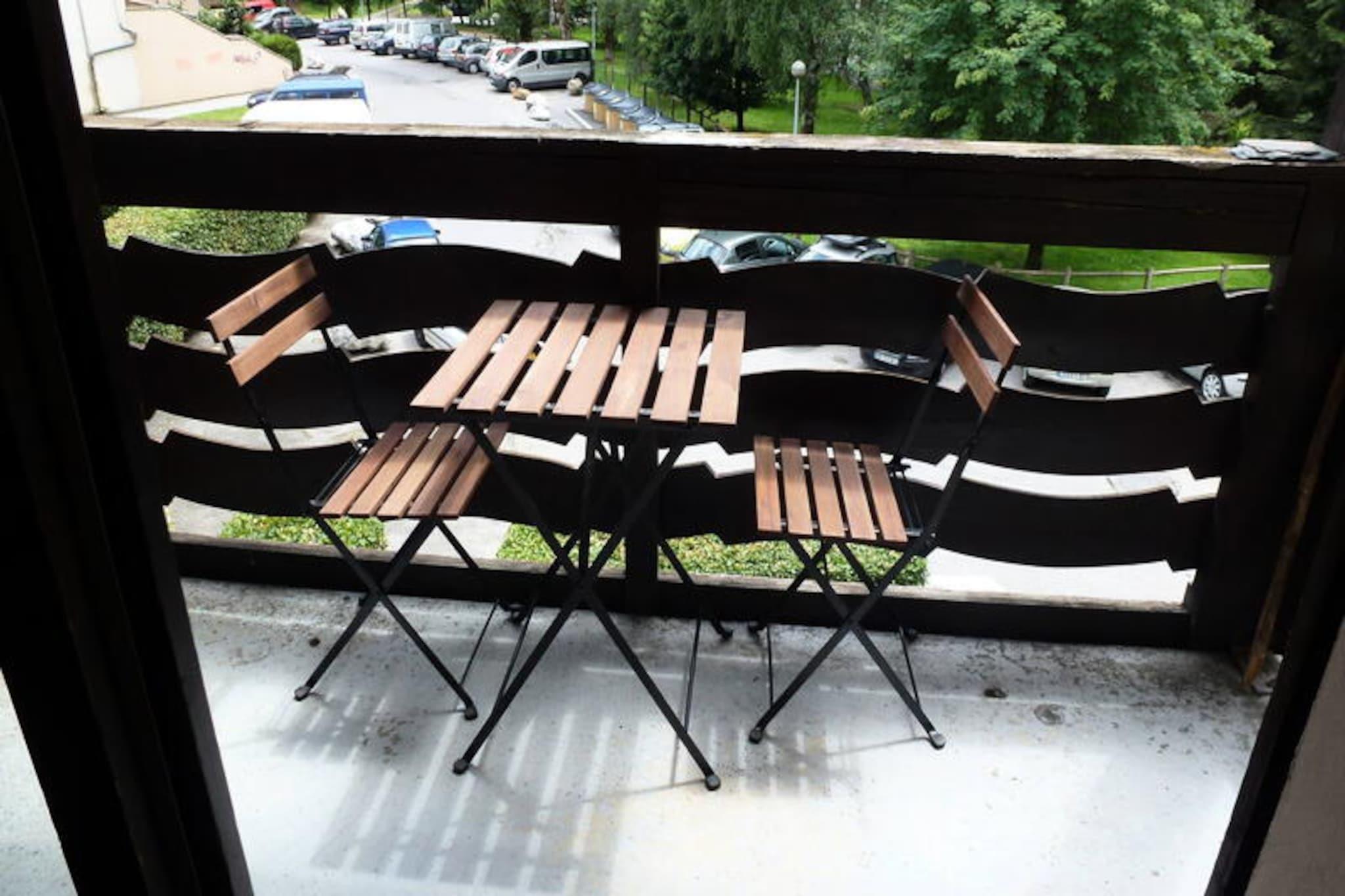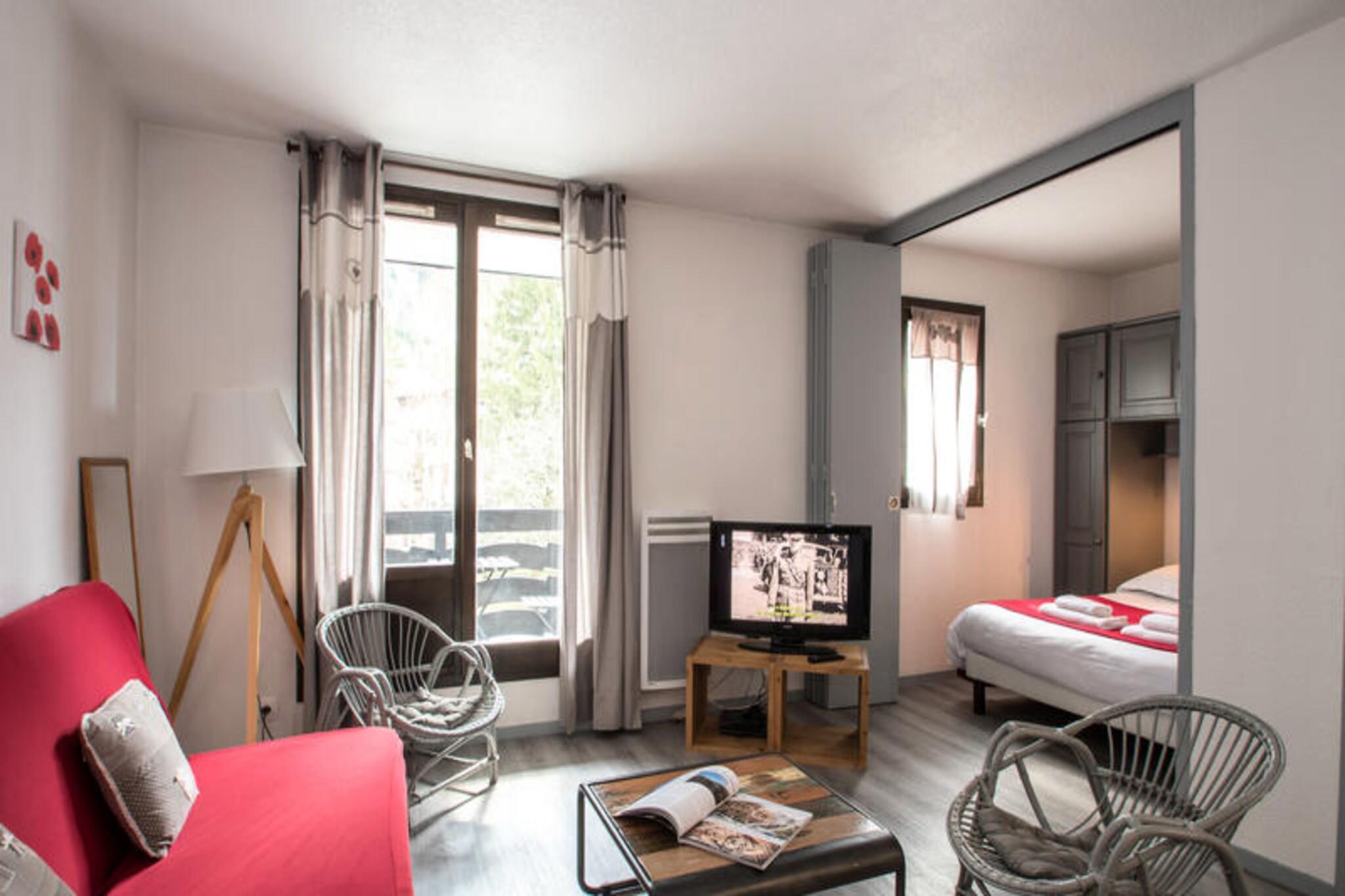 Denne charmerende lejlighed på 36 m², beliggende på 1. sal i en bygning med elevator, kan rumme op til 4 gæster. Det har opholds- og spisestue med tv og dvd-afspiller, balkon med et lille bord og to stole med en fantastisk udsigt over Mont Blanc. Lejligheden har et soveværelse med dobbeltseng (140x190) og et kabineværelse med to køjesenge (80x190). Badeværelset har badekar, og der er separate toiletter. Ejendommen er ikke-ryger og accepterer ikke kæledyr. Der opkræves et depositum med kreditkort inden ankomst. Denne lejlighed ligger i Chamonix Sud-kvarteret, kun 3 minutters gang fra gågaden, hvor gæsterne kan udforske butikker, caféer og markeder. Busstoppestedet ligger 270 meter derfra, og togstoppestedet (Aiguille du Midi) ligger 400 meter fra ejendommen. SNCF-stationen ligger 800 meter derfra, og tilbyder bekvemme transportmuligheder for at udforske de omkringliggende områder. Lejligheden har et veludstyret køkken med keramisk kogeplade, køleskab, opvaskemaskine og mikroovn. For ekstra bekvemmelighed er der underjordisk parkering med en højdegrænse på 1,85 meter og udendørs parkering tilgængelig med en højdegrænse på 2,20 meter. WiFi-adgang er tilgængelig i boligen, dog ikke garanteret. En velkomstpakke, badeværelsesprodukter, sengetøj og opredte senge ved ankomsten er inkluderet i dit ophold.