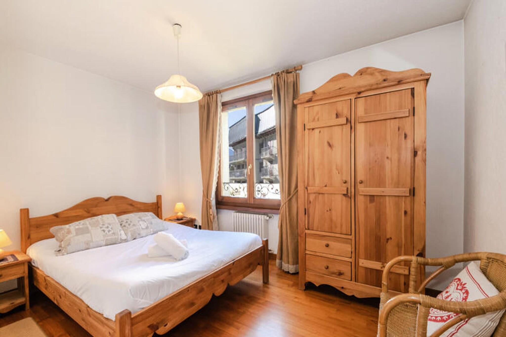 Denne smukke lejlighed på 43 m², beliggende på 2. sal med elevator i "Alpes 2"-boligen, kan rumme op til 4 personer. Beliggende i hjertet af Chamonix, det tilbyder en stue med en BZ type dobbelt sovesofa (130x190), tv og spiseplads. Det åbne køkken er fuldt udstyret med keramisk kogeplade, kombiovn/mikroovn, køleskab, opvaskemaskine, vaskemaskine, filterkaffemaskine, Nespresso, elkedel, brødrister og fonduemaskine. Lejligheden har også en balkon med et lille bord og to stole, perfekt til at nyde den naturskønne udsigt. Beliggende kun 260 meter fra busstoppestedet (Chamonix centrum), og i gåafstand til vigtige attraktioner, caféer og butikker, tilbyder lejligheden en fremragende base for at udforske Chamonix. Busstationen ligger 700 meter derfra, mens SNCF-togstationen ligger kun 550 meter fra ejendommen. Gæster kan nemt få adgang til byens pulserende centrum og nærliggende skisportssteder, hvilket gør det ideelt til både udendørs eventyr og afslapning. Lejligheden indeholder et soveværelse med dobbeltseng (160x200), et badeværelse og toilet. Det har også underjordisk parkering (højde 2 m), et skiskab og Wi-Fi. Der kræves et depositum med kreditkort før ankomst. Den ikke-ryger lejlighed accepterer ikke kæledyr og giver en behagelig plads til dit ophold i Chamonix.