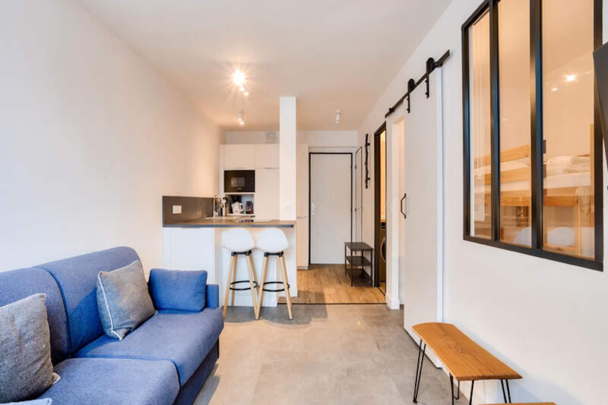 Beliggende i det pulserende Chamonix Sud-kvarter tilbyder denne charmerende lejlighed et hyggeligt tilflugtssted ved foden af ??Mont Blanc. Stuen indeholder to sovesofaer (sover to), en spiseplads med fire stole og et semi-åbent køkken for din bekvemmelighed. Soveværelset har en komfortabel dobbeltseng. Badeværelset har badekar, og der er separat toilet. Lejligheden ligger på 7. sal og har en betagende udsigt over bjergene. En parkeringsplads er også tilgængelig, hvilket sikrer nem adgang til ejendommen under dit ophold. Denne lejlighed er perfekt beliggende, kun 5 minutters gang fra byens centrum, hvor du finder et udvalg af caféer, butikker og restauranter. Uanset om du er i humør til et hyggeligt måltid eller har brug for udendørsudstyr, er alt, hvad du har brug for lige ved døren. Ejendommen ligger kun 1 km fra Mont Blanc, hvilket gør den til en ideel base for udendørsentusiaster. Vandring, skiløb og klatring er blot nogle af de aktiviteter, du kan nyde i nærheden, og tilbyder en uforglemmelig oplevelse i hjertet af Alperne. Yderligere faciliteter omfatter et veludstyret køkken med komfur, køleskab og mikrobølgeovn til tilberedning af måltider. Et fjernsyn er tilgængeligt for underholdning, og sengetøj leveres. Dog er håndklæder tilgængelige mod et ekstra gebyr. Ejendommen tilbyder også adgang til et wellness-center på Hôtel Les Aiglons, hvor du kan nyde en sauna til en afslappende oplevelse (mod betaling). Kæledyr er tilladt mod et ekstra gebyr. Denne lejlighed tilbyder både komfort og bekvemmelighed, hvilket sikrer et mindeværdigt ophold i Chamonix.