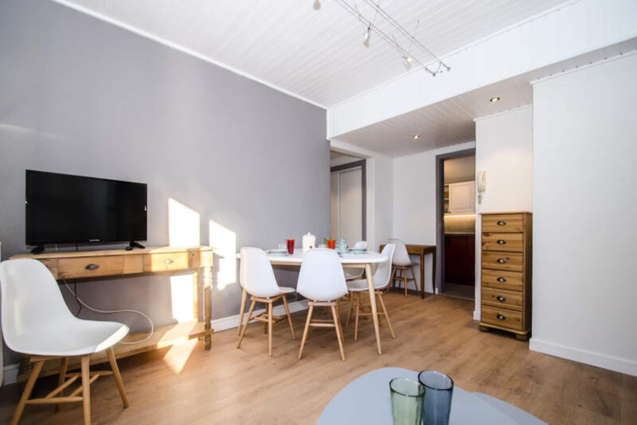 I det fredfyldte Le Lyret-distrikt i Chamonix tilbyder denne lyse og rummelige lejlighed på 49 m² et perfekt tilflugtssted for op til fire gæster. Kun en kort gåtur fra den livlige gågade kombinerer den ro med bekvemmeligheden ved at være tæt på hjertet af denne ikoniske alpeby. Uanset om du er her for at stå på ski på de legendariske pister eller udforske den betagende Mont Blanc-region, er denne lejlighed en ideel base for dine eventyr. Den gennemtænkte planløsning inkluderer en hyggelig stue med spiseplads, tv og en komfortabel dobbeltsovesofa. Det separate, fuldt udstyrede køkken har moderne apparater såsom keramisk kogeplade, mikrobølgeovn/ovn-kombination, opvaskemaskine og en Nespresso-maskine, hvilket gør madlavning til en leg. Soveværelset med tre senge har en dobbeltseng og en enkeltseng, hvilket sikrer afslappende nætter efter aktive dage. Et badeværelse med bidet og toilet, et spisekammer med vaskemaskine og en sydvestvendt balkon med fantastisk udsigt over dalen fuldender rummet. Yderligere faciliteter inkluderer Wi-Fi, udendørs parkering og skiopbevaring for din bekvemmelighed. Lejligheden ligger kun 130 meter fra Helbronner busstoppested, 350 meter fra Chamonix togstation og 650 meter fra den centrale busstation, og har dermed perfekte forbindelser til at udforske området. Fra charmerende lokale butikker og restauranter til skilifte og vandrestier i verdensklasse er alt, hvad du behøver, inden for rækkevidde. Med sin indbydende atmosfære, moderne komfort og uovertrufne beliggenhed inviterer denne lejlighed i Le Lyret dig til at opleve magien i Chamonix i enhver sæson. Uanset om du søger spændende udendørs eventyr eller fredelig afslapning i bjergene, begynder din alpine flugt her.