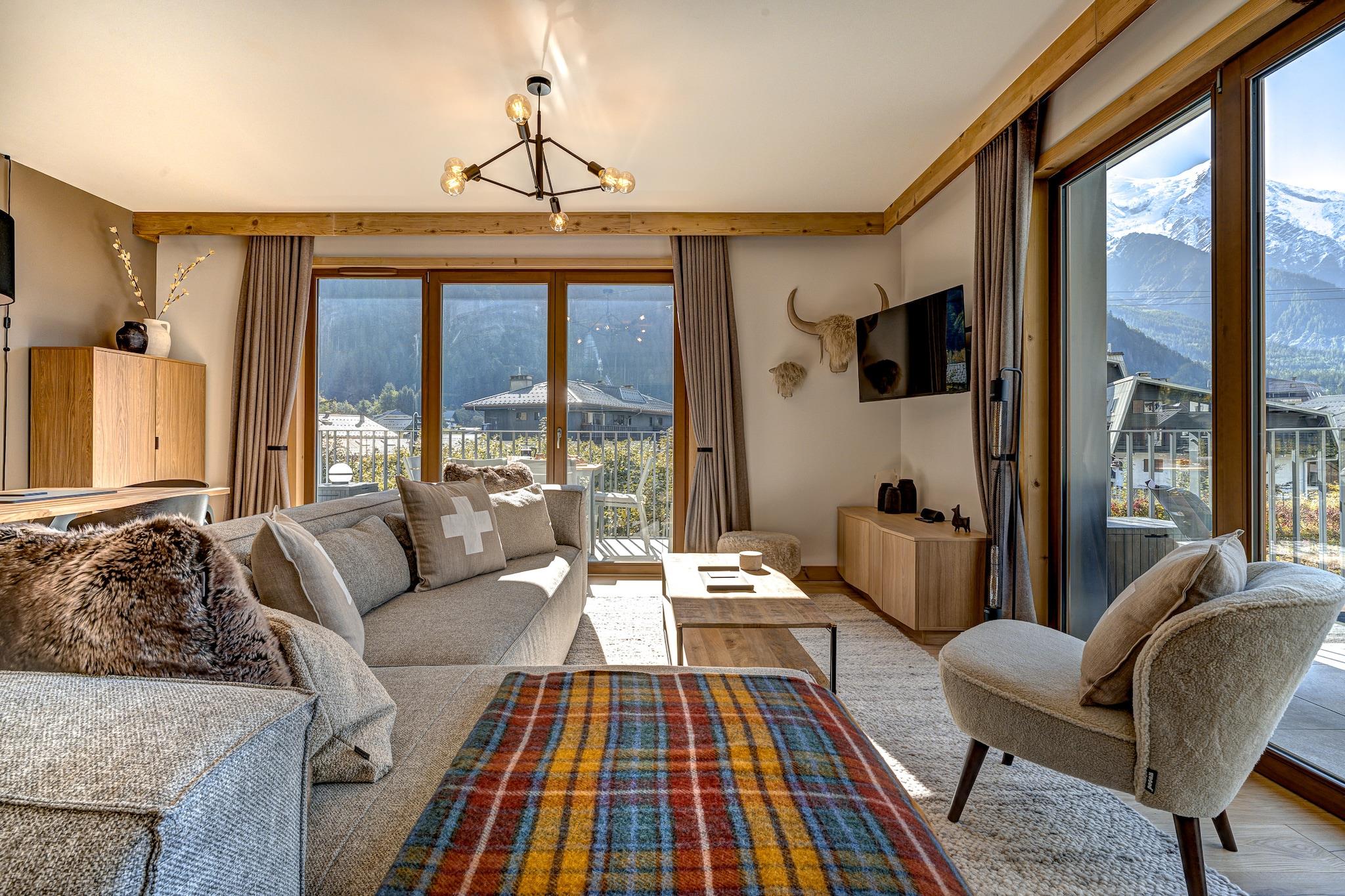 Denne moderne lejlighed med 3 soveværelser og 2 badeværelser ligger i hjertet af Chamonix og tilbyder moderne alpin livsstil med en betagende udsigt over Mont Blanc. Lejligheden er indrettet i en enestående standard og kombinerer elegant design, naturligt lys og komfort, hvilket gør den til et ideelt fristed for familier eller grupper på op til seks gæster. Den lyse åbne stue åbner ud mod to altaner – den ene er perfekt til udendørs spisning, den anden til afslapning – begge med spektakulær udsigt over bjergene. Den uovertrufne beliggenhed i byens centrum betyder, at butikker, restauranter og skilifte alle ligger inden for gåafstand. Interiøret blander moderne elegance med alpin varme. Det fuldt udstyrede køkken har en stor ovn, mikroovn, opvaskemaskine, køleskab, fryser, vaskemaskine og Nespresso-kaffemaskine, så gæsterne kan nyde alle hjemmets bekvemmeligheder. Underholdning er nemt med Smart TV, britiske kanaler, Netflix, en musikhøjttaler og gratis WiFi. Lejligheden har også skiopbevaring, elevatoradgang og sikker underjordisk parkering (maksimal højde 2,2 m). Bemærk, at kæledyr ikke er tilladt. Lejligheden kan rumme seks gæster komfortabelt med fleksible soveværelsesindretninger – et dobbeltværelse, et værelse med to enkeltsenge eller dobbeltsenge og et tredje værelse med køjesenge og eget badeværelse med brusebad. Om vinteren kan du nyde skiløb i verdensklasse i Chamonix' legendariske områder, herunder Le Brévent, La Flégère, Grands Montets, Les Houches, Vallorcine og Courmayeur (Italien). Om sommeren kommer dalen til live med vandreture, mountainbiking, klatring, paragliding og vandsport ved Passy-søen. Med sine dobbelte altaner, udsigt over bjergene og førsteklasses centrale beliggenhed tilbyder denne lejlighed den perfekte blanding af luksus og bekvemmelighed for et mindeværdigt ophold i hjertet af Alperne.