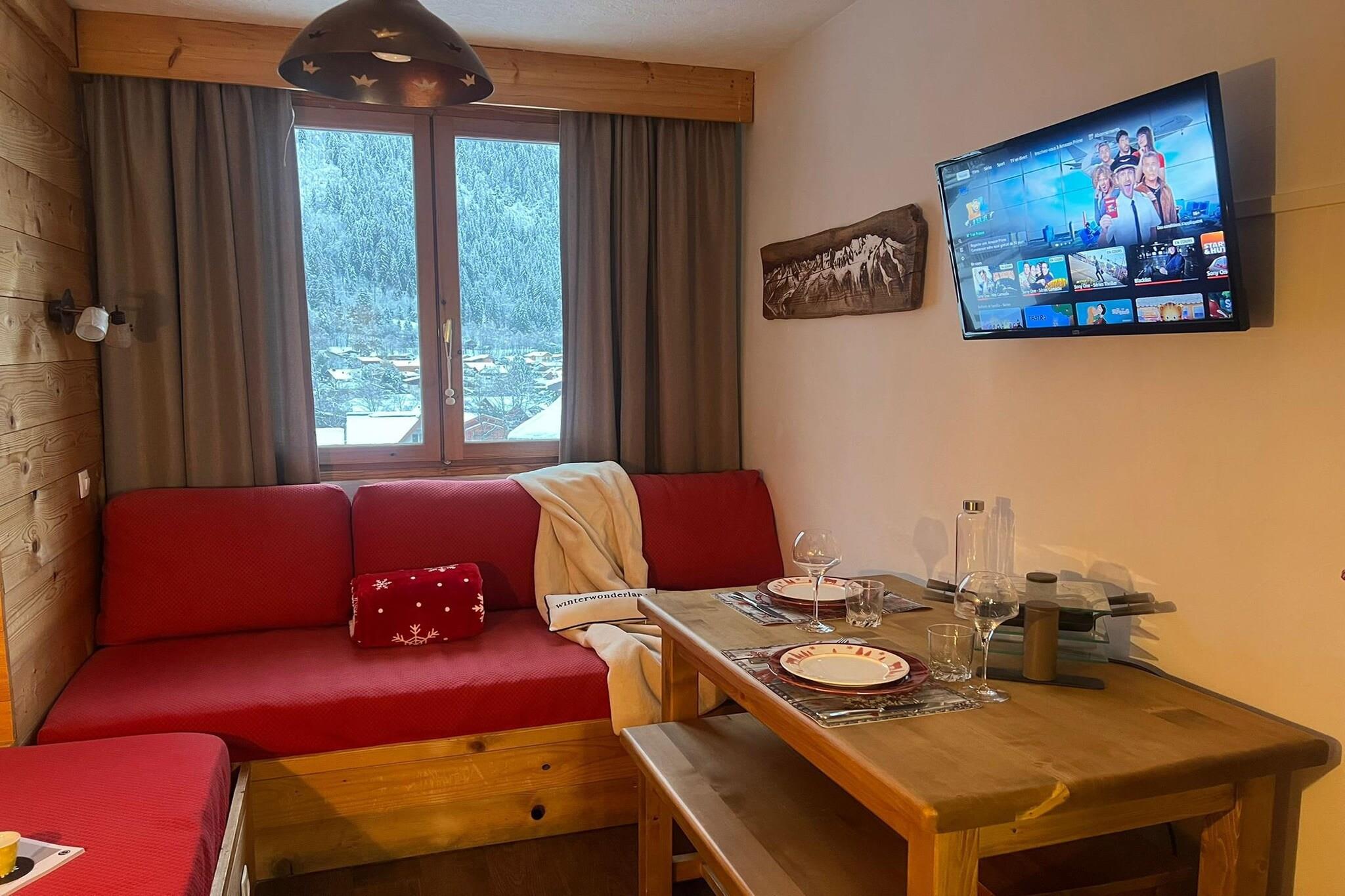 Denne varme og moderne lejlighed ligger i hjertet af Chamonix-Mont-Blanc og er et lille gemmested i bjergene, der er skabt til at sætte farten ned og nyde det hele. Ideel til op til to gæster og perfekt til par eller solorejsende, der ønsker at vågne op tæt på naturen, samtidig med at de forbliver forbundet med byens livlige ånd. Hver morgen begynder med, at Mont Blanc hilser dig velkommen fra balkonen – en udsigt, der aldrig bliver gammel. Gå udenfor med en kop kaffe, indånd den friske alpeluft, og se lyset danse hen over de snedækkede tinder. Indenfor føles lejligheden lys, rolig og gennemtænkt designet og blander moderne komfort med en hyggelig alpin sjæl. Efter en dag med vandreture i skovstier, skiløb i frisk puddersne eller vandring gennem Chamonix' charmerende gader, byder dette rum dig velkommen tilbage som en varm omfavnelse. Det separate soveværelse tilbyder en komfortabel dobbeltseng og smart opbevaring, hvilket gør det nemt at finde sig til rette, uanset om du bliver i en weekend eller længere. Opholdsstuen inviterer dig til at slappe af med et afslappet loungehjørne og en spiseplads, der er perfekt til langsomme morgenmader eller intime middage. Det fuldt udstyrede tekøkken giver dig mulighed for at leve i dit eget tempo og tilberede en solid morgenmad, inden du begiver dig ud på pisterne, eller lave et simpelt, behageligt måltid efter en aktiv dag. Hver eneste detalje er der for at få dig til at føle dig hjemme, fra praktiske apparater til komplet køkkengrej og service. Med nem adgang til skilifte, vandreruter, butikker og caféer tilbyder denne lejlighed det bedste fra begge verdener: bjergenes ro og Chamonix' pulserende energi lige uden for din dør. Det er et sted at genoprette forbindelsen med naturen, med hinanden og med den enkle glæde ved at være omgivet af skønhed.