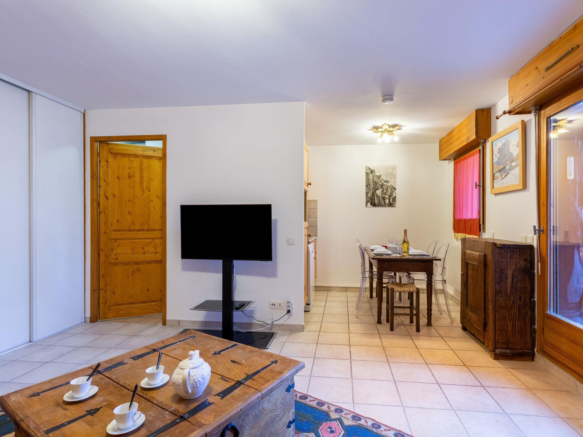 Residence "L'Espace Montagne", 4 storeys. 50 m from the centre. In the complex: lift. Shop 100 m, shopping centre 200 m, restaurant 30 m, bus stop "Place Mont-Blanc" 150 m, railway station "Chamonix Mont-Blanc" 300 m. Golf course (18 hole) 3 km, sports centre 500 m, skisport facilities 900 m, ski bus stop 300 m, ski school 450 m, cross country ski track 500 m. Nearby attractions: Téléphérique de l'Aiguille du Midi 900 m, Train du Montenvers Mer de Glace 400 m. Please note: the photograph shows a typical example. Additional accommodations can be booked.