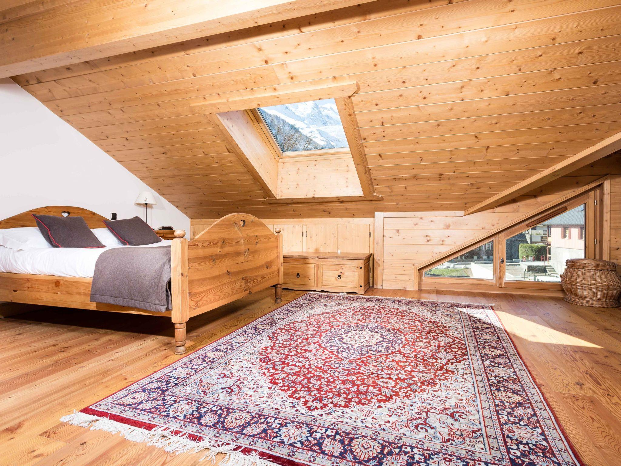 Les Sonnailles apartment is a contemporary duplex apartment which is great for up to 4 people, with 2 bedrooms - one master bedroom with ensuite shower and sink, and a second bedroom that can be made up as a double or twin beds. Both bedrooms have skylight windows and mountain views. In addition to the ensuite, there is a family bathroom with bath, shower attachment, sink and toilet, plus a second separate toilet. Les Sonnailles apartment has an open plan with kitchen, dining area and lounge leading onto a sunny south-facing balcony with fantastic views of Mont Blanc and Les Bossons Glacier. It has satellite TV including English channels and DVD player, plus wifi internet access. There is also a washing machine and dishwasher. The property is located in Chamonix and only a few minutes from the very centre of town, the ski lifts, the sports centre, swimming pool, restaurants, supermarkets and all the amenities of Chamonix, making it the perfect base for a Chamonix summer holiday as well as in winter. There are 2 private underground parking spaces for cars in the basement, plus a ski locker and bike storage room. The apartment is situated on the first floor of the building and there is lift access for your convenience. Key Features 56 sqm plus a further 20sqm under 2m in height Sleeps 2-4 Master double bedroom with ensuite shower room and sink Double/Twin second bedroom Family bathroom with bath, shower attachment, sink and WC Separate WC Open plan living room with 2 comfy leather sofas TV / DVD player and UK satellite Wifi internet access Dining area with wood table and 6 leather seats Fitted kitchen with oven & dishwasher Nespresso machine Sunny balcony with table and chairs and uninterrupted views of Mont Blanc Washing machine Ski locker and bike room Two underground parking spaces