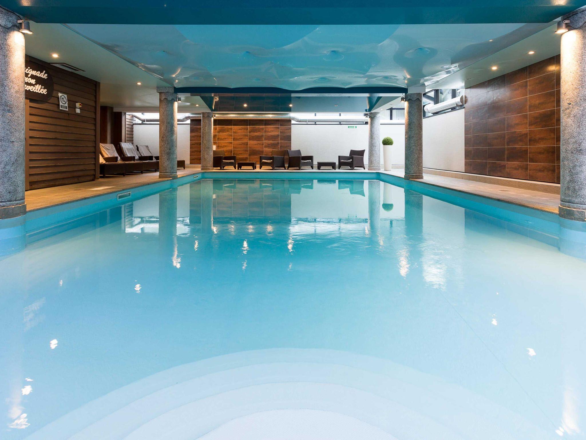 Ginabelle 14 Apartment is situated right in the centre of Chamonix, within a short 2-3 minute walk of the beginners ski lifts at Les Planards, and the summer luge & leisure park. The residence complex includes access to the luxury holiday rentals amenities of spa, swimming pool and gym, in the building just next door. The main bus stop at Place du Mont Blanc is over the road for access to all ski areas in winter and walks, hikes and biking in summer, and the train station is only 100m away. There is a small supermarket on the other side of the square and bars, restaurants and larger supermarkets are just 2 minutes' away in the pedestrian town centre.