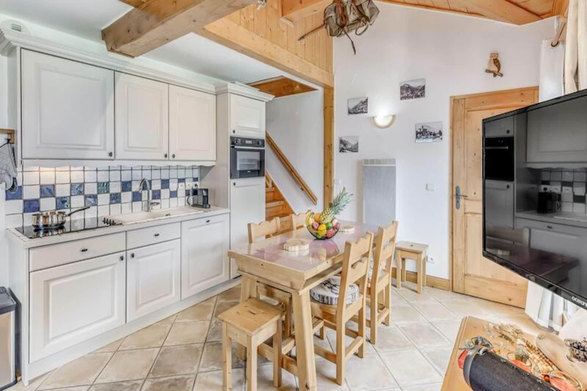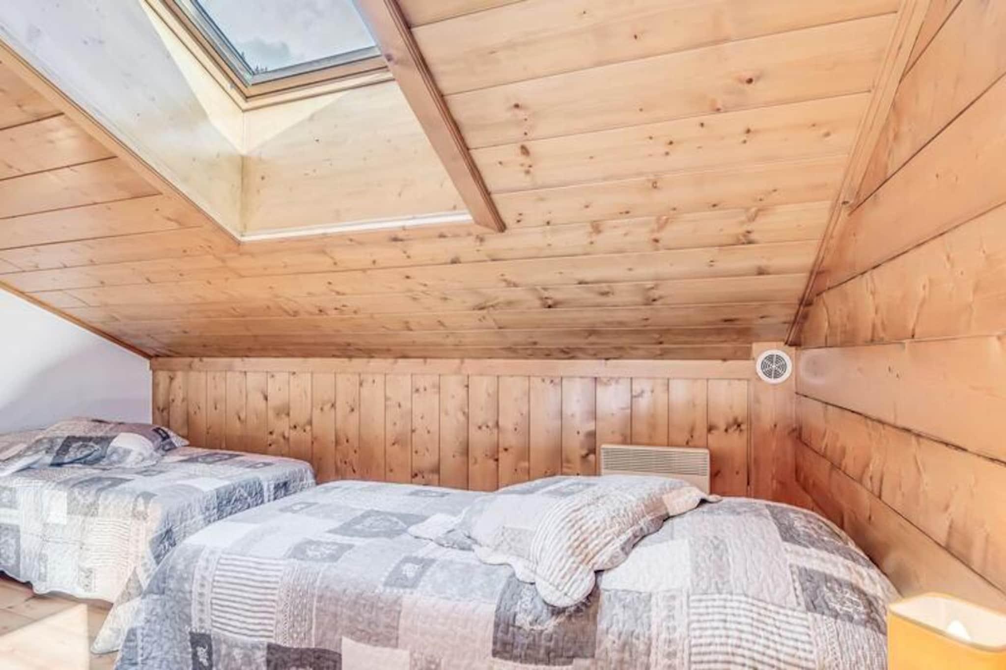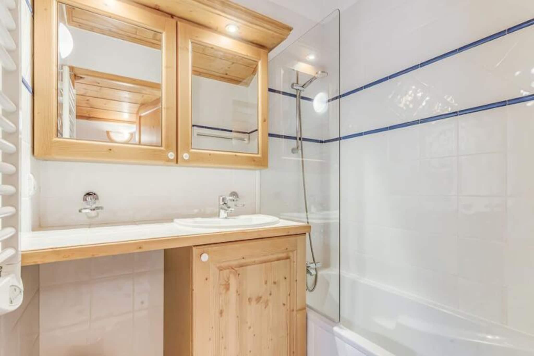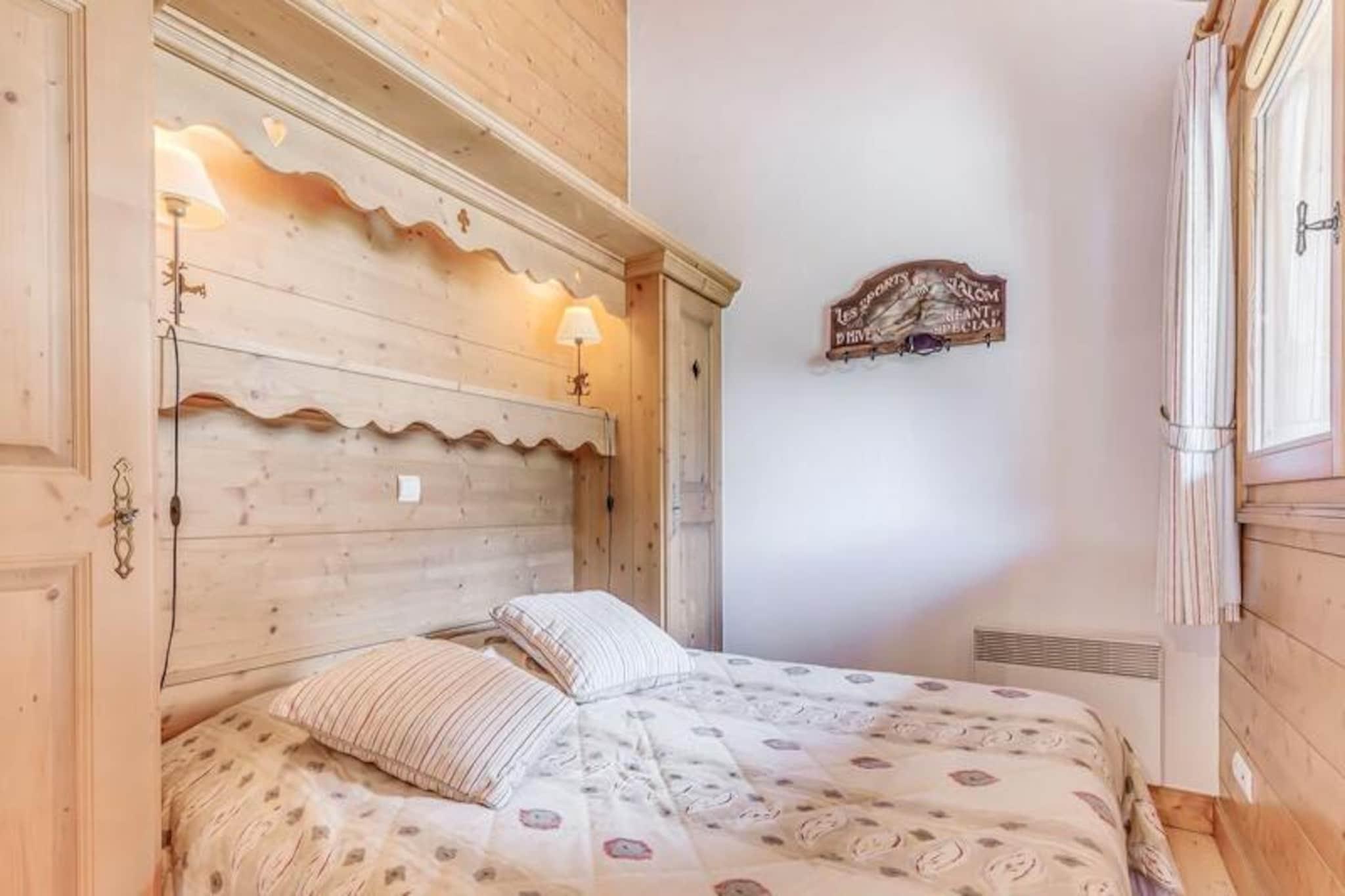 Denne charmerende duplex-lejlighed, ideel til op til 6 personer, tilbyder komfortable og moderne rammer for et mindeværdigt ophold. På første sal er der et soveværelse med en dobbeltseng, og ovenpå en familiesuite med to enkeltsenge og en dobbeltseng. Lejligheden er udstyret med moderne møbler, en rapido sovesofa og inkluderer sengetøj og håndklæder. Med sine strålende sydvendte balkoner giver lejligheden en fantastisk udsigt over Vanoise-massivet. Kæledyr er ikke tilladt, og rygning er forbudt i lejligheden. Beliggende kun en kort afstand fra hjertet af feriestedet giver denne ejendom nem adgang til lokale attraktioner. En gratis shuttleservice kører hvert 8. minut i vintersæsonen, hvilket bringer gæsterne til gondolen og skiløjperne, hvilket gør det til et perfekt valg for skientusiaster. Landsbyen byder på et udvalg af caféer, butikker og spisemuligheder at udforske, hvilket sikrer en behagelig blanding af afslapning og eventyr. Det fuldt udstyrede køkken har moderne apparater, herunder en opvaskemaskine, ovn, mikroovn, køleskab og mere, hvilket sikrer bekvemmelighed for at tilberede måltider under dit ophold. Lejligheden indeholder også et brusebad, separat toilet og en vaskemaskine. Gæsterne kan slappe af i bygningens fællesområder, såsom swimmingpoolen og spaen, og nyde "Infiniment Zen"-massagesalonen på stedet (ekstra gebyr).