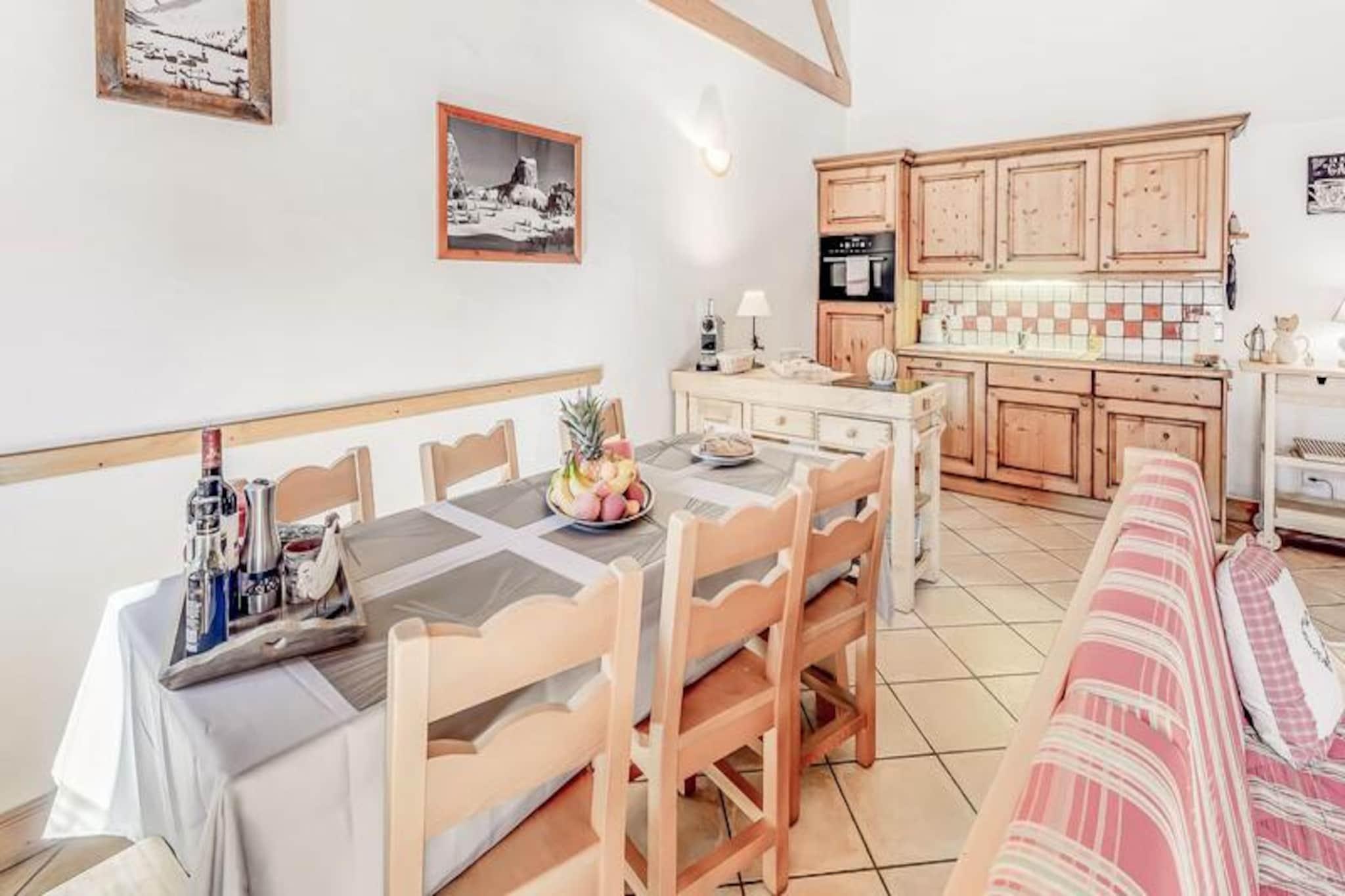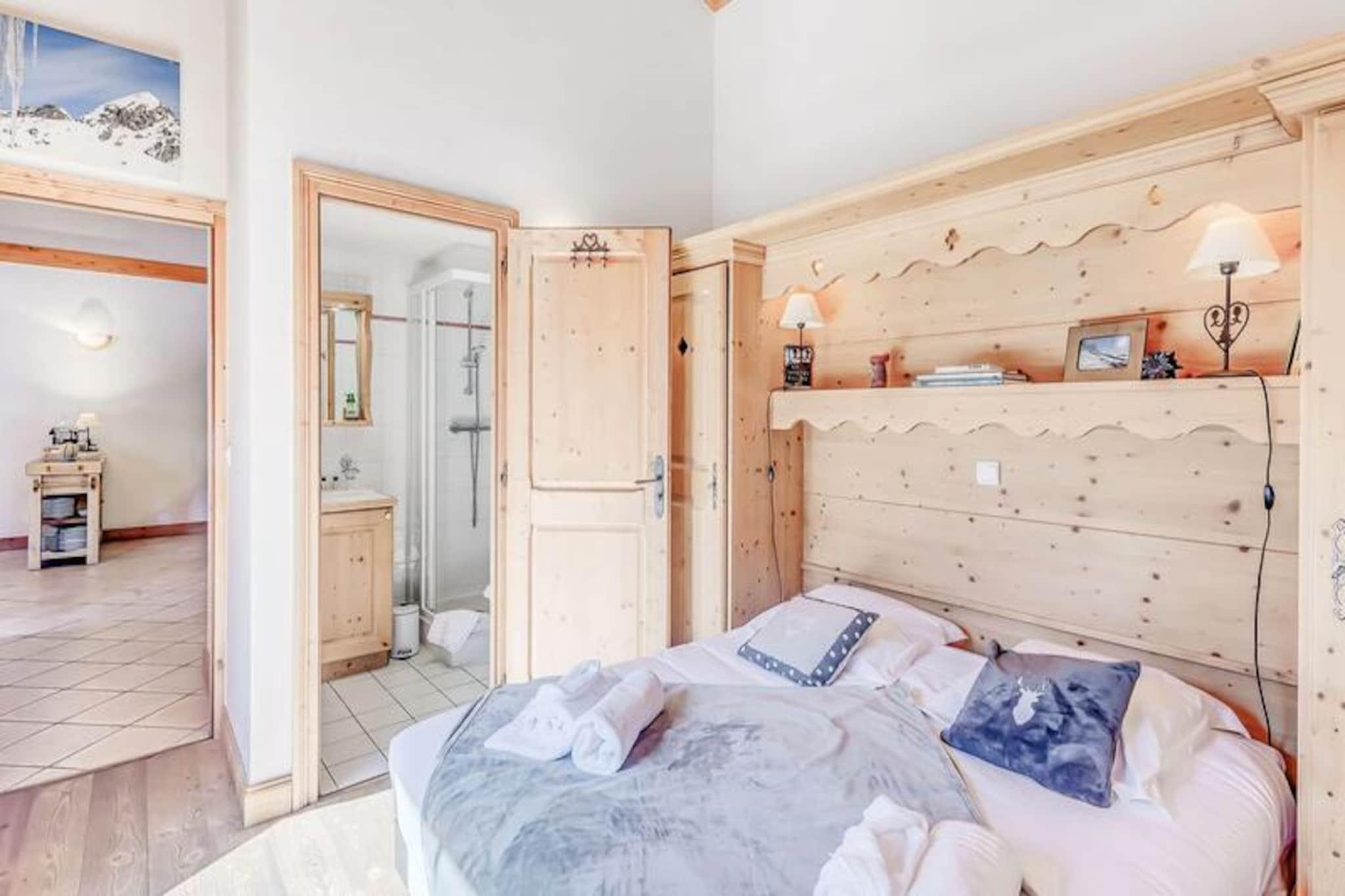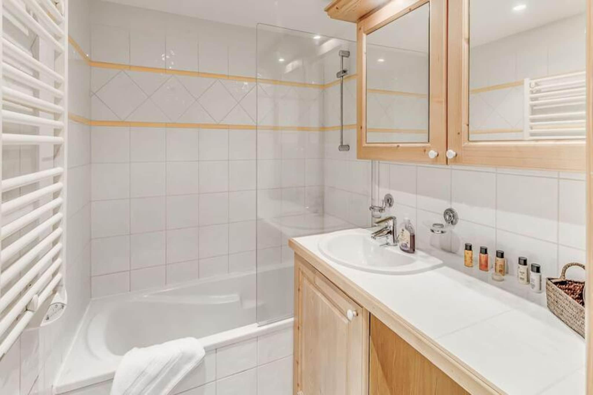 Denne rummelige lejlighed på 86 m² kan rumme op til 8 gæster og har 3 komfortable soveværelser. Mastersuiten inkluderer en dobbeltseng og et en-suite badeværelse, mens de to andre soveværelser tilbyder ekstra enkelt- og dobbeltsenge. Stuen er udstyret med to sovesofaer og et fjernsyn. Lejligheden er ikke-ryger og tillader ikke kæledyr. Det tilbyder gratis Wi-Fi, sengetøj, håndklæder og slutrengøring (undtagen køkkenet). Daglig rengøring er tilgængelig efter anmodning. Denne lejlighed i chalet-stil ligger ved indgangen til landsbyen og tilbyder en fantastisk udsigt over Vanoise-massivet og Courchevel-skråningerne. En gratis shuttle-service kører hvert 8. minut i vintersæsonen, hvilket giver nem adgang til feriestedets centrum, gondolen og ESF-skiskolen. Gæsterne kan udforske det omkringliggende område med en række caféer, restauranter og markeder i nærheden. Resortet tilbyder også en række udendørs aktiviteter, herunder skiløb og vandreture. Lejligheden har et fuldt udstyret køkken med opvaskemaskine, ovn, mikroovn og andre vigtige apparater. Det separate badeværelse og toiletter sikrer komfort, mens den store altan og sydvendte terrasse giver perfekte steder til afslapning. Et skiskab og overdækket parkeringsplads er også tilgængelige for nemheds skyld.