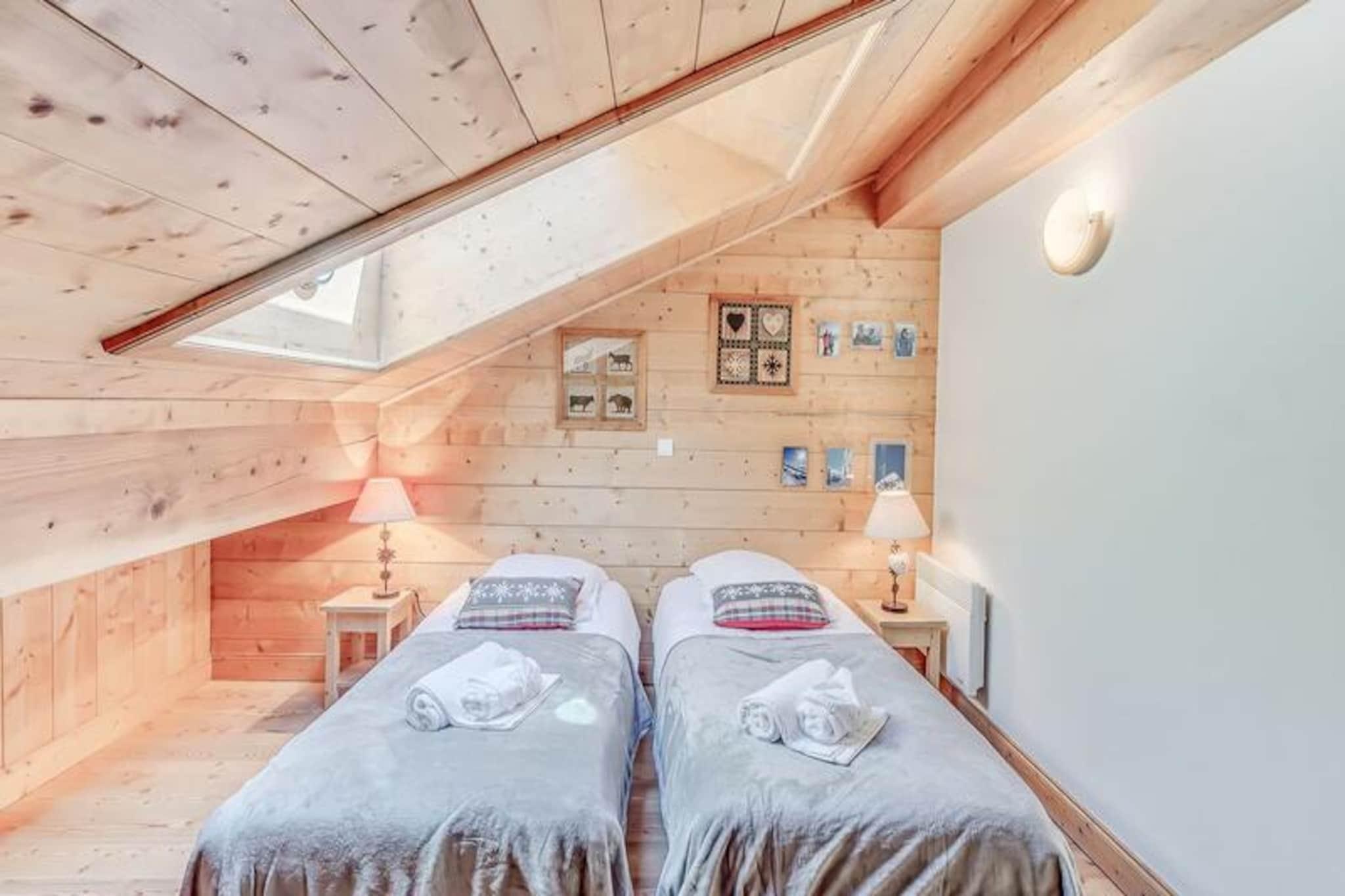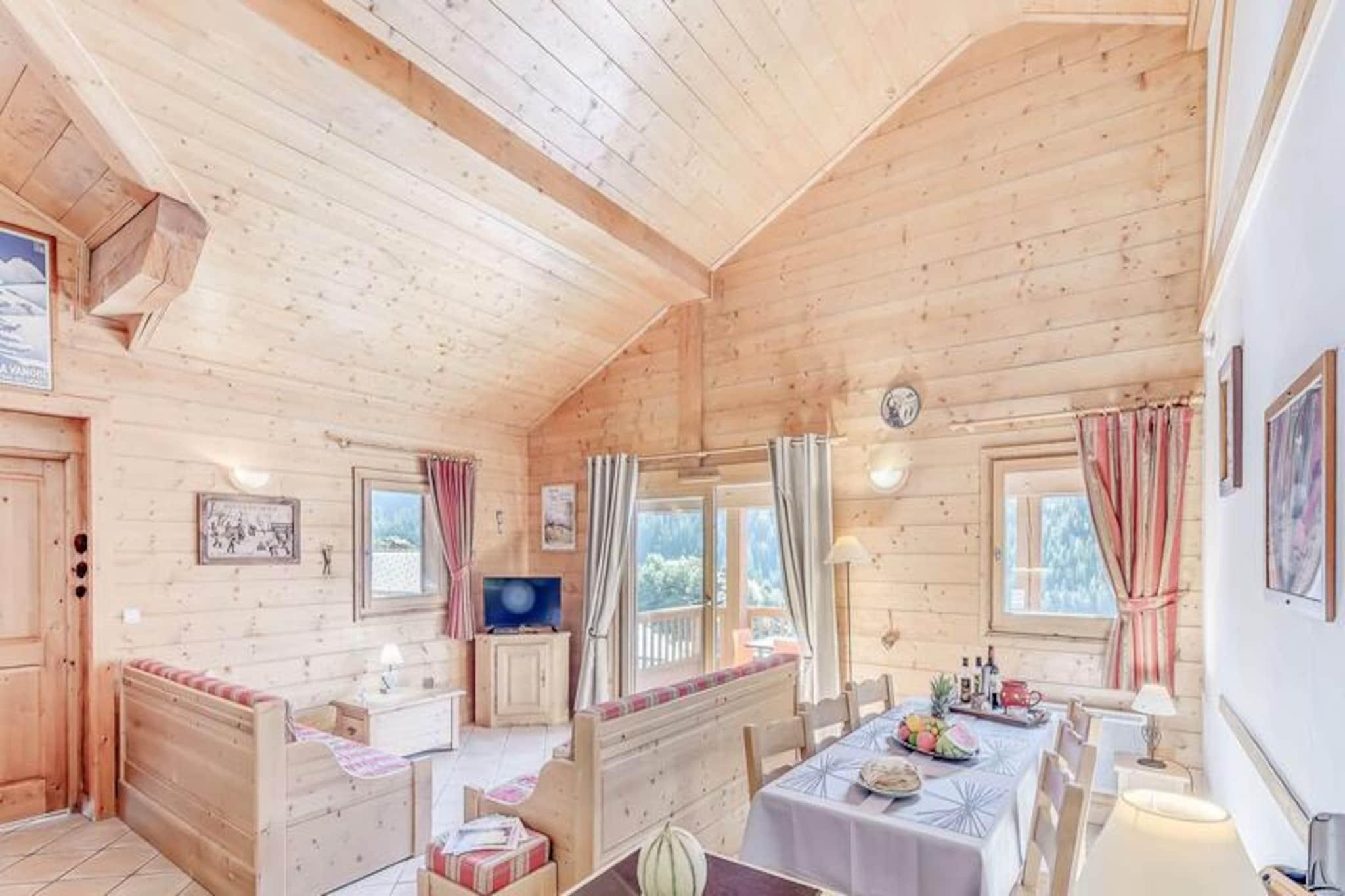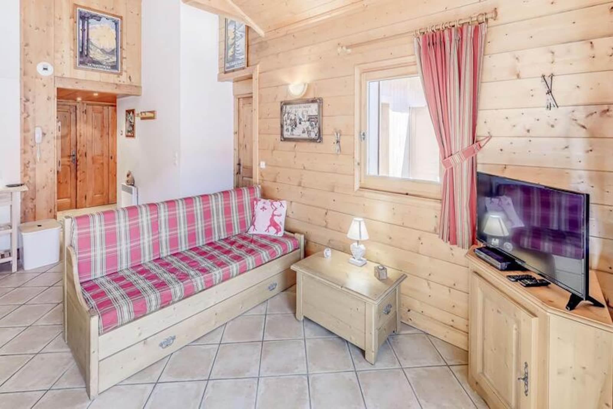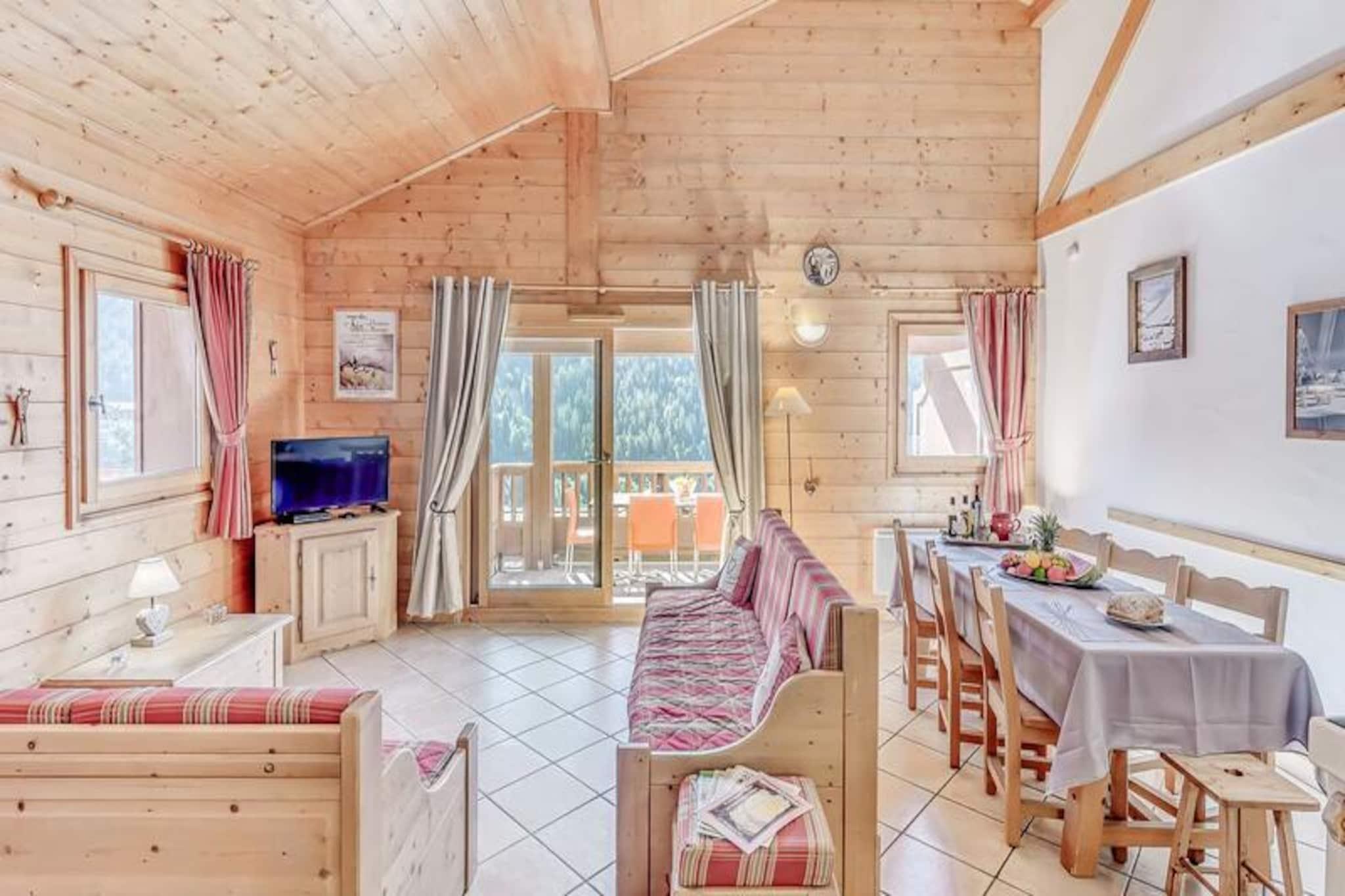 Denne rummelige lejlighed på 86 m² kan rumme op til 8 gæster og har 3 komfortable soveværelser. Mastersuiten inkluderer en dobbeltseng og et en-suite badeværelse, mens de to andre soveværelser tilbyder ekstra enkelt- og dobbeltsenge. Stuen er udstyret med to sovesofaer og et fjernsyn. Lejligheden er ikke-ryger og tillader ikke kæledyr. Det tilbyder gratis Wi-Fi, sengetøj, håndklæder og slutrengøring (undtagen køkkenet). Daglig rengøring er tilgængelig efter anmodning. Denne lejlighed i chalet-stil ligger ved indgangen til landsbyen og tilbyder en fantastisk udsigt over Vanoise-massivet og Courchevel-skråningerne. En gratis shuttle-service kører hvert 8. minut i vintersæsonen, hvilket giver nem adgang til feriestedets centrum, gondolen og ESF-skiskolen. Gæsterne kan udforske det omkringliggende område med en række caféer, restauranter og markeder i nærheden. Resortet tilbyder også en række udendørs aktiviteter, herunder skiløb og vandreture. Lejligheden har et fuldt udstyret køkken med opvaskemaskine, ovn, mikroovn og andre vigtige apparater. Det separate badeværelse og toiletter sikrer komfort, mens den store altan og sydvendte terrasse giver perfekte steder til afslapning. Et skiskab og overdækket parkeringsplads er også tilgængelige for nemheds skyld.