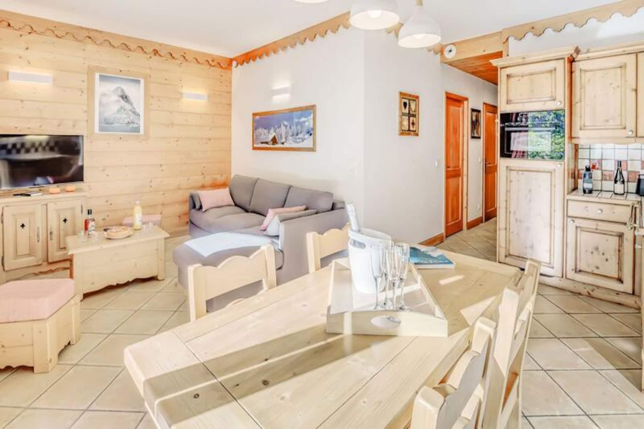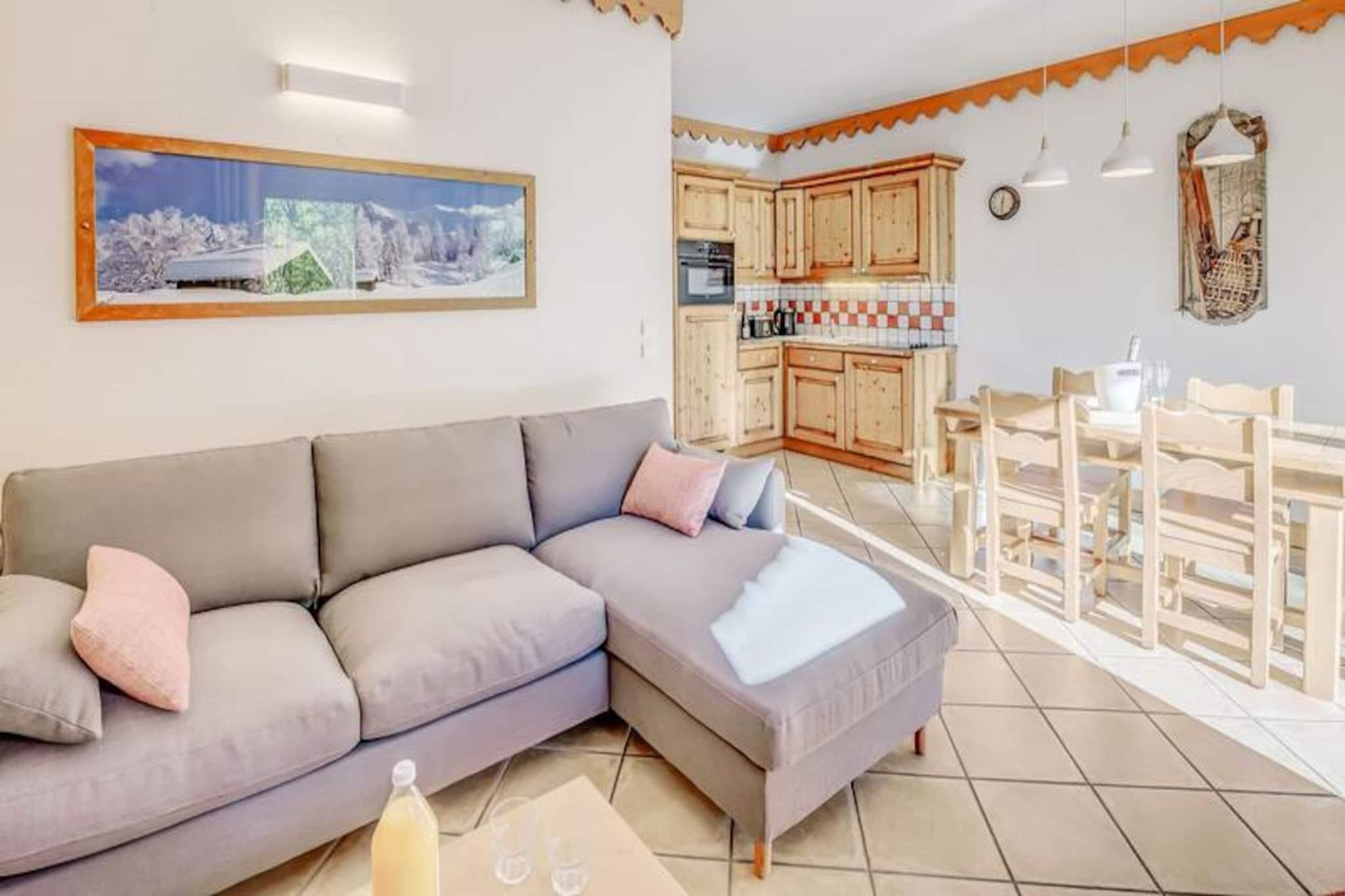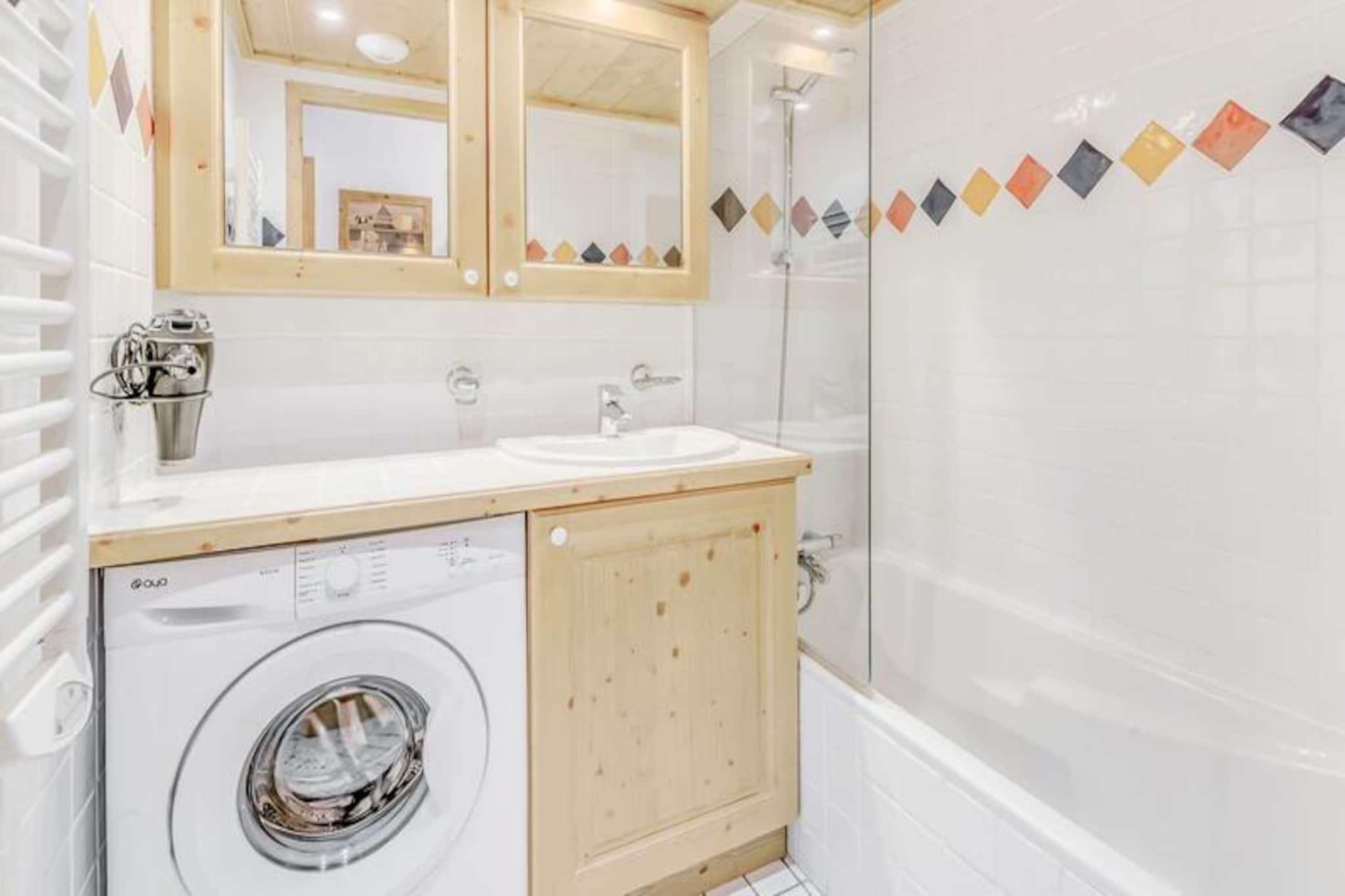 Denne rummelige 3-værelses lejlighed kan komfortabelt rumme op til 6 gæster, med to velindrettede soveværelser, det ene med en dobbeltseng og det andet med to enkeltsenge. Lejligheden har en udtrækssofa i opholdsstuen, ideel til ekstra soveplads. Ejendommen er røgfri og tillader ikke kæledyr. Gæster kan nyde adgang til boligens swimmingpool, spa (sæsonbestemt) og andre hoteltjenester såsom sengetøj, håndklæder og gratis Wi-Fi. Der er også et skiskab og overdækket parkering med direkte adgang til hytterne via en elevator. Denne lejlighed ligger ved indgangen til landsbyen og tilbyder nem adgang til skiløjperne, kun en kort shuttletur væk (8 minutter om vinteren). Landsbyens centrum og gondolafgang er inden for rækkevidde, hvilket sikrer, at gæsterne hurtigt kan få adgang til skiløb og andre vinteraktiviteter. Nærliggende attraktioner omfatter lokale butikker, restauranter og caféer, der tilbyder alt det nødvendige for et behageligt ophold. Lejligheden har et fuldt udstyret køkken med moderne apparater såsom opvaskemaskine, ovn og mikroovn, hvilket gør det nemt at tilberede måltider. Badeværelset er veludstyret med hårtørrer og vaskemaskine, mens det separate toilet tilføjer bekvemmelighed. Den store solrige balkon tilbyder et perfekt sted at slappe af efter en dag med udforskning af området.