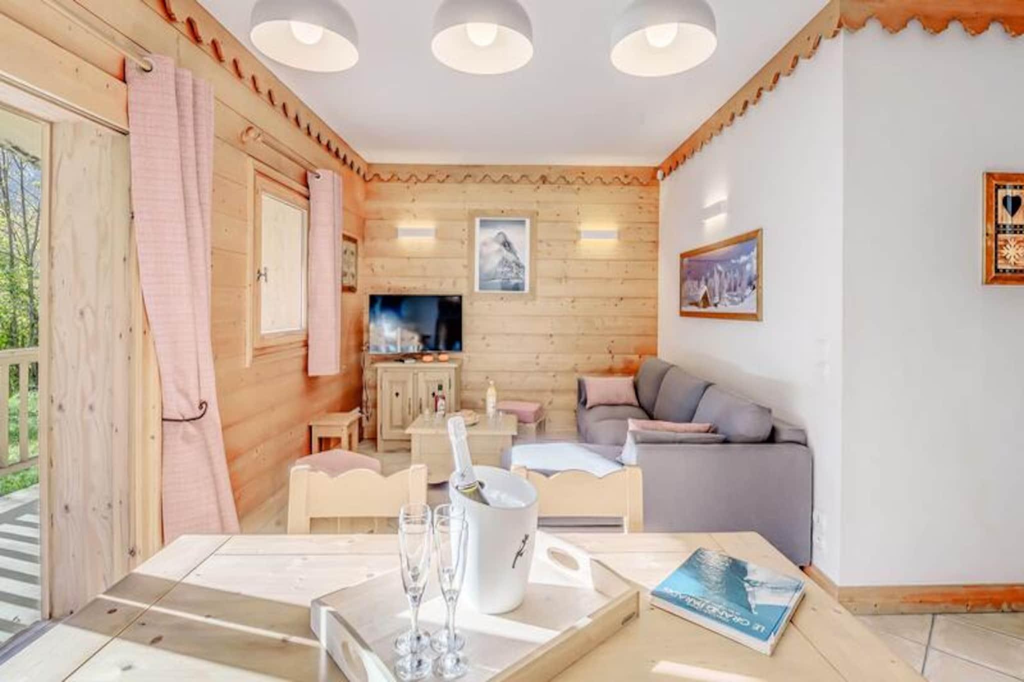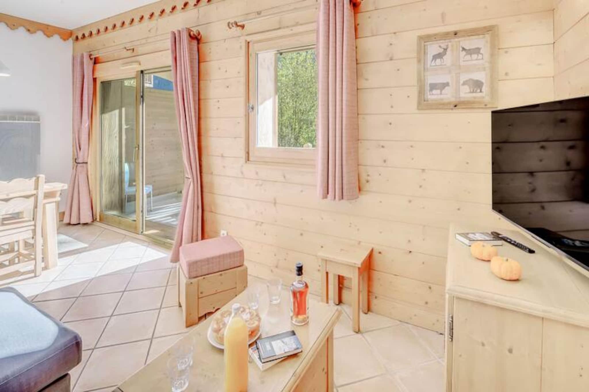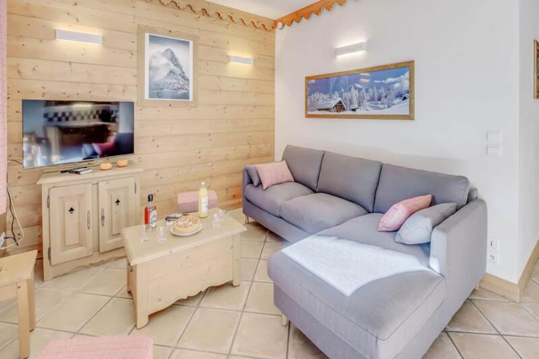 Denne rummelige 3-værelses lejlighed kan komfortabelt rumme op til 6 gæster, med to velindrettede soveværelser, det ene med en dobbeltseng og det andet med to enkeltsenge. Lejligheden har en udtrækssofa i opholdsstuen, ideel til ekstra soveplads. Ejendommen er røgfri og tillader ikke kæledyr. Gæster kan nyde adgang til boligens swimmingpool, spa (sæsonbestemt) og andre hoteltjenester såsom sengetøj, håndklæder og gratis Wi-Fi. Der er også et skiskab og overdækket parkering med direkte adgang til hytterne via en elevator. Denne lejlighed ligger ved indgangen til landsbyen og tilbyder nem adgang til skiløjperne, kun en kort shuttletur væk (8 minutter om vinteren). Landsbyens centrum og gondolafgang er inden for rækkevidde, hvilket sikrer, at gæsterne hurtigt kan få adgang til skiløb og andre vinteraktiviteter. Nærliggende attraktioner omfatter lokale butikker, restauranter og caféer, der tilbyder alt det nødvendige for et behageligt ophold. Lejligheden har et fuldt udstyret køkken med moderne apparater såsom opvaskemaskine, ovn og mikroovn, hvilket gør det nemt at tilberede måltider. Badeværelset er veludstyret med hårtørrer og vaskemaskine, mens det separate toilet tilføjer bekvemmelighed. Den store solrige balkon tilbyder et perfekt sted at slappe af efter en dag med udforskning af området.