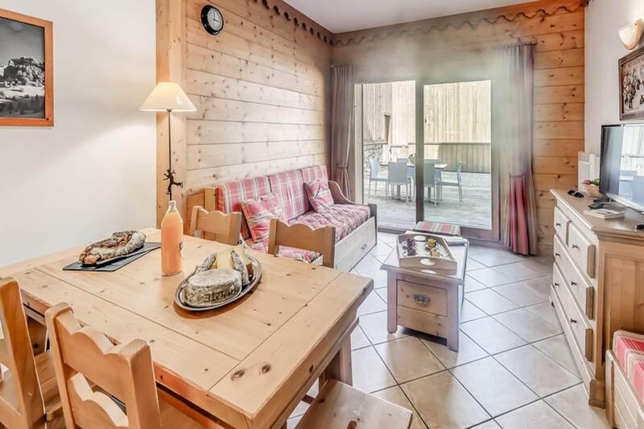 Denne charmerende bolig i chalet-stil tilbyder en blanding af komfort og bekvemmelighed med rummelig indkvartering for op til seks g?ster. Hver enhed omfatter et hyggeligt sovev?relse med dobbeltseng, et kabinev?relse med k?jesenge og et opholdsomr?de med en udtr?kssofa. Interi?ret er designet til afslapning med dyner, rigelig opbevaring og store solrige altaner. Ejendommen er ikke k?ledyrsvenlig og sikrer et roligt milj?. V?sentlige hoteltjenester s?som Wi-Fi, senget?j, h?ndkl?der og daglig reng?ring eller slutreng?ring er inkluderet, med ekstraudstyr som babyudstyr tilg?ngeligt mod et gebyr. Beliggende ved indgangen til landsbyen har denne chalet en f?rsteklasses beliggenhed med en fantastisk udsigt over Vanoise-massivet og Courchevel-skr?ningerne. Om vinteren k?rer en gratis shuttleservice hvert ottende minut, som forbinder g?sterne til gondolen, ESF og det pulserende feriecenter. I n?rheden kan bes?gende udforske lokale caf?er, charmerende markeder og alpine stier. Perfekt til skientusiaster, hver enhed kommer med sit eget skiskab og direkte parkeringsadgang via en elevator. Yderligere faciliteter omfatter et fuldt udstyret k?kken med moderne apparater s?som opvaskemaskine, ovn og kaffemaskine. G?sterne har adgang til en opvarmet swimmingpool, fitnesscenter og spa, hvor der tilbydes massage mod et till?gsgebyr. Badev?relserne har badekar og h?rt?rrer, og separate toiletter tilf?jer til bekvemmeligheden. Med sine tankev?kkende faciliteter og maleriske omgivelser lover denne hytte et dejligt alpint tilflugtssted.
