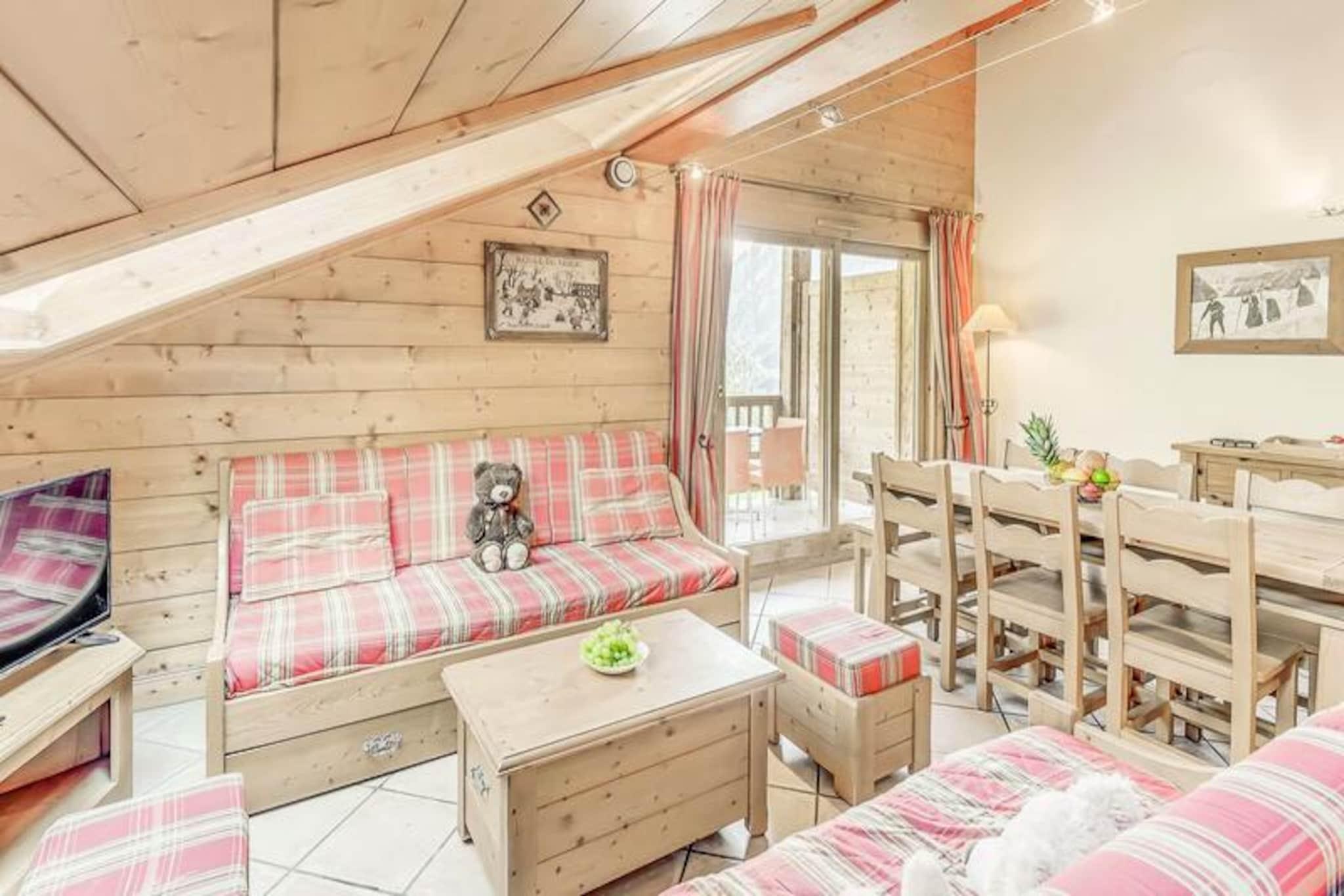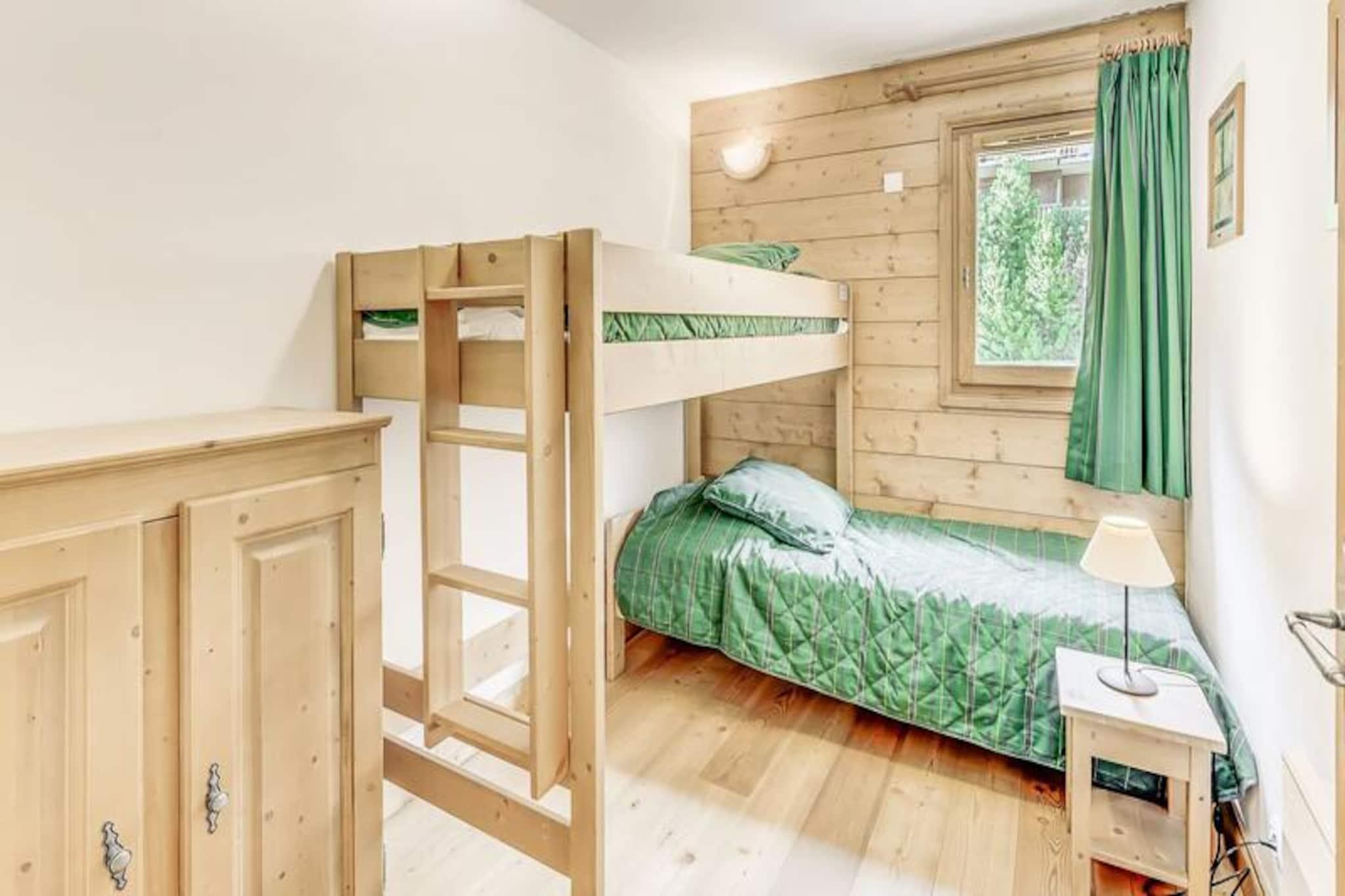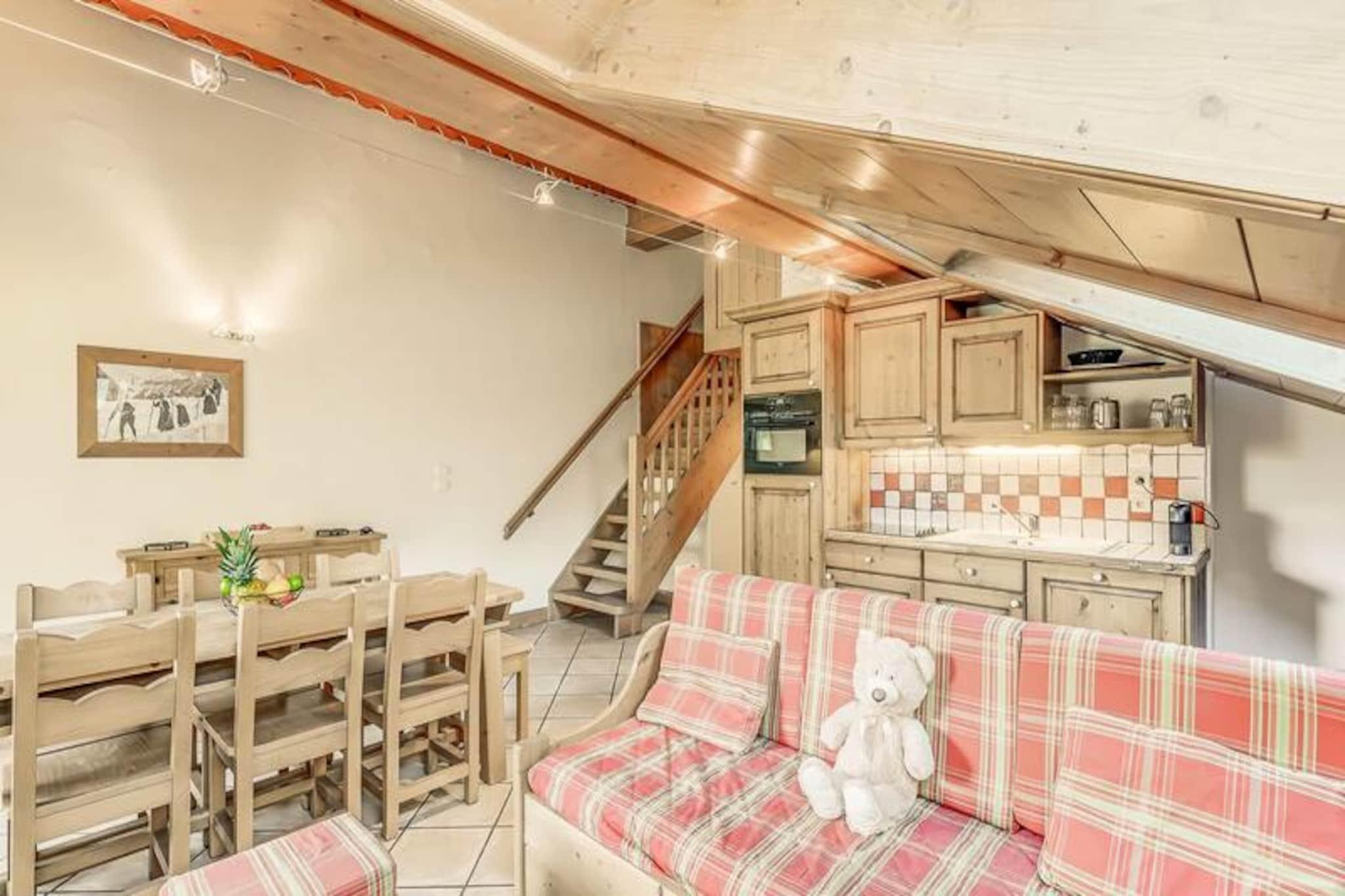 Denne rummelige duplex-lejlighed er perfekt til familier eller grupper med plads til op til 8 gæster. Det har 3 soveværelser, herunder en suite med dobbeltseng og brusebad. Der er også 2 enkeltsenge og et sæt køjesenge i de øvrige værelser samt 2 udtrækssovesofaer i opholdsstuen. Gæsterne kan nyde komforten af ??et separat badeværelse med badekar, et vaskeskab og en håndklæderadiator sammen med et separat toilet. Lejligheden er ikke-ryger, og kæledyr er ikke tilladt. Boligen ligger ved indgangen til landsbyen, med en gratis shuttle-service, der kører hvert 8. minut i vintersæsonen. Bussen tager gæsterne til feriestedets centrum og gondolens afgangssted. Området byder på en fantastisk udsigt over Vanoise-massivet og Courchevel-skråningerne, og landsbyen er kendt for sin charmerende atmosfære og indbydende caféer. Centrum af feriestedet ligger kun en kort køretur væk, og tilbyder en række butikker og restauranter. Lejligheden er udstyret med et fuldt funktionelt køkken, åbent til opholds- og spisestue. Rummet byder også på tv, stor sydvendt altan og Velux-vinduer i taget, der giver masser af naturligt lys og en fantastisk udsigt. Yderligere faciliteter inkluderer et skiskab, overdækket parkering og adgang til faciliteter på stedet, såsom swimmingpool, fitnesscenter og spa (åbent sæsonbestemt).