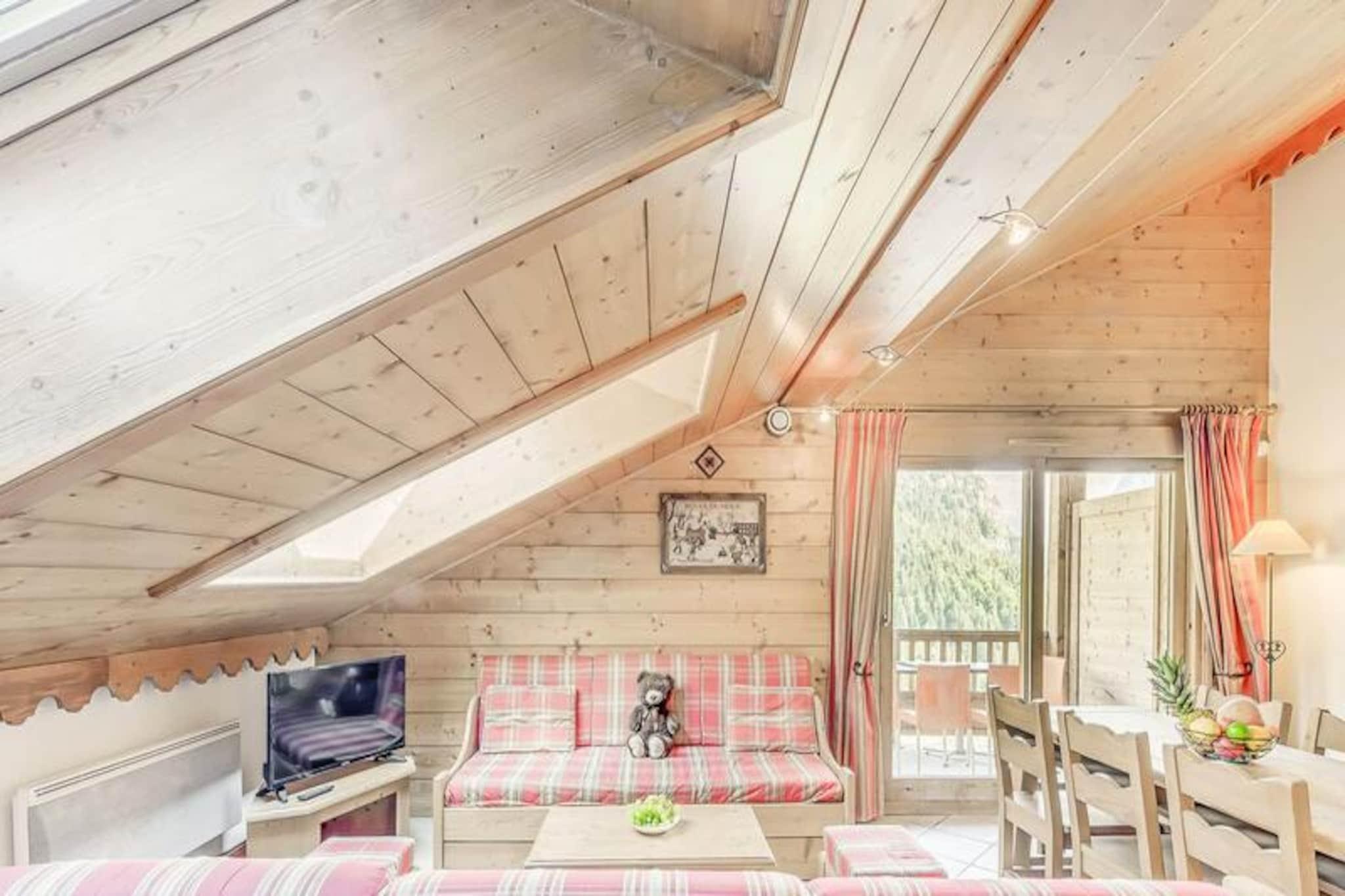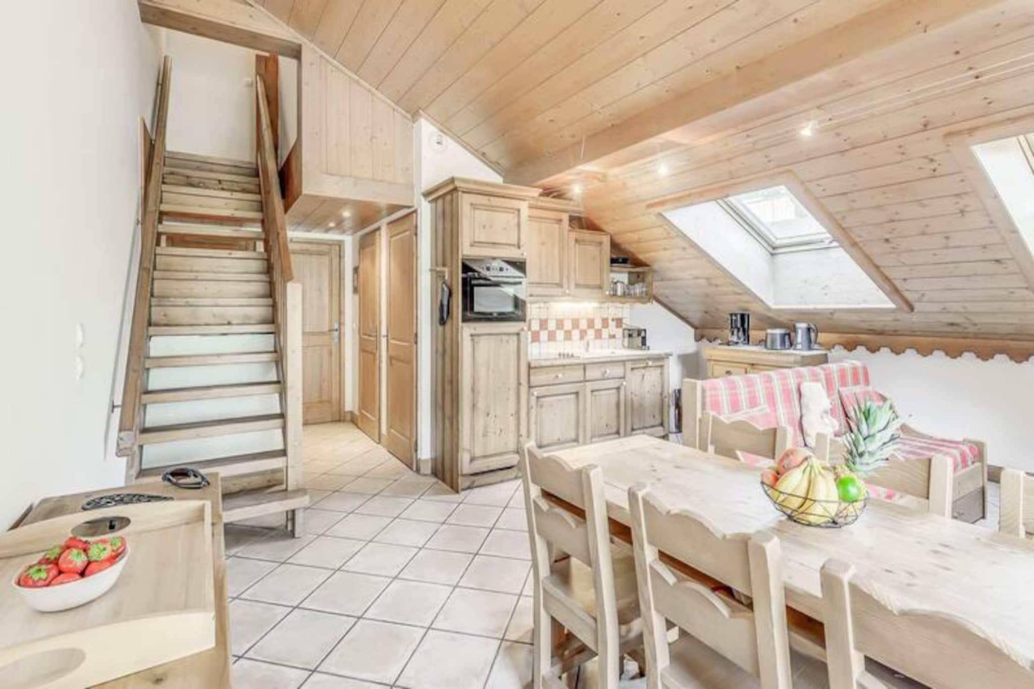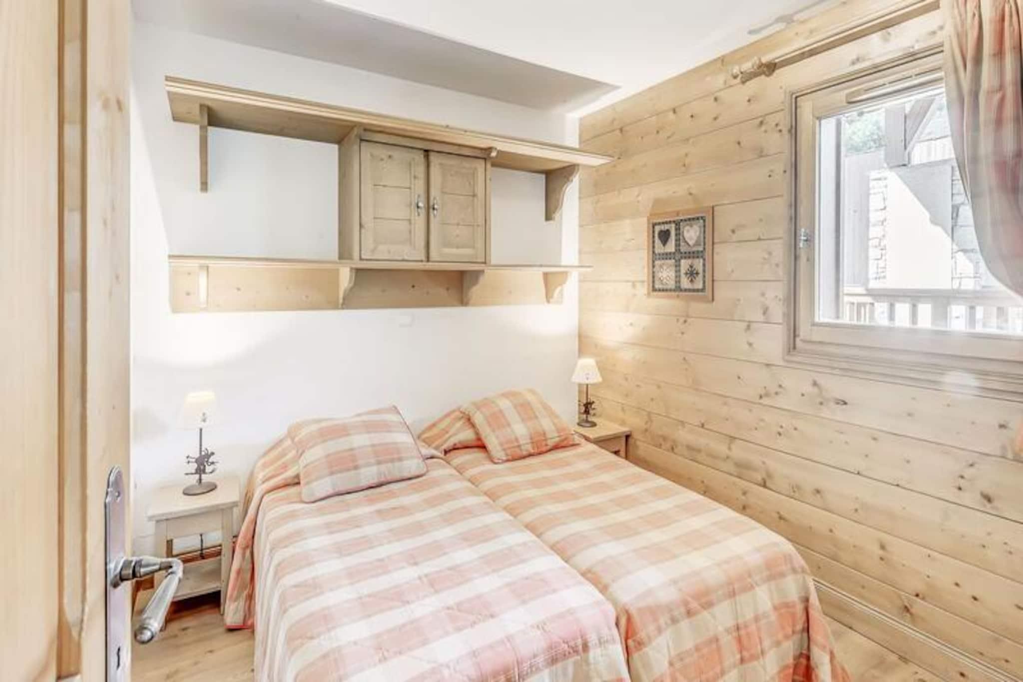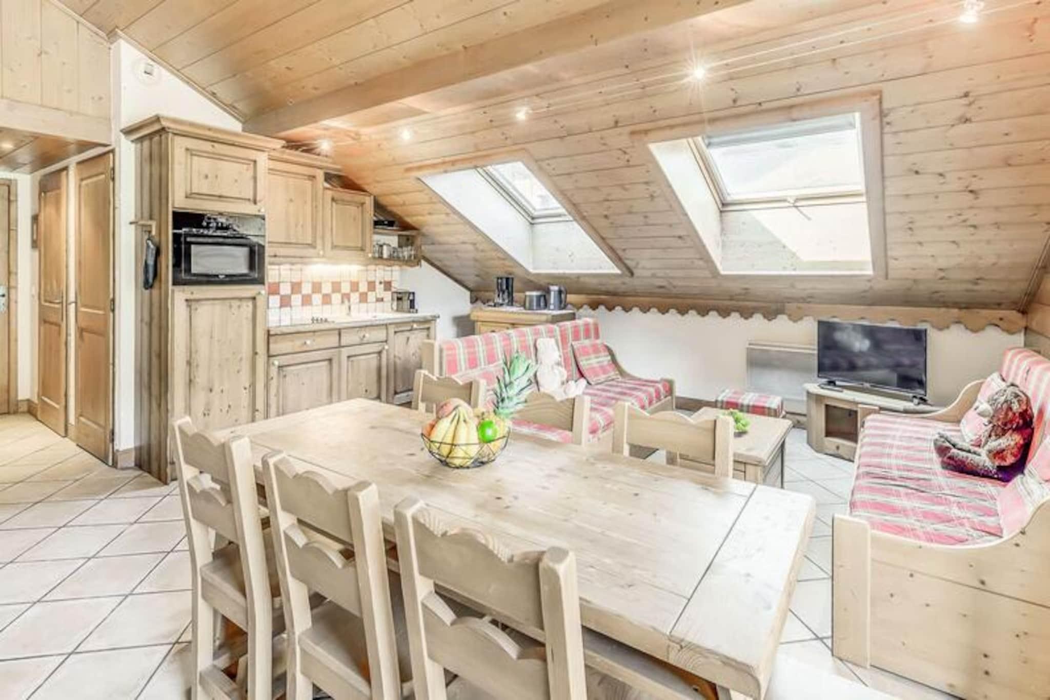 Denne rummelige duplex-lejlighed er perfekt til familier eller grupper med plads til op til 8 gæster. Det har 3 soveværelser, herunder en suite med dobbeltseng og brusebad. Der er også 2 enkeltsenge og et sæt køjesenge i de øvrige værelser samt 2 udtrækssovesofaer i opholdsstuen. Gæsterne kan nyde komforten af ??et separat badeværelse med badekar, et vaskeskab og en håndklæderadiator sammen med et separat toilet. Lejligheden er ikke-ryger, og kæledyr er ikke tilladt. Boligen ligger ved indgangen til landsbyen, med en gratis shuttle-service, der kører hvert 8. minut i vintersæsonen. Bussen tager gæsterne til feriestedets centrum og gondolens afgangssted. Området byder på en fantastisk udsigt over Vanoise-massivet og Courchevel-skråningerne, og landsbyen er kendt for sin charmerende atmosfære og indbydende caféer. Centrum af feriestedet ligger kun en kort køretur væk, og tilbyder en række butikker og restauranter. Lejligheden er udstyret med et fuldt funktionelt køkken, åbent til opholds- og spisestue. Rummet byder også på tv, stor sydvendt altan og Velux-vinduer i taget, der giver masser af naturligt lys og en fantastisk udsigt. Yderligere faciliteter inkluderer et skiskab, overdækket parkering og adgang til faciliteter på stedet, såsom swimmingpool, fitnesscenter og spa (åbent sæsonbestemt).