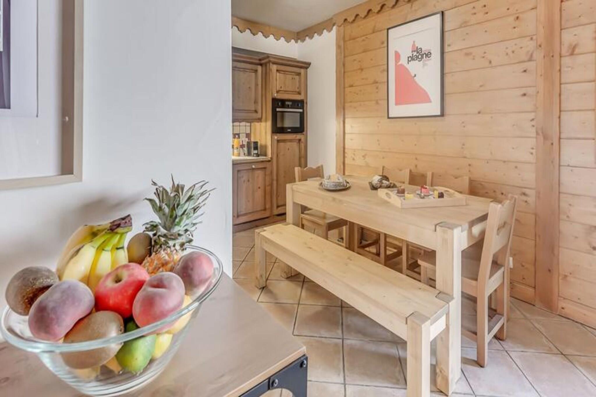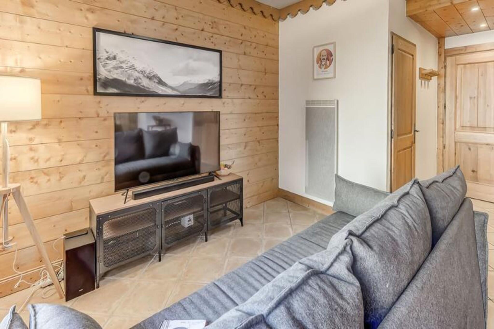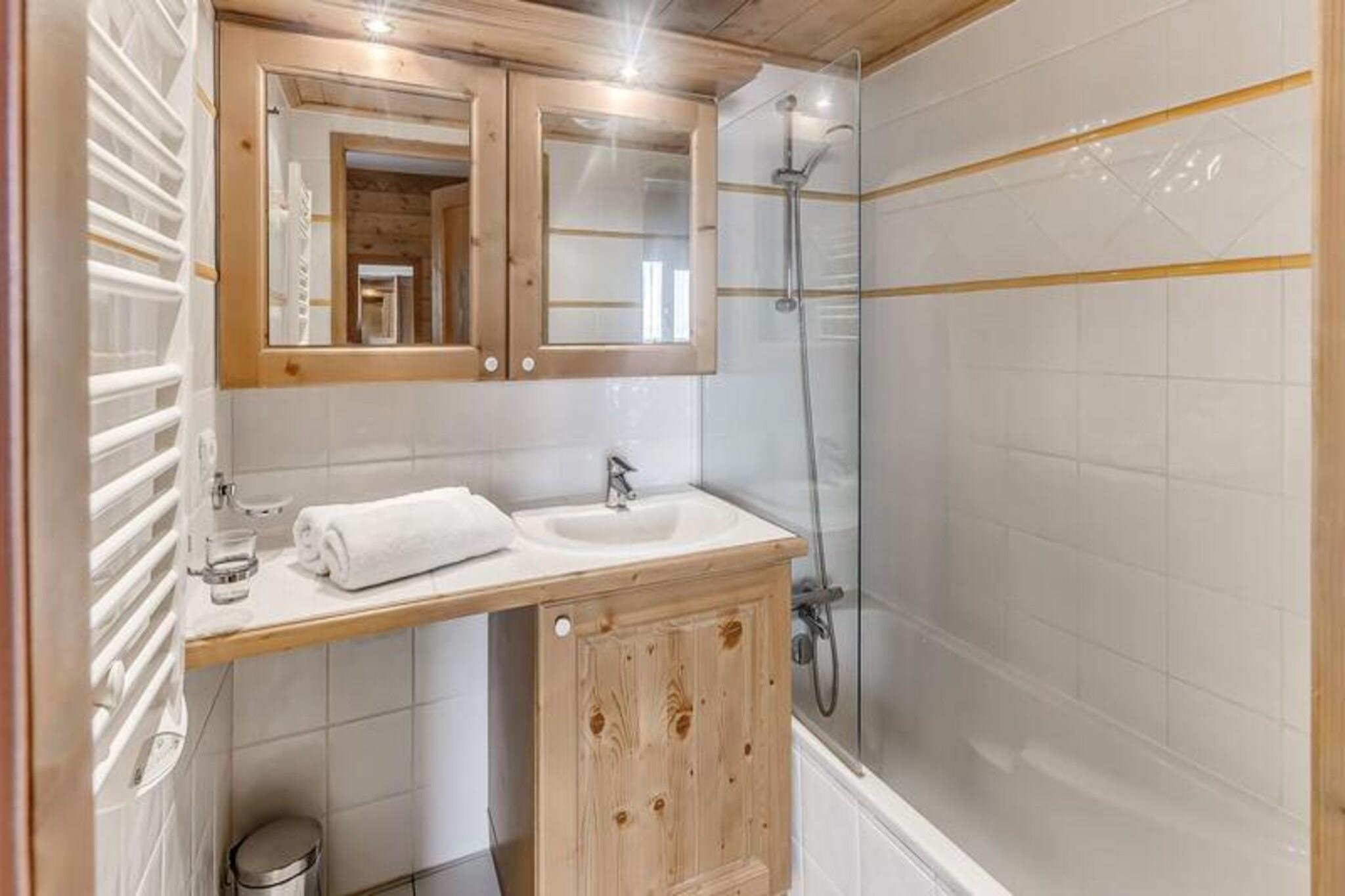 Denne hyggelige lejlighed, beliggende i en charmerende villaby, er perfekt til en gruppe på op til fire personer. Det omfatter et soveværelse med to enkeltsenge, et rummeligt opholdsområde med en sovesofa og et badeværelse med badekar og håndklæderadiator. Lejligheden er udstyret med moderne bekvemmeligheder, herunder gratis Wi-Fi, et 123 cm 4K HDR-tv og et hjemmebiografsystem med en soundbar og subwoofer for ultimativ afslapning. Kæledyr er ikke tilladt, og lejligheden er ikke-ryger. Bekvemt beliggende nær indgangen til landsbyen tilbyder denne lejlighed nem adgang til feriestedets pulserende hjerte, kun en kort shuttletur væk. Den gratis shuttle-service kører hvert 8. minut i vintersæsonen og giver adgang til gondolen og ESF. Boligen kan prale af en fantastisk udsigt over Vanoise-massivet og Courchevel-skråningerne, der tilbyder et fredeligt tilflugtssted i hjertet af Alperne. Lokale caféer og butikker er let tilgængelige, hvilket sikrer, at du kan nyde alt, hvad området har at byde på. Lejligheden har et fuldt udstyret køkken åbent til stuen, komplet med moderne apparater. En stor østvendt terrasse giver et solrigt sted at slappe af og nyde de smukke omgivelser. Yderligere faciliteter inkluderer et skiskab, gratis overdækket parkering og adgang til en swimmingpool, fitnesscenter og spa (sæsonbestemt).