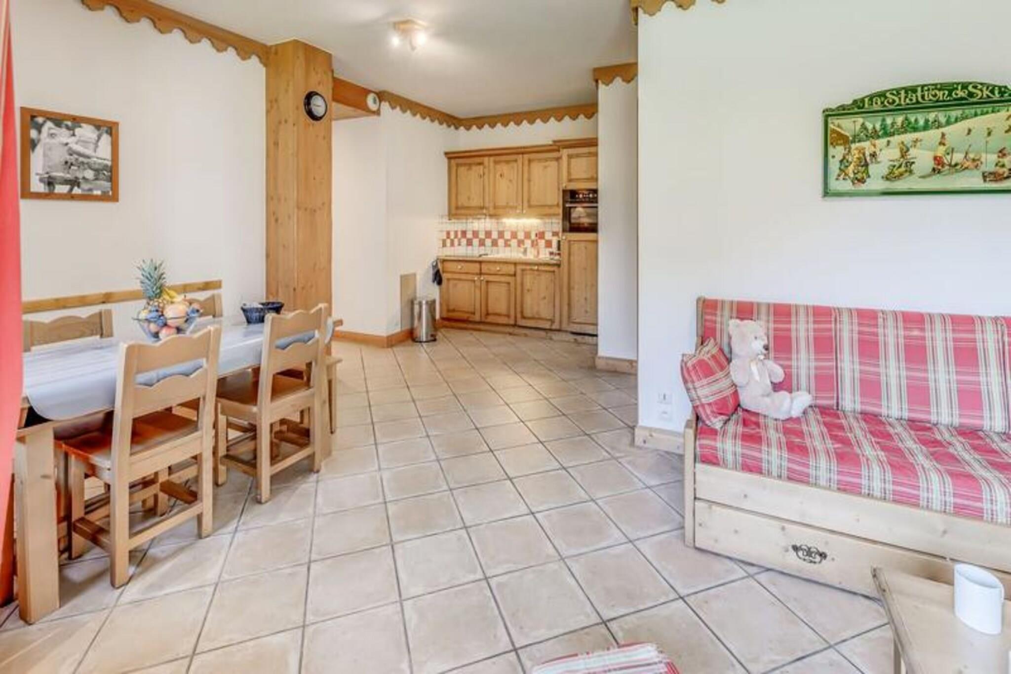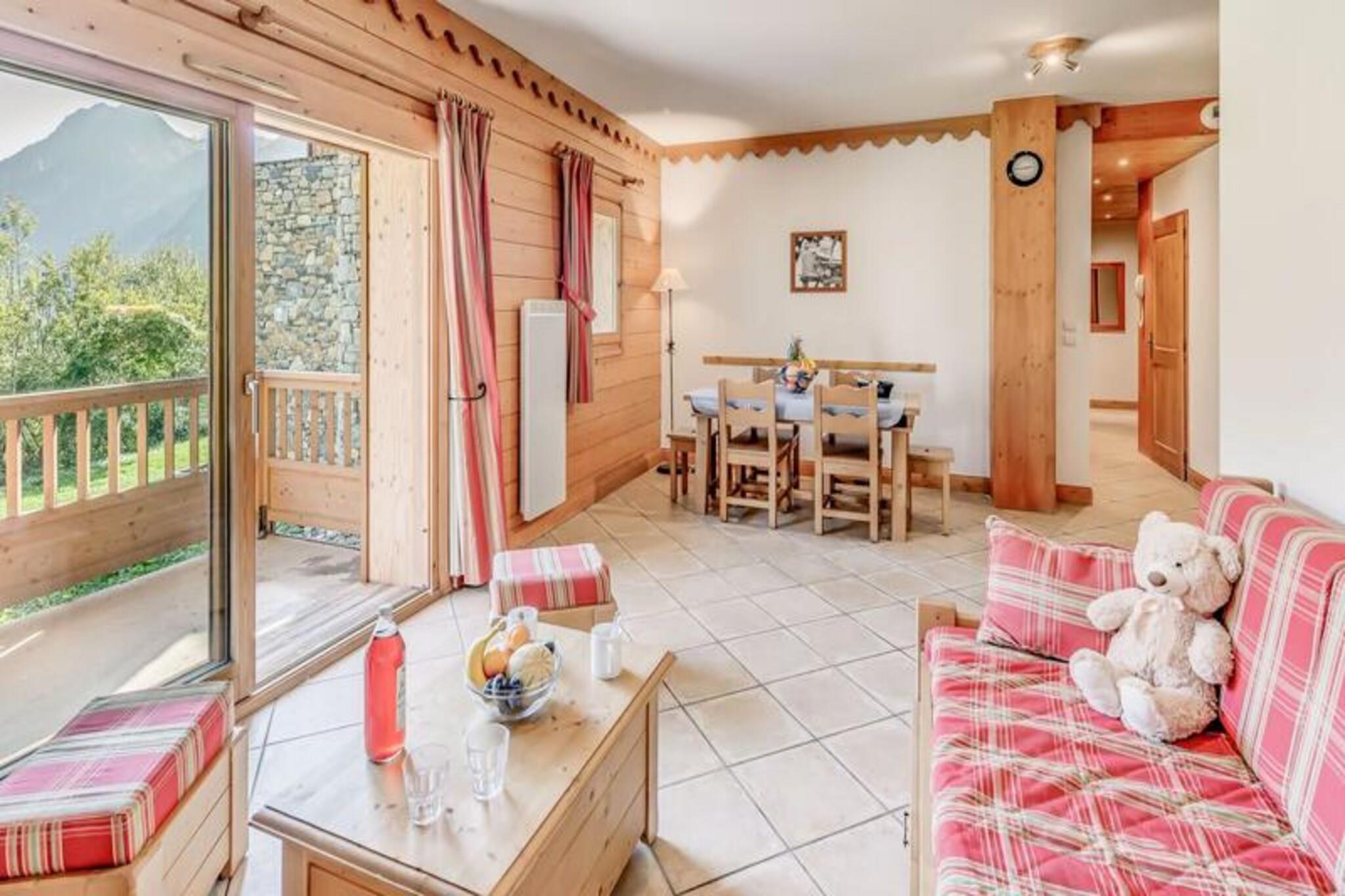 Denne charmerende lejlighed, beliggende i en fredfyldt beboelsesby, rummer komfortabelt seks gæster med to hyggelige soveværelser og en sovesofa i opholdsområdet. Det ene soveværelse har en dobbeltseng og en privat brusekabine, mens det andet har to enkeltsenge. Lejligheden indeholder et badeværelse med badekar, et separat toilet og en rummelig stue med en solrig sydvendt terrasse med en spektakulær udsigt over Vanoise-massivet. Ejendommen er ikke-ryger og kæledyrsfri, og tilbyder også et skiskab og en dedikeret overdækket parkeringsplads. Ideelt beliggende nær den maleriske landsby, tilbyder ejendommen nem adgang til aktiviteter året rundt. Om vinteren tager en gratis shuttle-service (hvert 8. minut) dig til gondolen, skiløjperne og ESF-skiskolen. Om sommeren kan du nyde de omkringliggende stier, markeder og caféer, eller udforske den nærliggende Vanoise Nationalpark. Faciliteterne på stedet inkluderer en swimmingpool, fitnesscenter og spa, sammen med en massagesalon for ultimativ afslapning (spa og massage-tjenester tilgængelige sæsonbestemt). Lejligheden er fuldt udstyret med moderne bekvemmeligheder, herunder et køkken med alt nødvendigt, en spiseplads og en hyggelig lounge med et tv. Hoteltjenester såsom WiFi, sengetøj, håndklæder og slutrengøring er inkluderet, mens babyudstyr er tilgængeligt efter anmodning mod et ekstra gebyr. Dette tilflugtssted kombinerer bekvemmelighed og komfort til en mindeværdig alpine ferie.