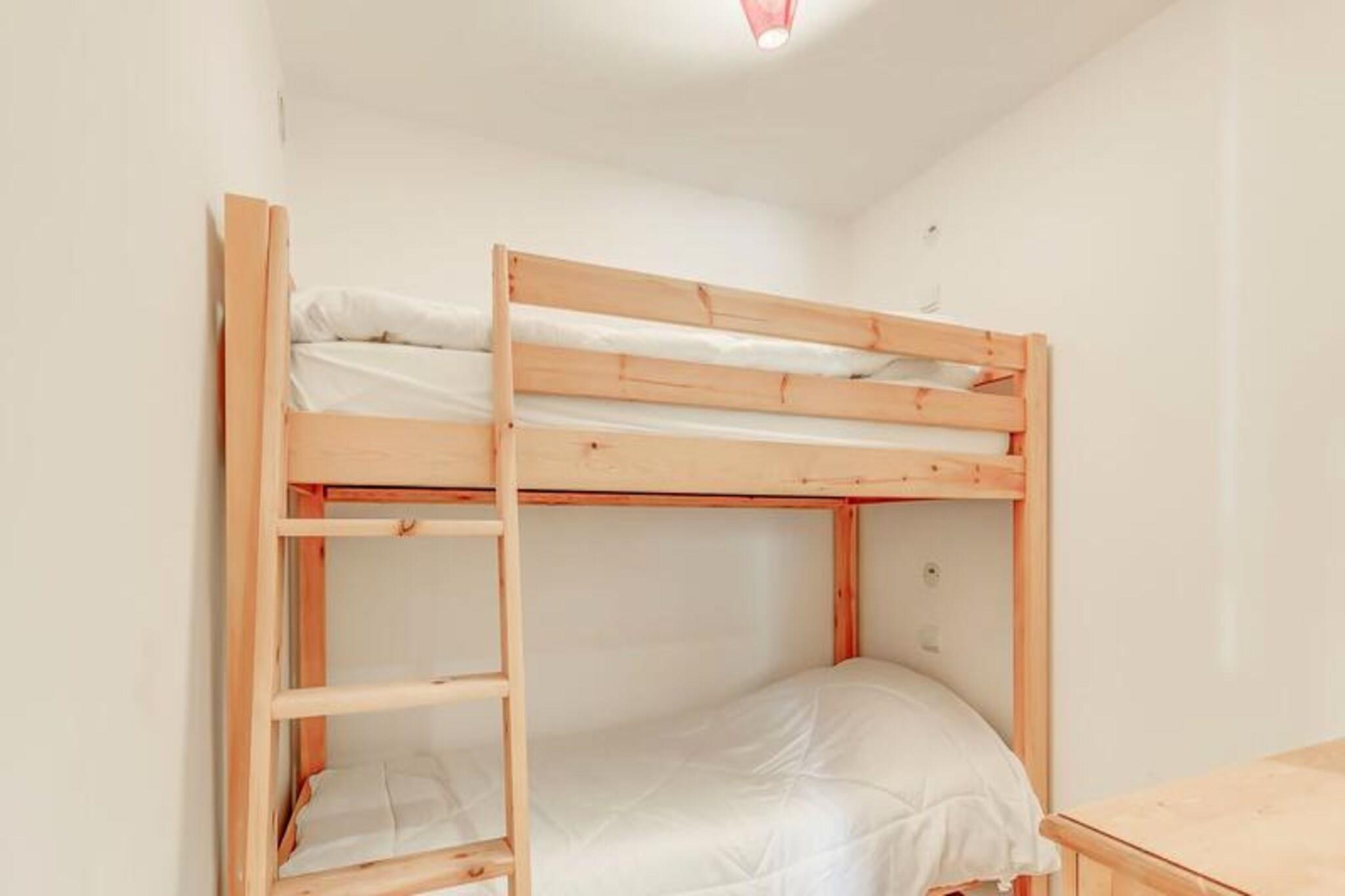 Denne hyggelige lejlighed, beliggende på første sal i en velholdt hytte, er designet til at rumme op til 6 personer. Det har to komfortable soveværelser med dobbeltsenge, et bjerghjørne med køjesenge og en stue med en ikke-ombyggelig sofa. Ejendommen er ikke-ryger, og kæledyr er ikke tilladt, hvilket sikrer et fredeligt og allergifrit miljø. En gratis overdækket parkeringsplads og skiskab er inkluderet for nemheds skyld, og lejligheden leveres med Wi-Fi og tv til underholdning. Denne lejlighed ligger kun 800 meter fra skiløjperne og er perfekt til vintersportsentusiaster. Landsbybussen stopper foran boligen giver nem adgang til feriestedets centrum og gondolens afgangssted. Om sommeren kan du udforske nærliggende vandrestier og nyde den fantastiske udsigt over de omkringliggende bjerge. Supermarkeder, caféer og restauranter er også inden for gåafstand, som tilbyder alle nødvendige faciliteter. Lejligheden har et fuldt udstyret køkken med køleskab, ovn, komfur og opvaskemaskine, hvilket gør madlavning enkel. Der er også badeværelse med badekar, vaskemaskine og separat toilet. Den sydvendte terrasse tilbyder et fredeligt sted at slappe af og nyde udsigten over Vanoise-massivet.