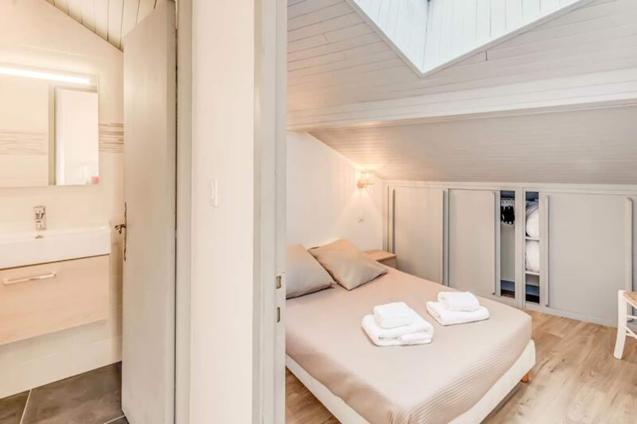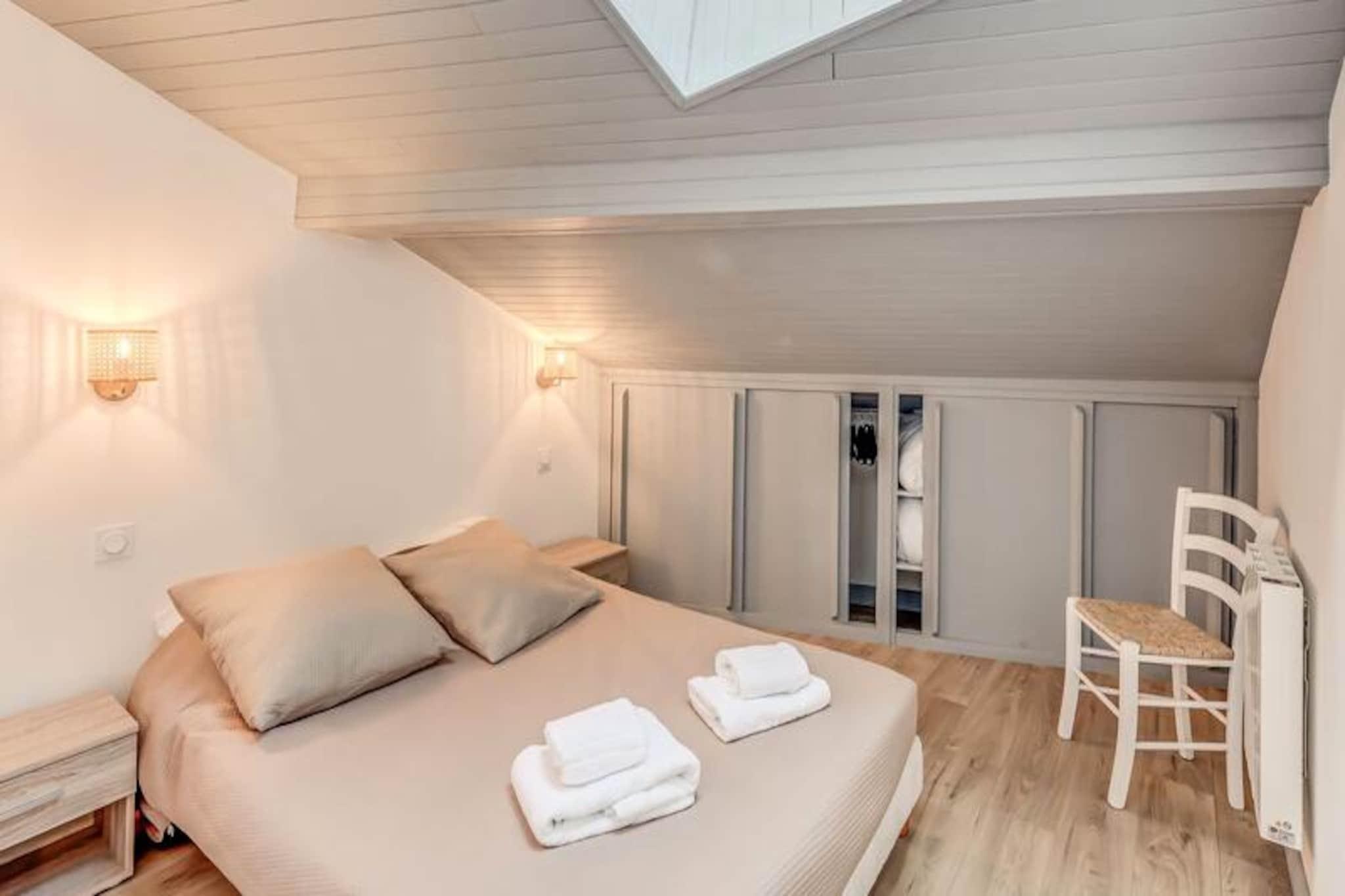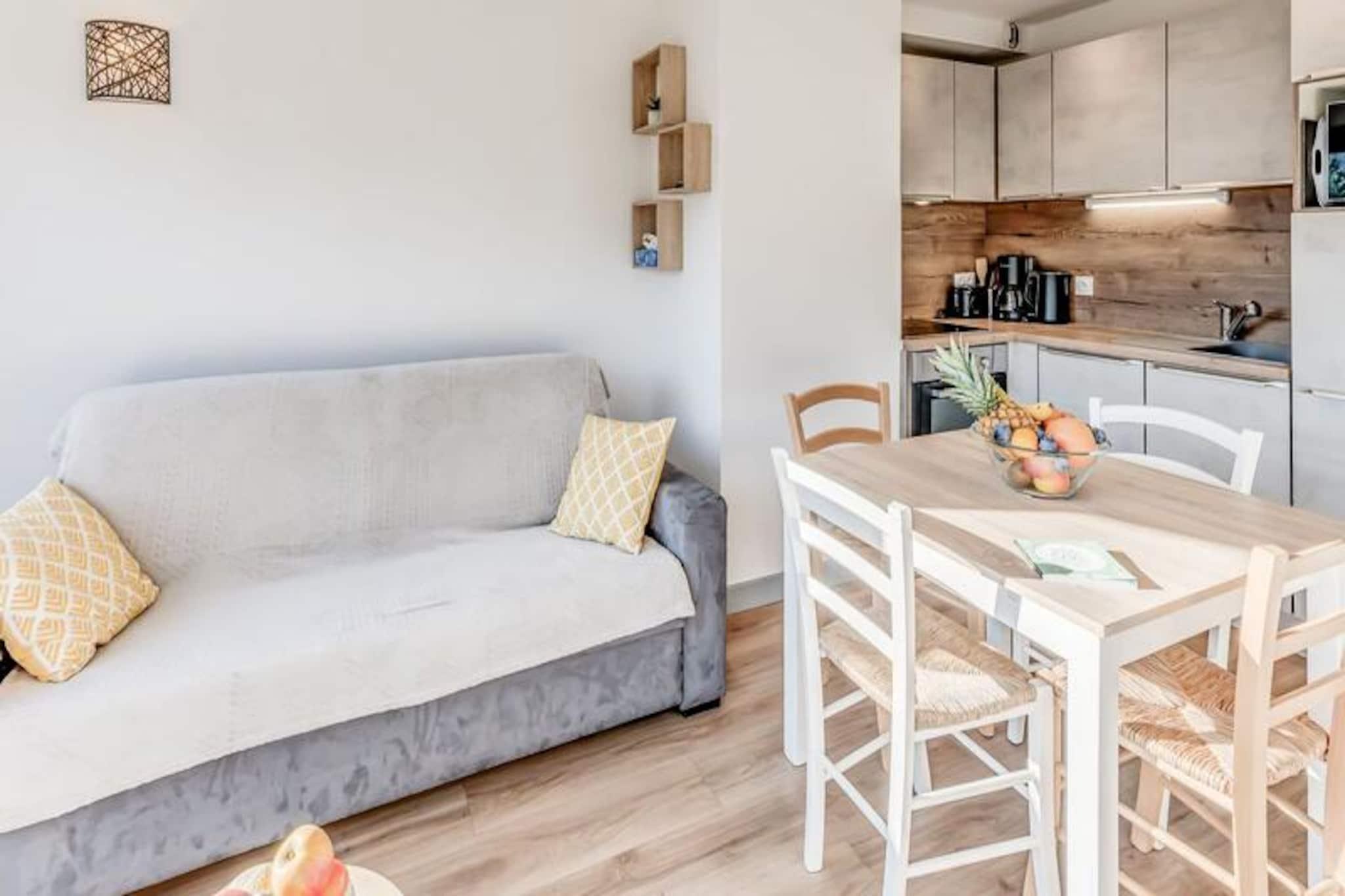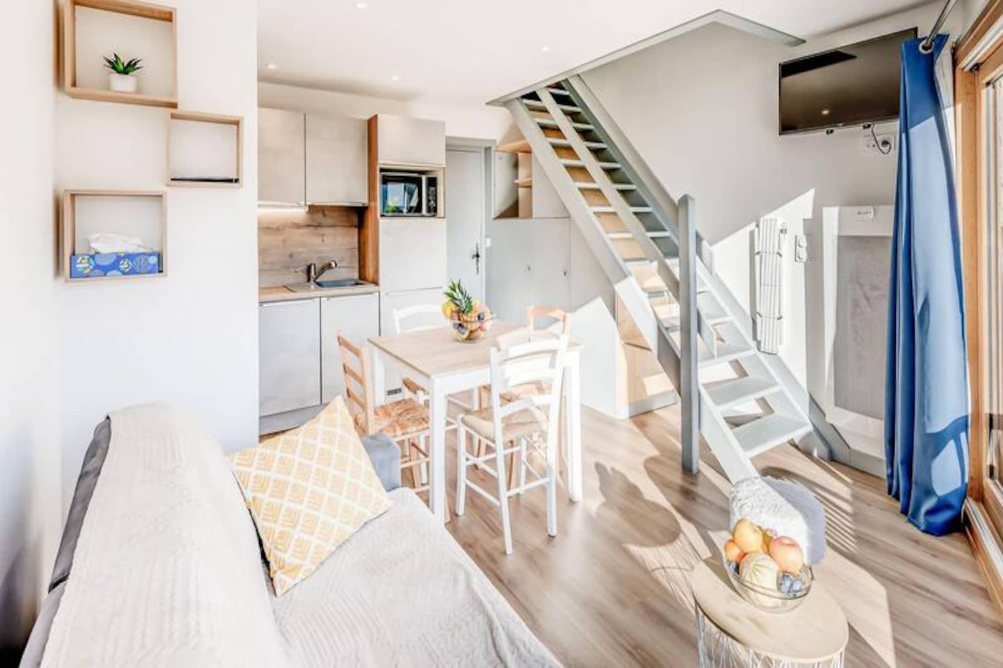 Denne charmerende duplex-lejlighed tilbyder et behageligt ophold for 4-6 gæster, med to soveværelser og en sovesofa i stuen. Det første soveværelse har en dobbeltseng, mens det andet soveværelse er udstyret med to enkeltsenge. Lejligheden er designet med moderne møbler, herunder tv og spiseplads. Nyd luksusen ved hoteltjenester såsom sengetøj, håndklæder og slutrengøring (undtagen køkkenet). Bemærk venligst, at kæledyr ikke er tilladt, og lejligheden er ikke-ryger. Der kræves et depositum, og yderligere tjenester såsom Wi-Fi og babyudstyr er tilgængelige mod et ekstra gebyr. Lejligheden er bekvemt beliggende i hjertet af landsbyen og tilbyder nem adgang til lokale attraktioner. Kun en kort gåtur fra den offentlige elevator finder du gondolen og ESF-skiskolen. Alle vigtige butikker, herunder caféer, restauranter og markeder, er i nærheden, så du kan udforske den pulserende landsbyatmosfære. Den sydvestvendte lejlighed har en uhindret udsigt over de omkringliggende bjerge, perfekt til dem, der nyder naturskønne landskaber. Lejlighedens veludstyrede køkken omfatter ovn, mikroovn, opvaskemaskine, stort køleskab, kaffemaskine, brødrister og kedel, hvilket sikrer, at du nemt kan tilberede måltider. Badeværelset har bruseniche, håndvask og toilet. Den rummelige, møblerede balkon giver dig mulighed for at slappe af og nyde den friske bjergluft, hvilket fuldender det hyggelige og funktionelle opholdsrum.