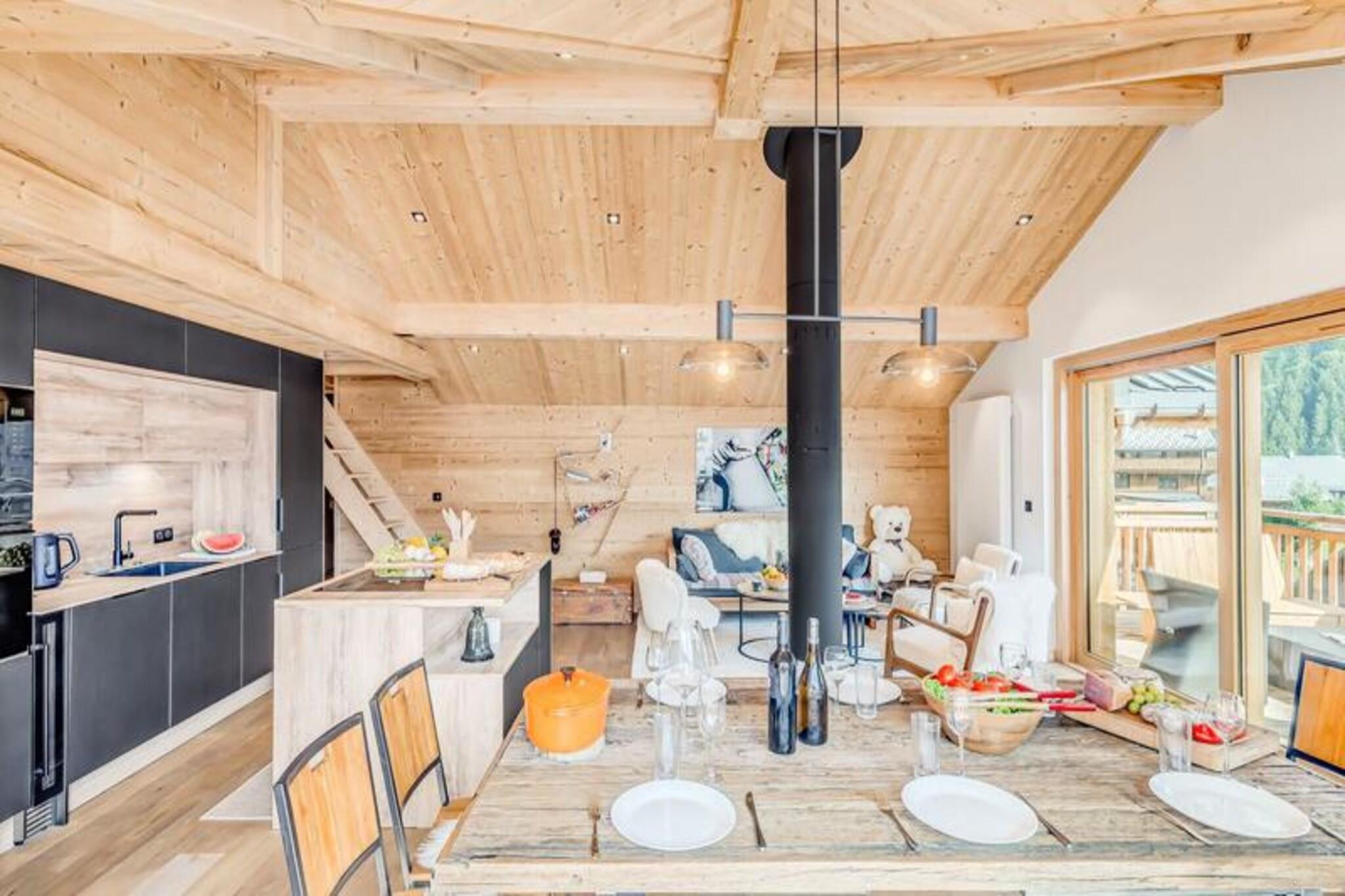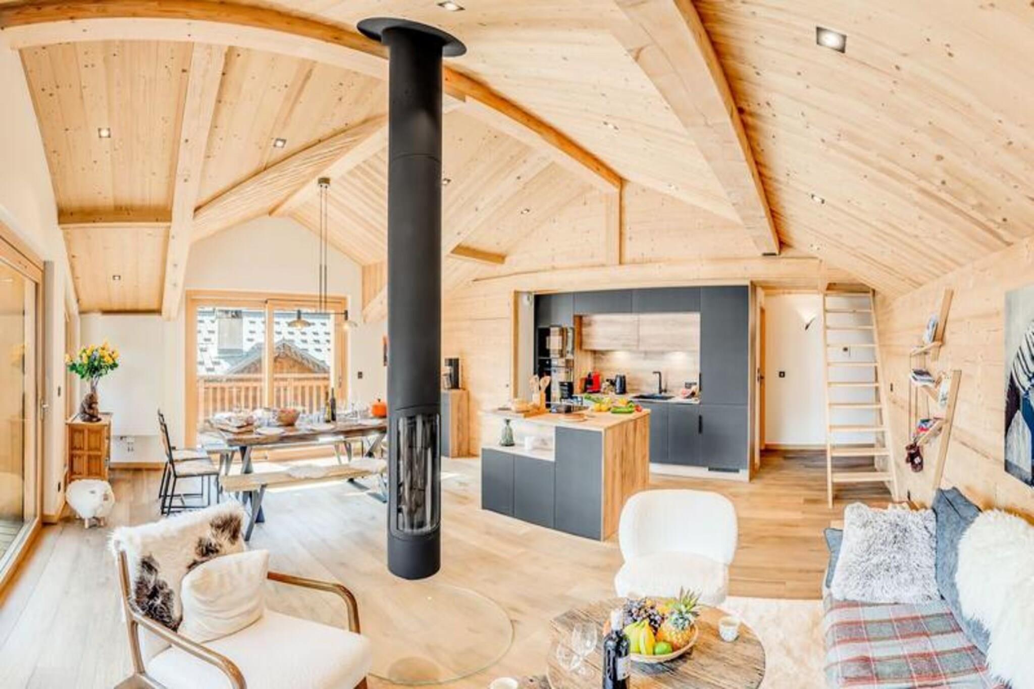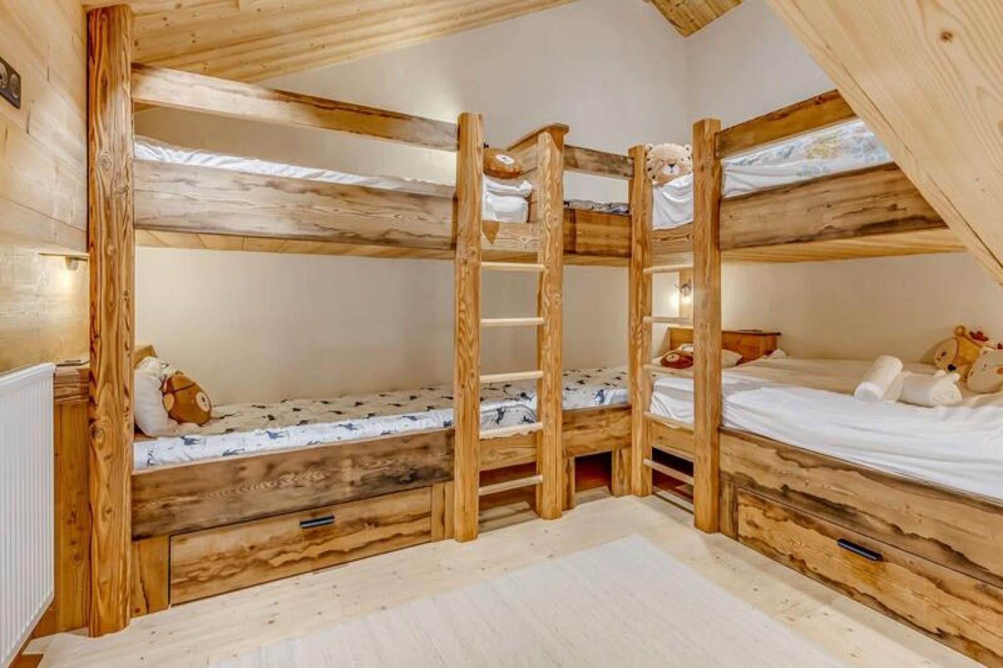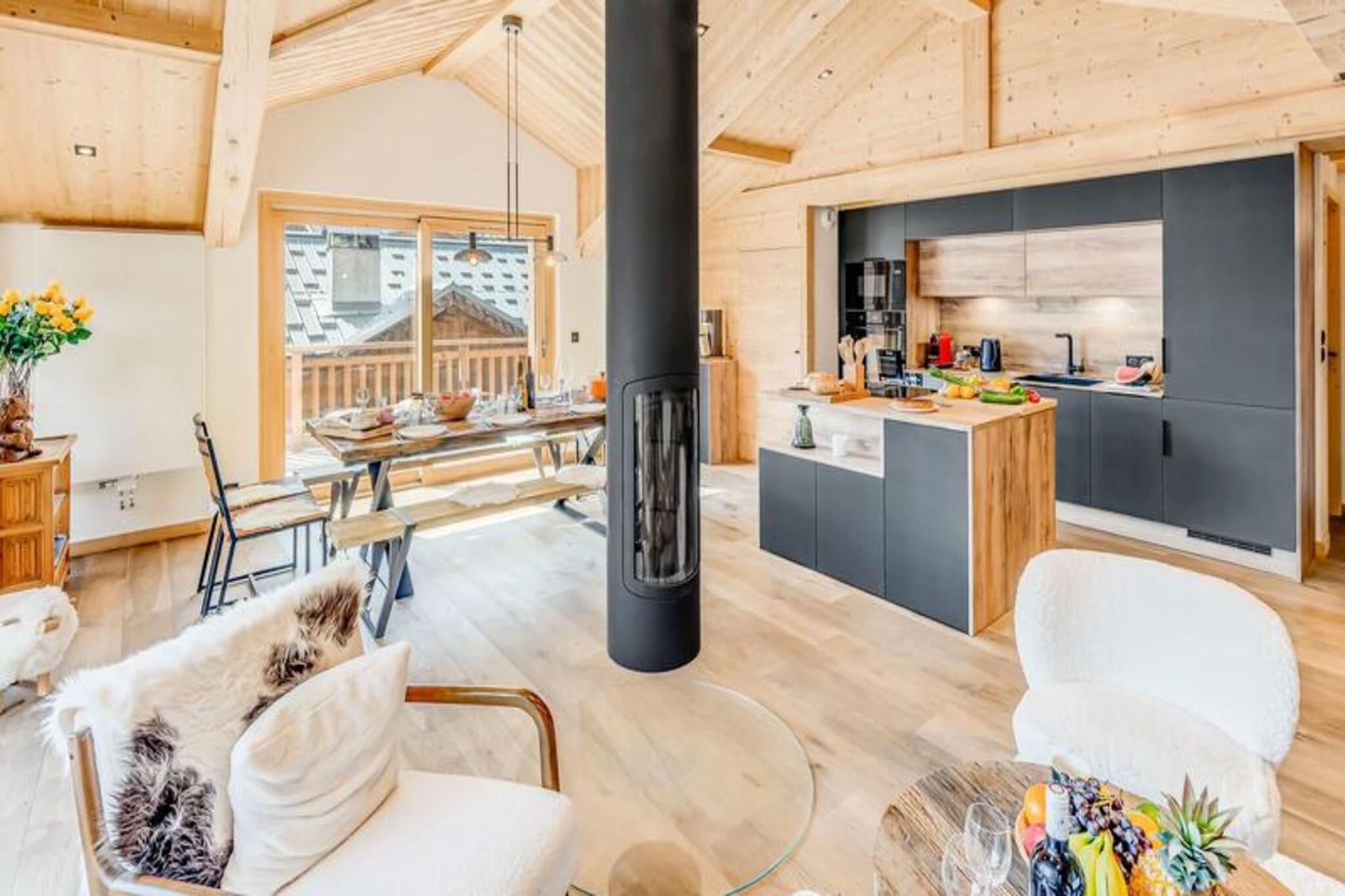 This spacious and luxurious duplex apartment can accommodate up to 12 guests, making it ideal for large families or groups. The apartment includes four comfortable bedrooms, with three double beds and a children's dormitory with bunk beds. Additional amenities include two separate toilets, a washer-dryer, and a cozy living area with a designer fireplace. The apartment is non-smoking, and pets are not allowed. Guests can also enjoy a large continuous balcony offering breathtaking views of the surrounding mountains. Located just 200 meters from the ski area, this residence provides easy access to the slopes, making it perfect for ski enthusiasts. The village of Champagny is only a short walk away, where guests can explore local shops, cafes, and markets. The property offers stunning views of the Vanoise massif and Courchevel resort, and the surrounding area is ideal for hiking, outdoor activities, and relaxation. The apartment features a fully equipped kitchen with a refrigerator, freezer, wine cellar, oven, microwave, and induction hob, ensuring guests have everything they need to prepare meals. The bathrooms are modern, with a bathtub, shower, and towel radiator for added comfort. A ski room with boot dryer radiators and ski racks, as well as underground parking, add convenience to your stay.