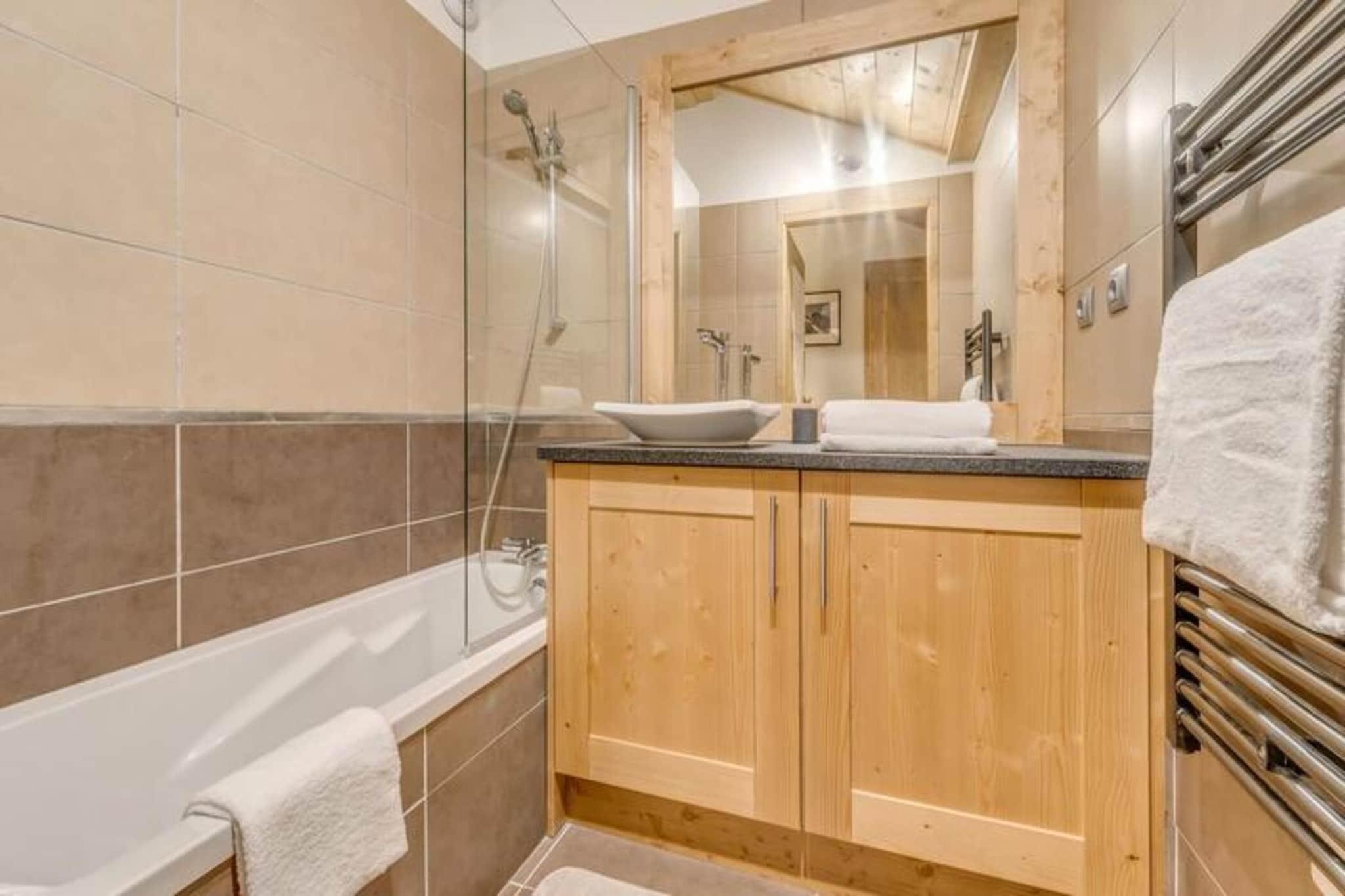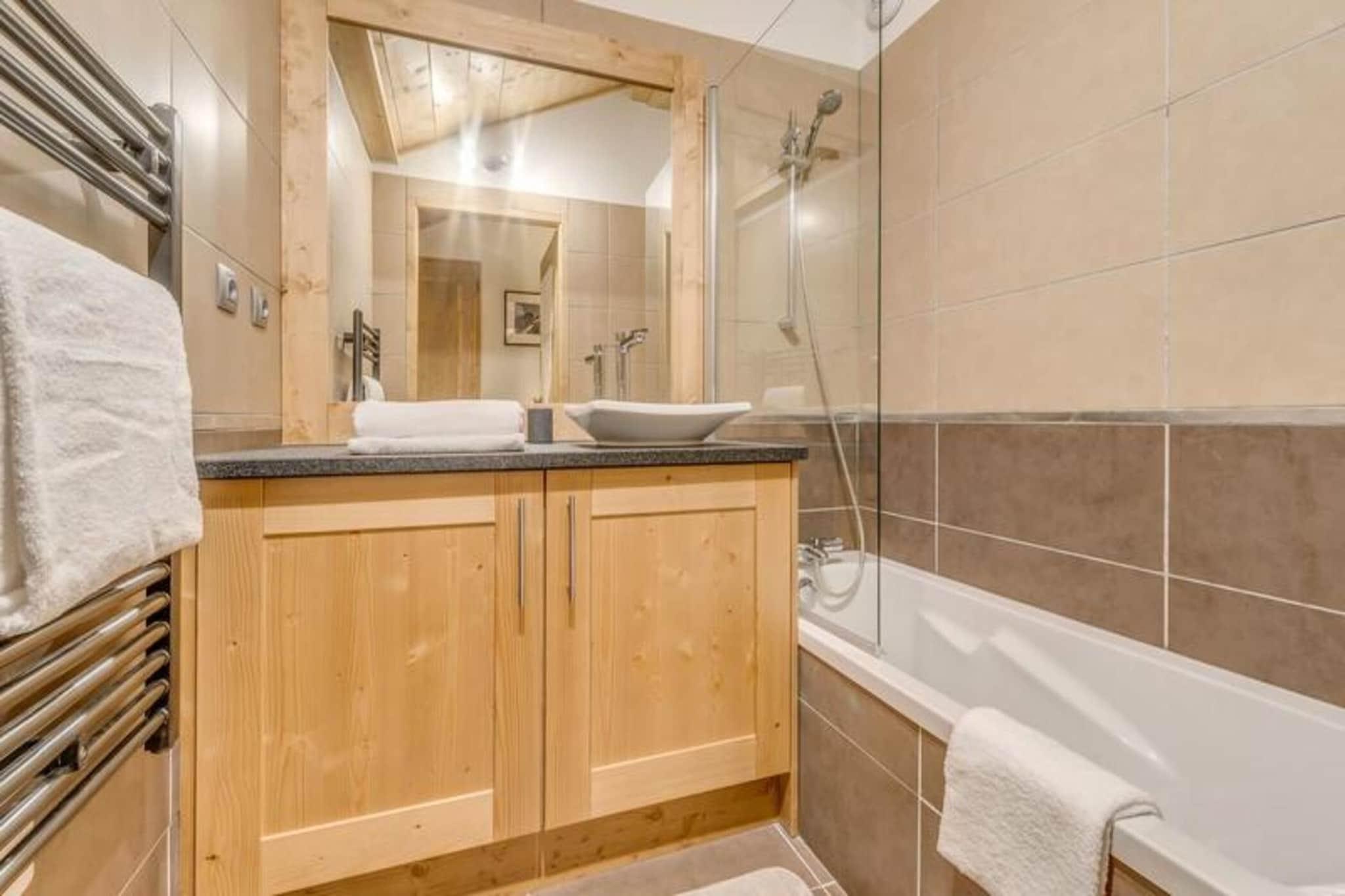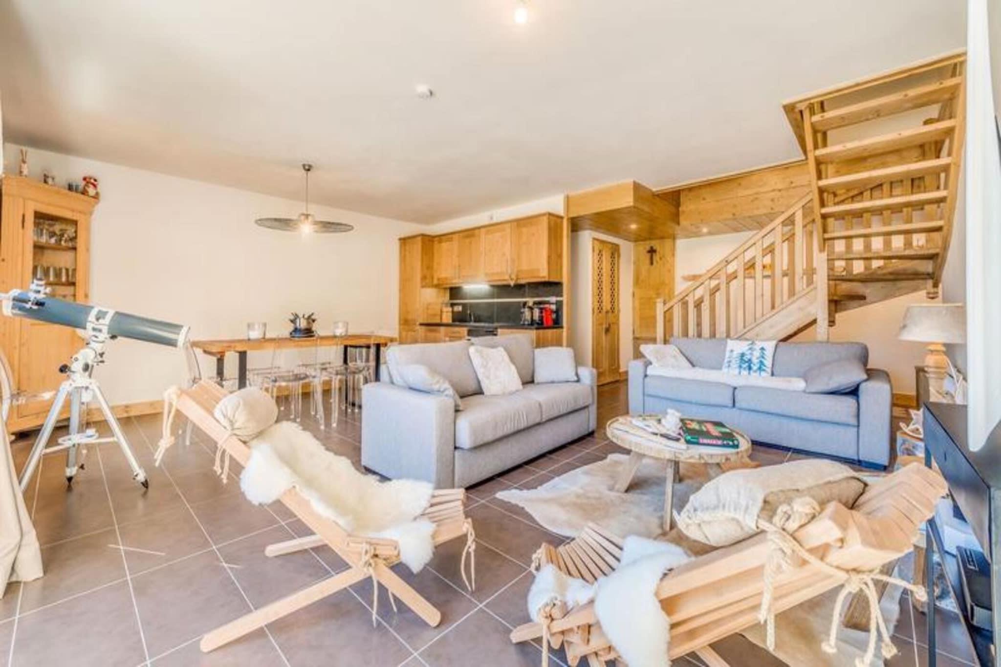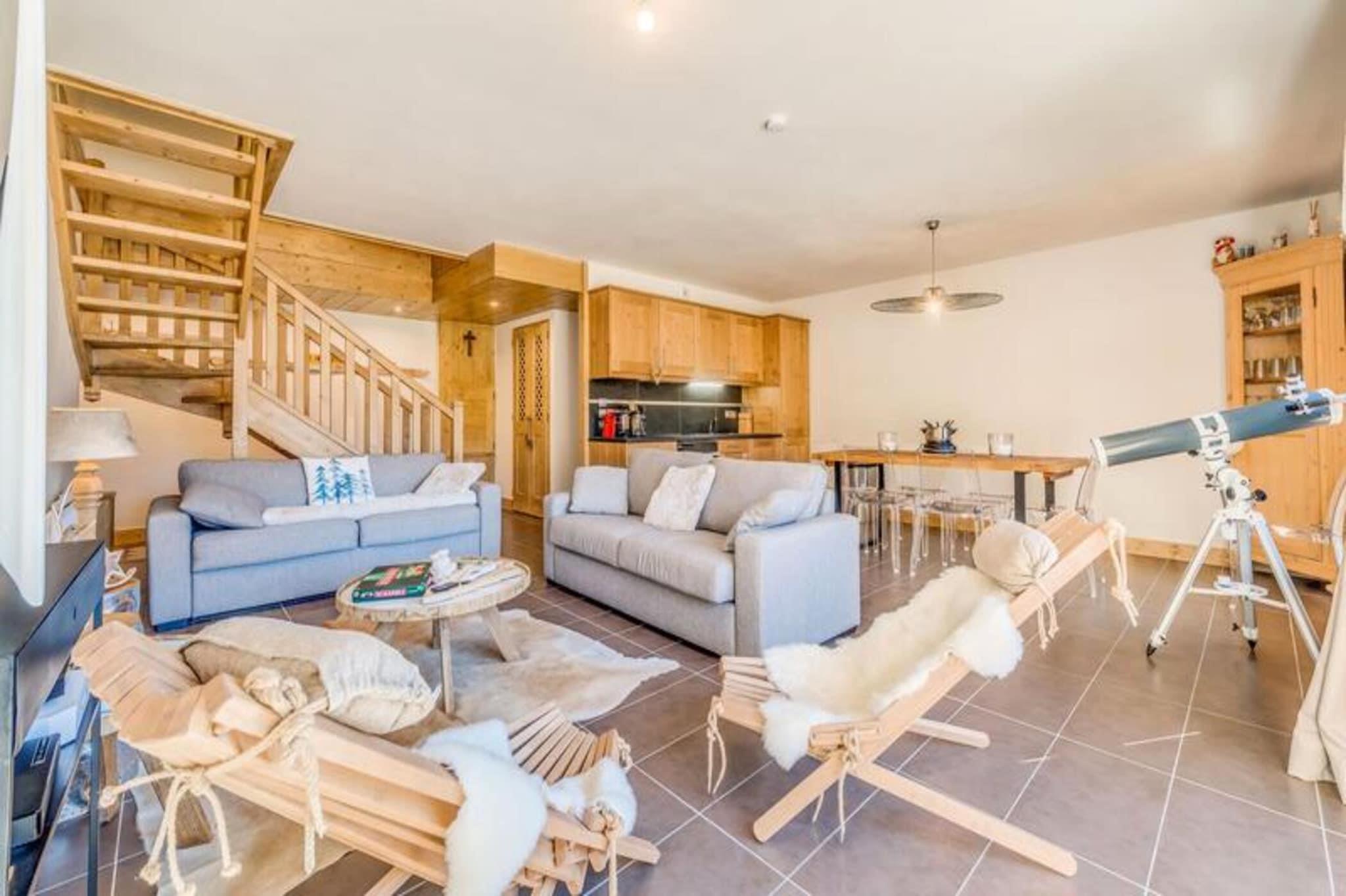Denne rummelige 4-værelses duplex lejlighed kan rumme 8 til 10 gæster, hvilket gør den perfekt til større familier eller grupper. Det har tre komfortable soveværelser, herunder et med tre dobbeltsenge, samt en sovesofa i stuen. Lejligheden er ikke-ryger, og kæledyr er ikke tilladt. Nyd moderne bekvemmeligheder såsom gratis WiFi, fladskærms-tv og luksuriøst sengetøj med opredte senge ved ankomsten. Der kræves et refunderbart depositum på EURO2500 ved indtjekning. Lejligheden er ideelt beliggende kun 20 meter fra gondolens afgang og skiundervisning, hvilket giver nem adgang til pisterne. Byens hjerte og butikker ligger kun 100 meter væk, hvilket gør det bekvemt at udforske området. Boligen byder på en fantastisk udsigt over landsbyen og Vanoise-massivet, hvilket sikrer et naturskønt og roligt ophold. Lejligheden har et fuldt udstyret køkken med køleskab, ovn, opvaskemaskine, kaffemaskine og mere, perfekt til at tilberede måltider derhjemme. Det har også tre badeværelser, herunder et med badekar og et andet med bruser. Yderligere bekvemmeligheder omfatter en vaskemaskine/tørretumbler, knagerækker og en møbleret balkon til udendørs afslapning. Slutrengøring (ekskl. køkkenet) er inkluderet i dit ophold.