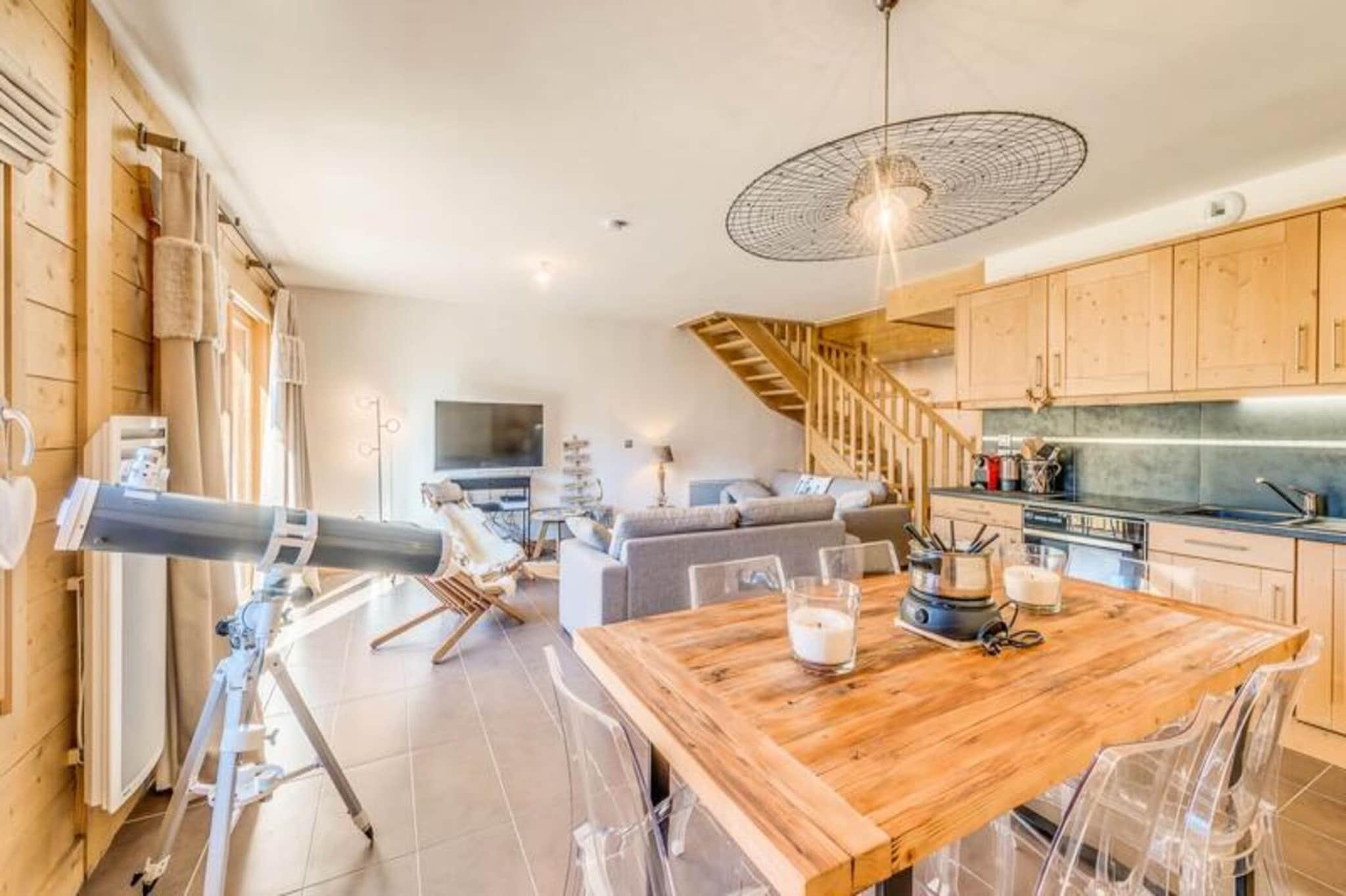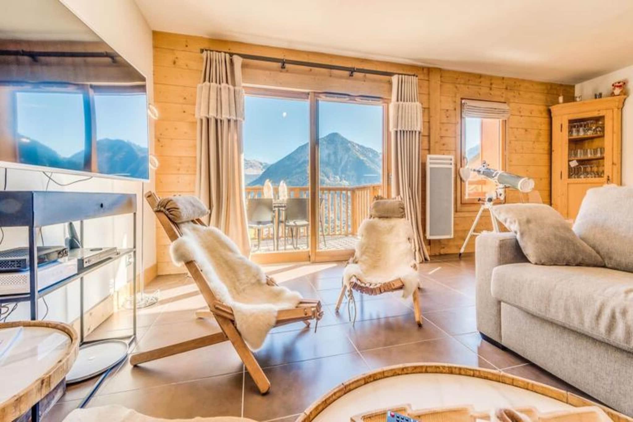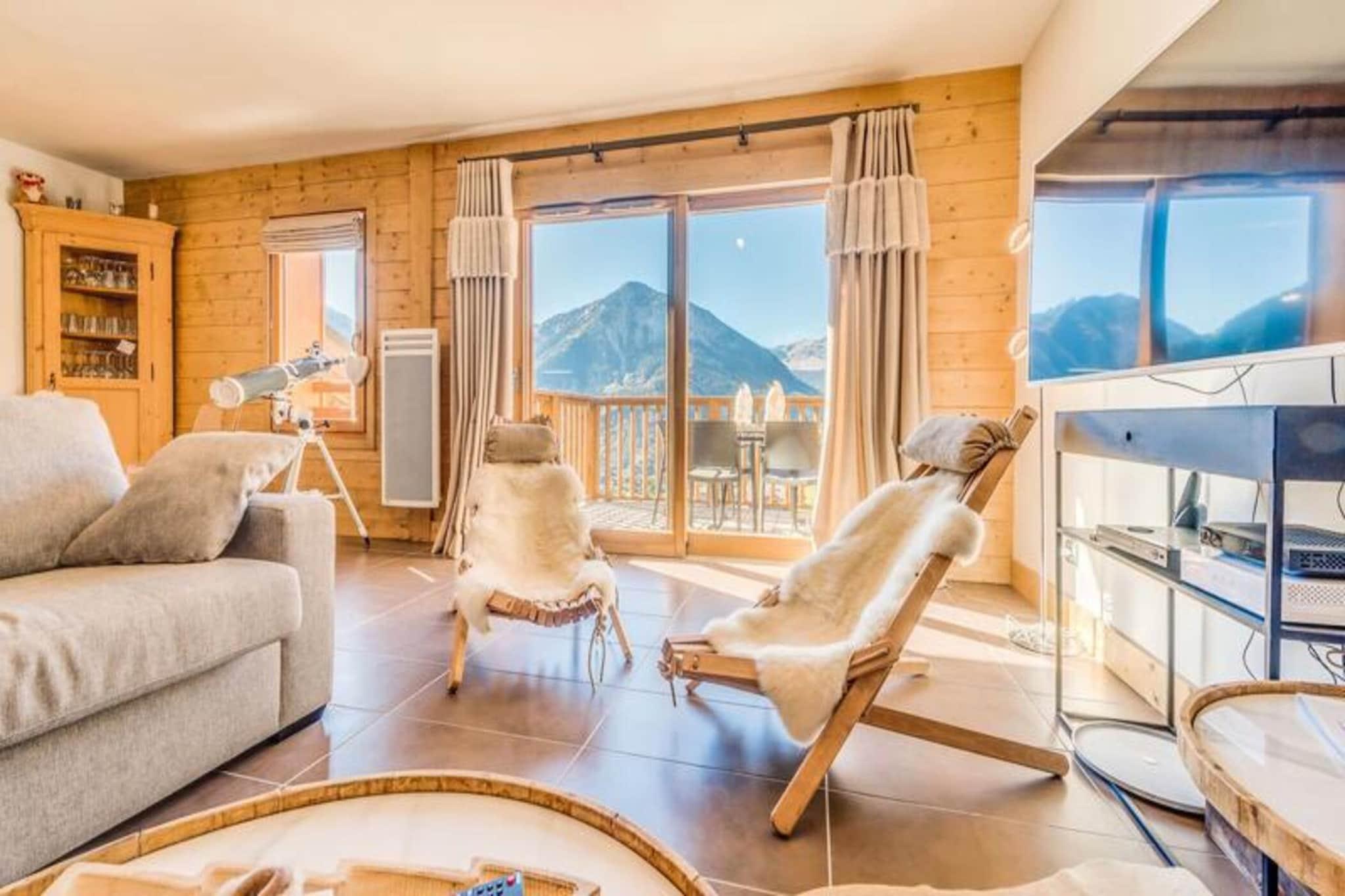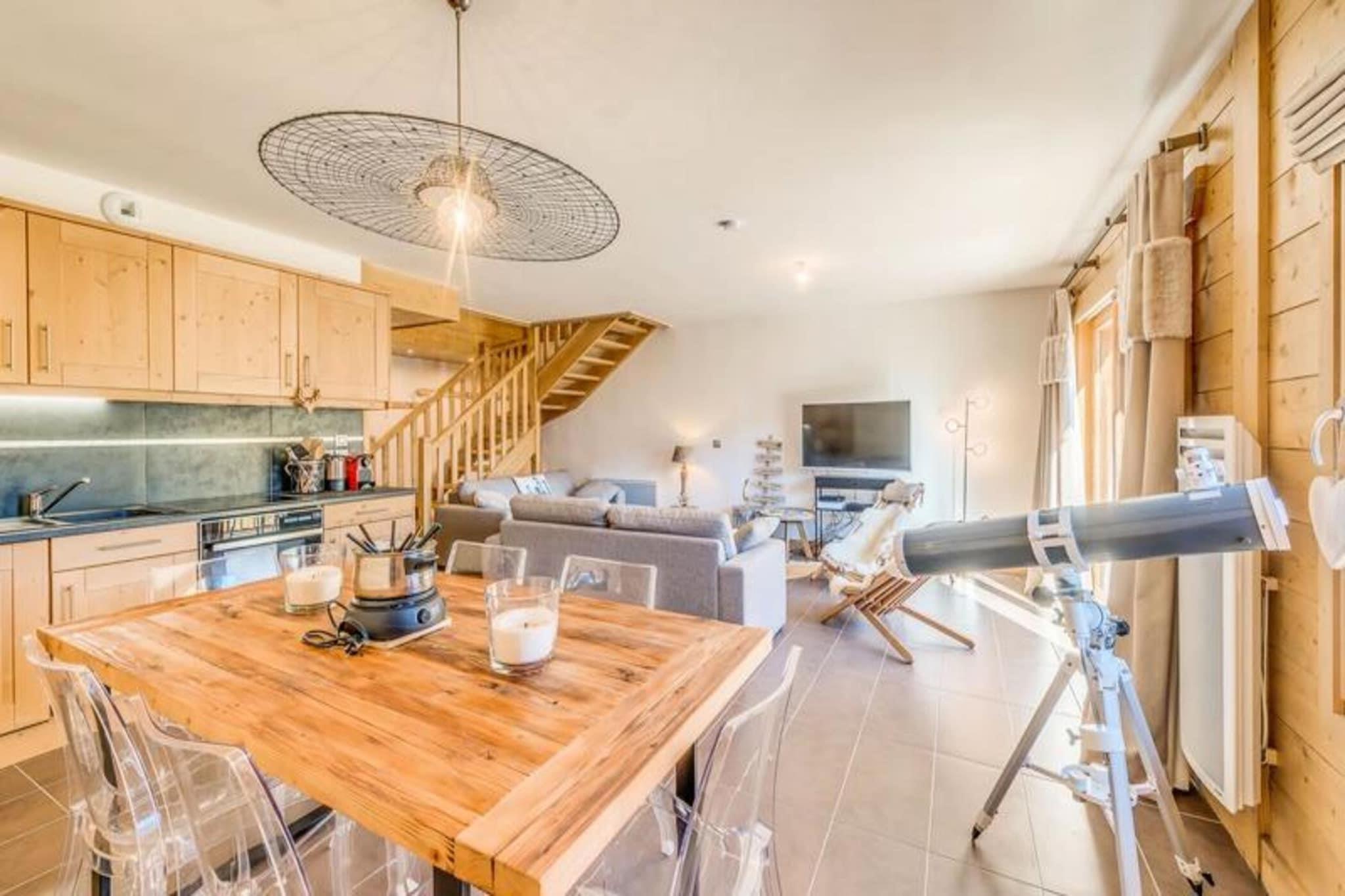 Denne rummelige 4-værelses duplex lejlighed kan rumme 8 til 10 gæster, hvilket gør den perfekt til større familier eller grupper. Det har tre komfortable soveværelser, herunder et med tre dobbeltsenge, samt en sovesofa i stuen. Lejligheden er ikke-ryger, og kæledyr er ikke tilladt. Nyd moderne bekvemmeligheder såsom gratis WiFi, fladskærms-tv og luksuriøst sengetøj med opredte senge ved ankomsten. Der kræves et refunderbart depositum på EURO2500 ved indtjekning. Lejligheden er ideelt beliggende kun 20 meter fra gondolens afgang og skiundervisning, hvilket giver nem adgang til pisterne. Byens hjerte og butikker ligger kun 100 meter væk, hvilket gør det bekvemt at udforske området. Boligen byder på en fantastisk udsigt over landsbyen og Vanoise-massivet, hvilket sikrer et naturskønt og roligt ophold. Lejligheden har et fuldt udstyret køkken med køleskab, ovn, opvaskemaskine, kaffemaskine og mere, perfekt til at tilberede måltider derhjemme. Det har også tre badeværelser, herunder et med badekar og et andet med bruser. Yderligere bekvemmeligheder omfatter en vaskemaskine/tørretumbler, knagerækker og en møbleret balkon til udendørs afslapning. Slutrengøring (ekskl. køkkenet) er inkluderet i dit ophold.