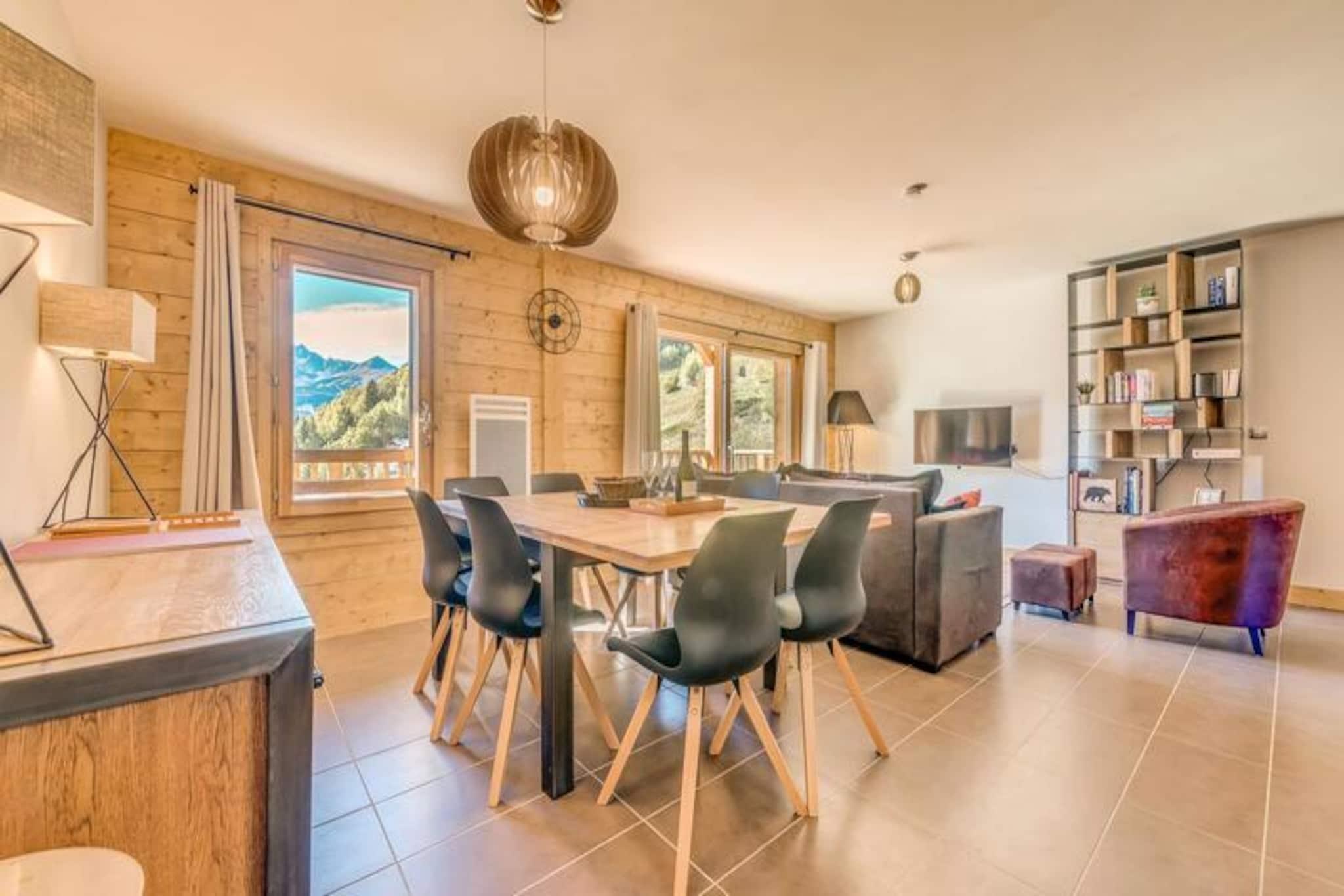 Denne rummelige duplex-lejlighed er designet til op til 8 gæster og tilbyder 3 hyggelige dobbeltværelser, hver med rigelig opbevaringsplads. Stuen, komplet med en sovesofa, er ideel til afslapning, med fladskærms-tv, dvd-afspiller og adgang til en syd- og vestvendt balkon. Kæledyr er tilladt mod et tillæg, og lejligheden er strengt røgfri. Sengetøj og håndklæder leveres, og sengene er lavet for din bekvemmelighed. Beliggende kun 20 meter fra gondolen og skiundervisningen og 100 meter fra landsbyens centrum, tilbyder lejligheden hurtig adgang til alle lokale faciliteter, herunder butikker, restauranter og caféer. Boligen giver en fantastisk udsigt over Vanoise-massivet og landsbyen, hvilket forbedrer dit ophold med både fredfyldte og spektakulære bjerglandskaber. Lejligheden har et fuldt udstyret køkken med køleskab, ovn, opvaskemaskine og Nespresso-kaffemaskine, ideel til at tilberede måltider under dit ophold. Lejligheden indeholder også to badeværelser - det ene med bruser på hovedniveauet og det andet med badekar ovenpå - sammen med en vaskemaskine og tørretumbler for ekstra bekvemmelighed. Et skiskab og gratis trådløs internetadgang er også tilgængelig for gæsterne.