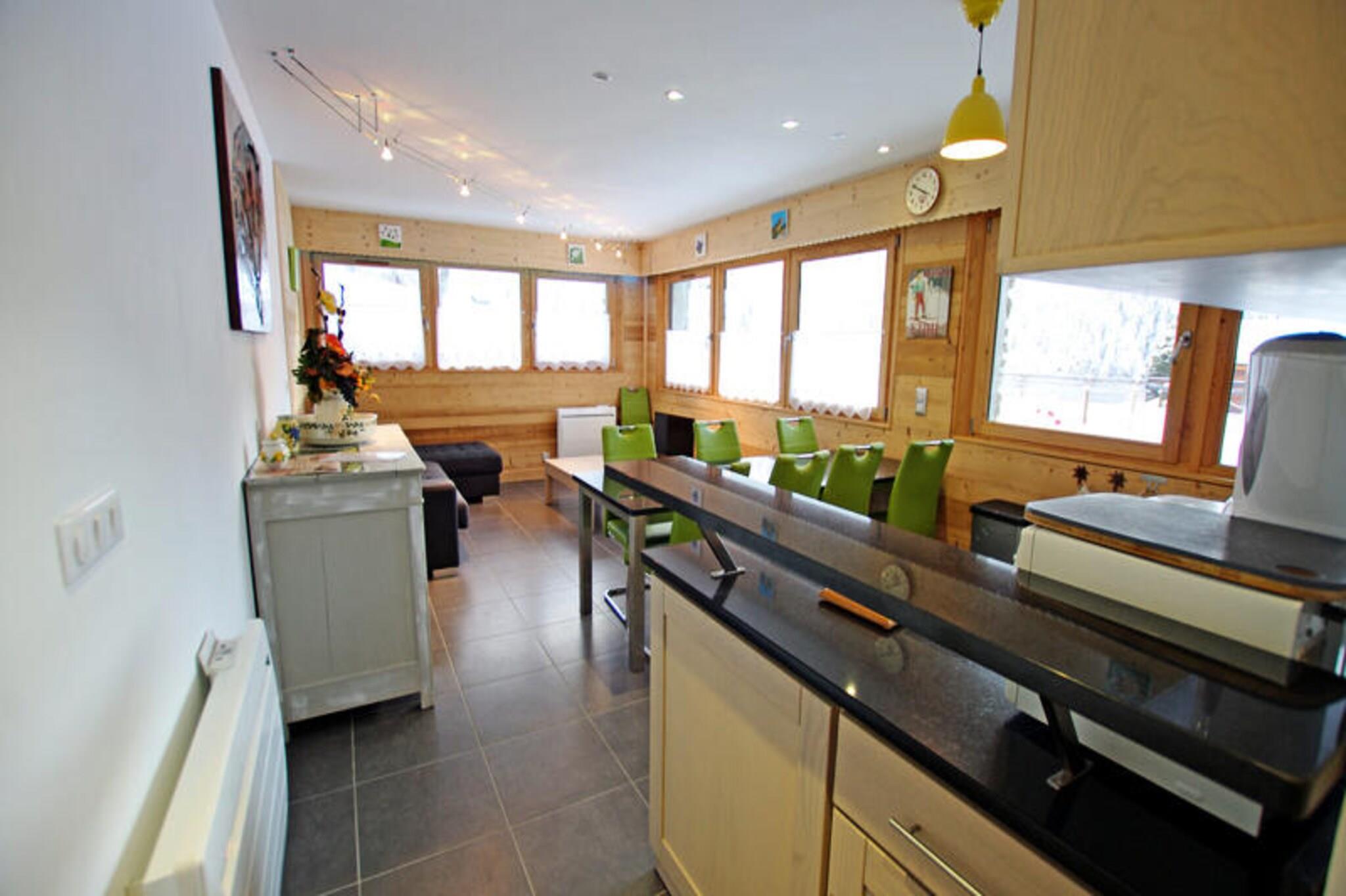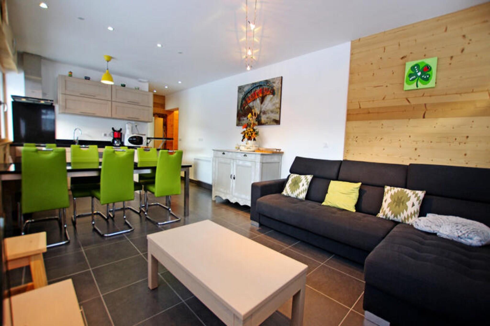 Denne nyrenoverede lejlighed i stueetagen, beliggende i "Le Seillon"-boligen, tilbyder et moderne og hyggeligt rum for op til seks gæster. Det spænder over 60 kvadratmeter og har to soveværelser: et med dobbeltseng og køjesenge og et andet med dobbeltseng, en-suite bruser og toilet. Det lyse hovedrum, omgivet af vinduer, sikrer rigeligt naturligt lys og malerisk udsigt. Lejligheden er ikke-ryger, kæledyrsfri og inkluderer skiskabe for din bekvemmelighed. Beliggende kun 400 meter fra landsbyens centrum og gondolens afgangssted giver denne bolig nem adgang til skiløb og lokale attraktioner. Et nærliggende supermarked og et stop for vintertransport bidrager til dets bekvemmelighed. Ejendommen er ideel til at udforske området, uanset om du nyder pisterne eller opdager landsbyens charme. Det amerikanske køkken er fuldt udstyret med moderne apparater, herunder et køleskab med fryser, ovn, mikroovn, opvaskemaskine og meget mere. Hoteltjenester såsom Wi-Fi, sengetøj, håndklæder og slutrengøring (ekskl. køkkenet) er inkluderet, hvilket sikrer et behageligt og problemfrit ophold.