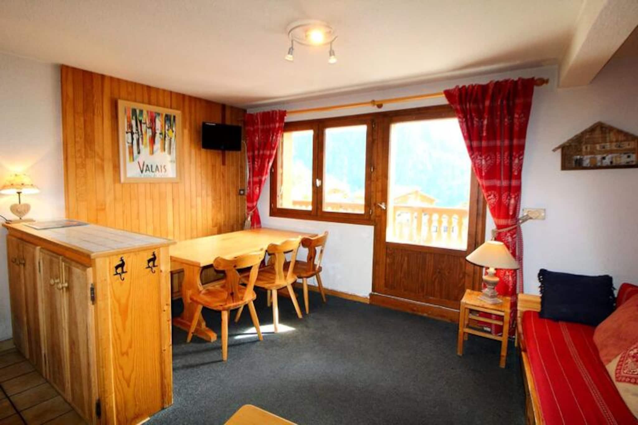 Denne charmerende lejlighed, beliggende på 3. sal i en bolig med elevator, tilbyder et behageligt ophold for op til 6 personer. Den har et sydvendt soveværelse med dobbeltseng, en lukket kahyt med køjesenge og et nordvendt soveværelse med ekstra køjesenge, hvilket gør det ideelt for familier eller grupper. Lejligheden har desuden badeværelse med badekar, separat toilet og opholdsstue med sofa, lænestole og spiseplads. Kæledyr er velkomne mod et ekstra gebyr, og der kræves et depositum ved ankomst. Bekvemt beliggende i hjertet af landsbyen tilbyder boligen direkte adgang til gondolen og ESF, hvilket gør den perfekt til vintersportsentusiaster. Butikkerne i stueetagen tilføjer ekstra bekvemmelighed, mens den sydvendte balkon giver en fantastisk udsigt over landsbyens plads og de omkringliggende bjerge. Caféer, markeder og restauranter ligger kun få skridt væk, så gæsterne kan fordybe sig i den lokale atmosfære. Lejligheden har et fuldt udstyret tekøkken med køleskab, ovn, elektrisk kogeplade, opvaskemaskine og nødvendigt køkkenudstyr, hvilket gør det nemt at tilberede måltider. Yderligere tjenester, såsom wifi, sengetøj og håndklæder, er tilgængelige mod et ekstra gebyr, og slutrengøring tilbydes for ekstra bekvemmelighed. Lejligheden har alt det nødvendige for et behageligt og behageligt ophold.