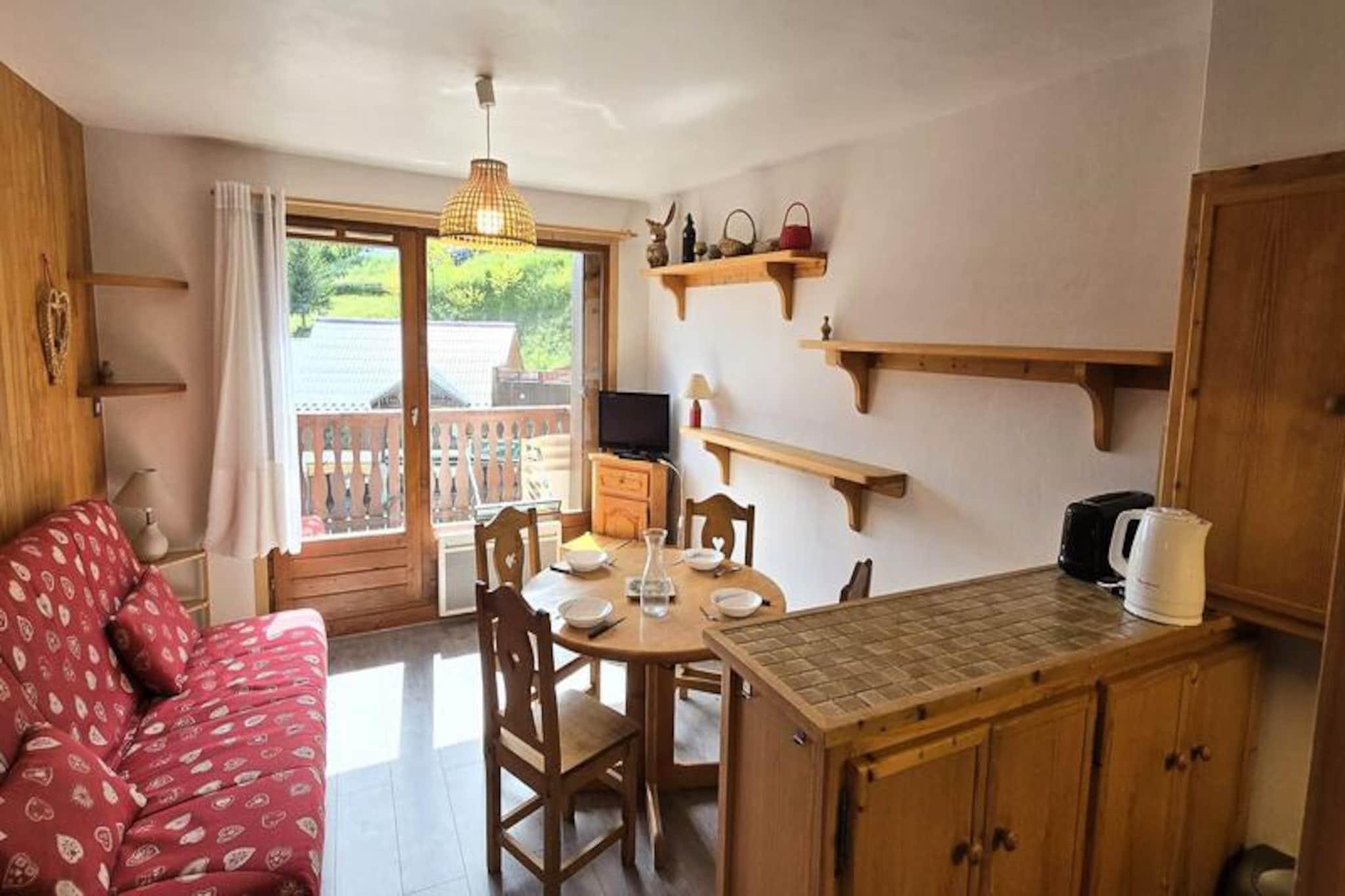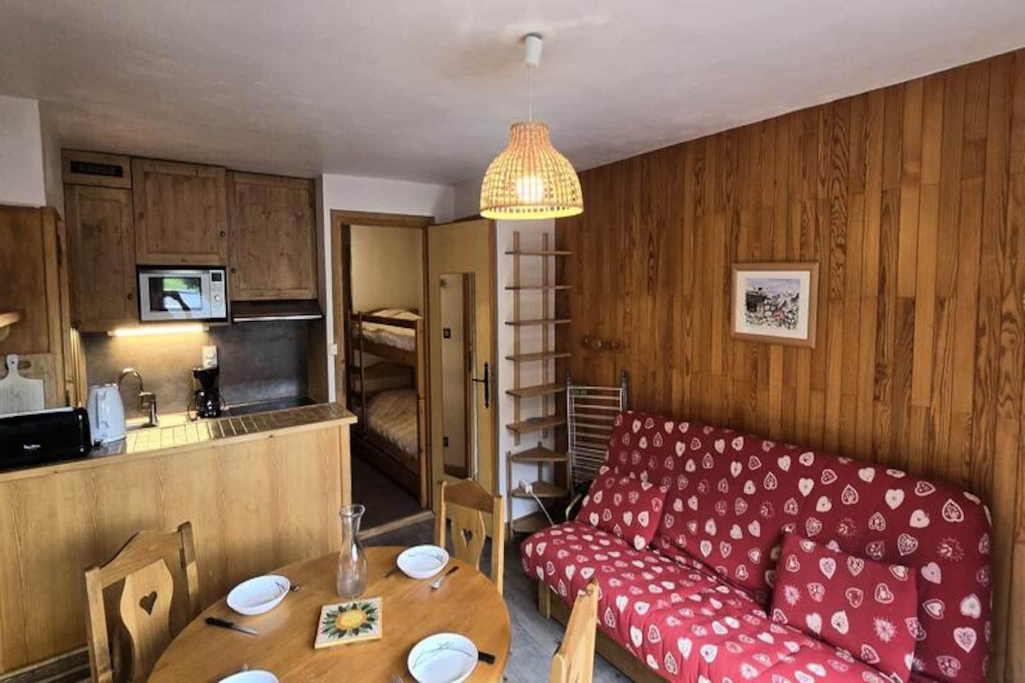 Denne charmerende studiolejlighed er ideel til op til 4 g?ster, og tilbyder 23 m² komfortabelt boligareal. Lejligheden har en k?jeseng i entr?en i bjergstil og en sovesofa i opholdsstuen, komplet med hyggelige dyner. En privat sydvestvendt balkon giver en fantastisk udsigt over landsbyens plads og de omkringliggende bjerge. Denne k?ledyrsfri, ikke-ryger ejendom omfatter et skiskab for nemheds skyld og er beliggende i en bolig med elevator og direkte adgang til gondolen og ESF. Beliggende i hjertet af landsbyen, placerer lejligheden dig f? skridt v?k fra det pulserende lokalliv. Butikker, caf?er og restauranter ligger i stueetagen og tilbyder alt hvad du beh?ver for et dejligt ophold. For skientusiaster er den direkte adgang til gondolen et h?jdepunkt, mens n?rliggende markeder og det livlige landsbytorv giver muligheder for at udforske og slappe af. De natursk?nne bjergomgivelser g?r det perfekt til udend?rs aktiviteter ?ret rundt. Tek?kkenet er fuldt udstyret med opvaskemaskine, mikroovn, k?leskab, elektrisk kogeplade, br?drister og kaffemaskine, hvilket sikrer, at du nemt kan tilberede m?ltider. En spiseplads supplerer pladsen til f?lles m?ltider. Det moderne badev?relse har brusekabine, og separate toiletter tilf?jer ekstra bekvemmelighed. Valgfri tjenester som Wi-Fi, babyudstyr og slutreng?ring er tilg?ngelige mod et ekstra gebyr.