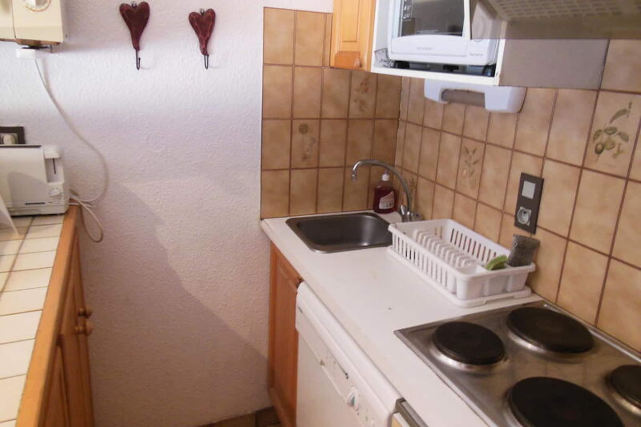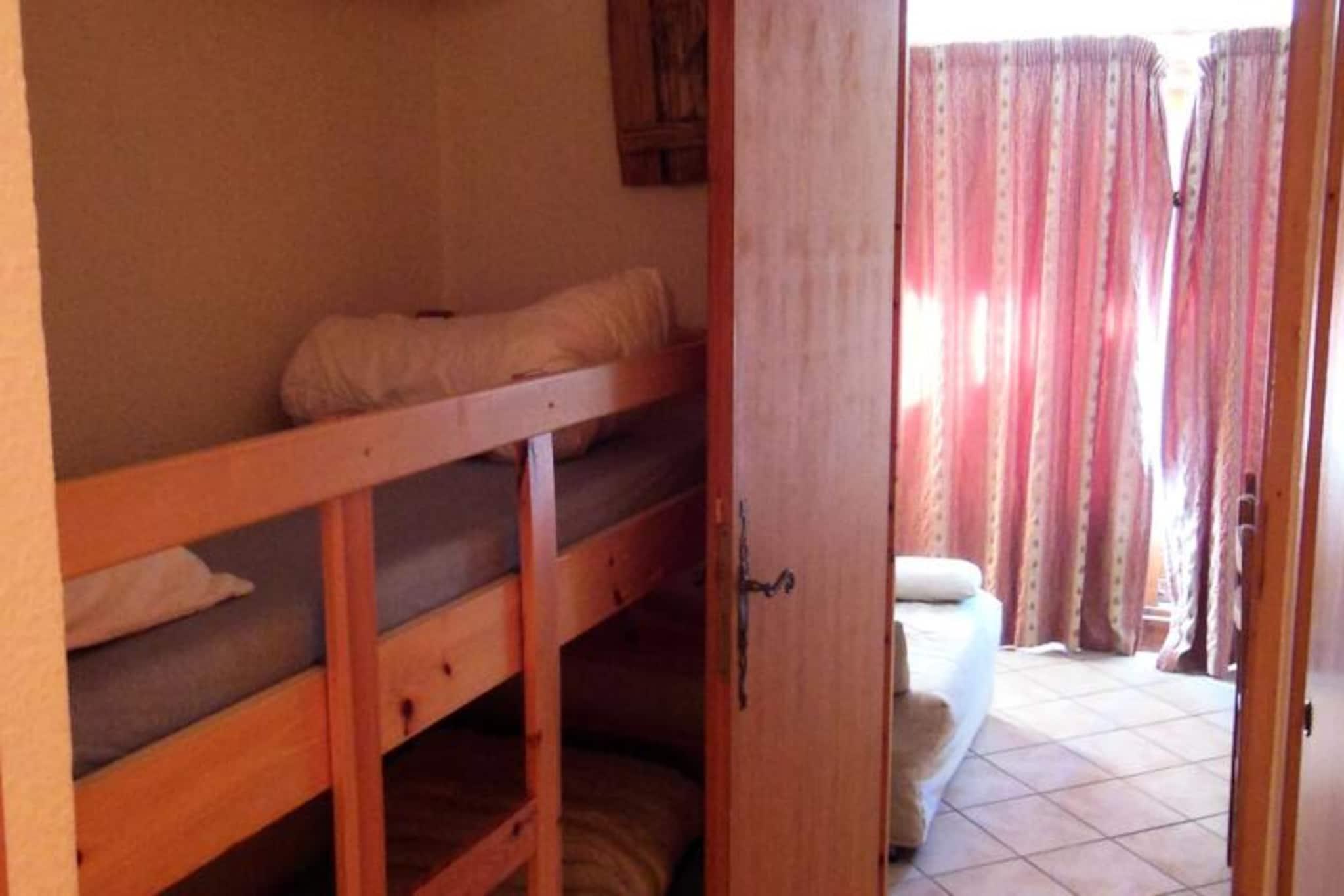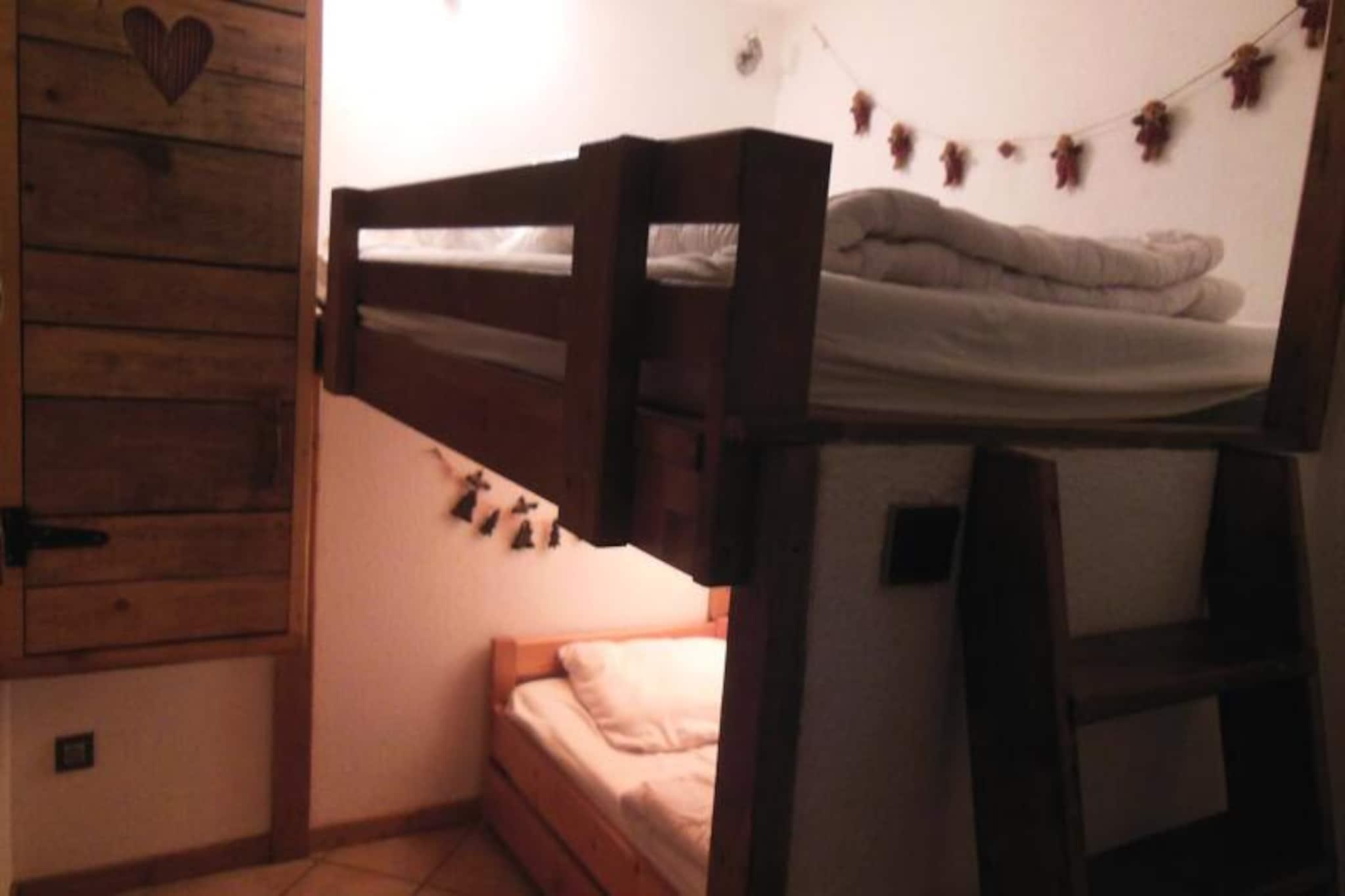 This charming 2-room apartment, located on the 3rd floor of a residence in the heart of the village, is perfect for up to 5 guests. It features a bedroom with a double bed and pull-out beds, as well as a mountain corner with bunk beds, ensuring comfortable sleeping arrangements for the whole family. The living area includes a sofa bed for 2 people and a dining space. The apartment offers a south-east-facing balcony with stunning views of the village square and surrounding mountains. Pets are welcome for an additional charge, and services such as Wi-Fi, baby equipment, and end-of-stay cleaning are available upon request. The property enjoys a prime location with direct access to the gondola and the French Ski School (ESF), making it ideal for ski enthusiasts. The residence is surrounded by shops, cafes, and restaurants, allowing guests to easily enjoy local cuisine or pick up essentials. Ski lockers are available for each apartment, offering convenience for winter sports gear. Guests can explore the vibrant village and take in the mountain views just outside the building, with hiking trails available in the summer months. The apartment is equipped with a kitchenette featuring a mini oven, microwave, dishwasher, hotplates, fridge, and coffee maker, making it easy to prepare meals. The bathroom includes a walk-in shower, and there is a separate toilet for added convenience. Additional amenities include a television for entertainment and heating throughout the apartment. Sheets and towels are available for an additional charge