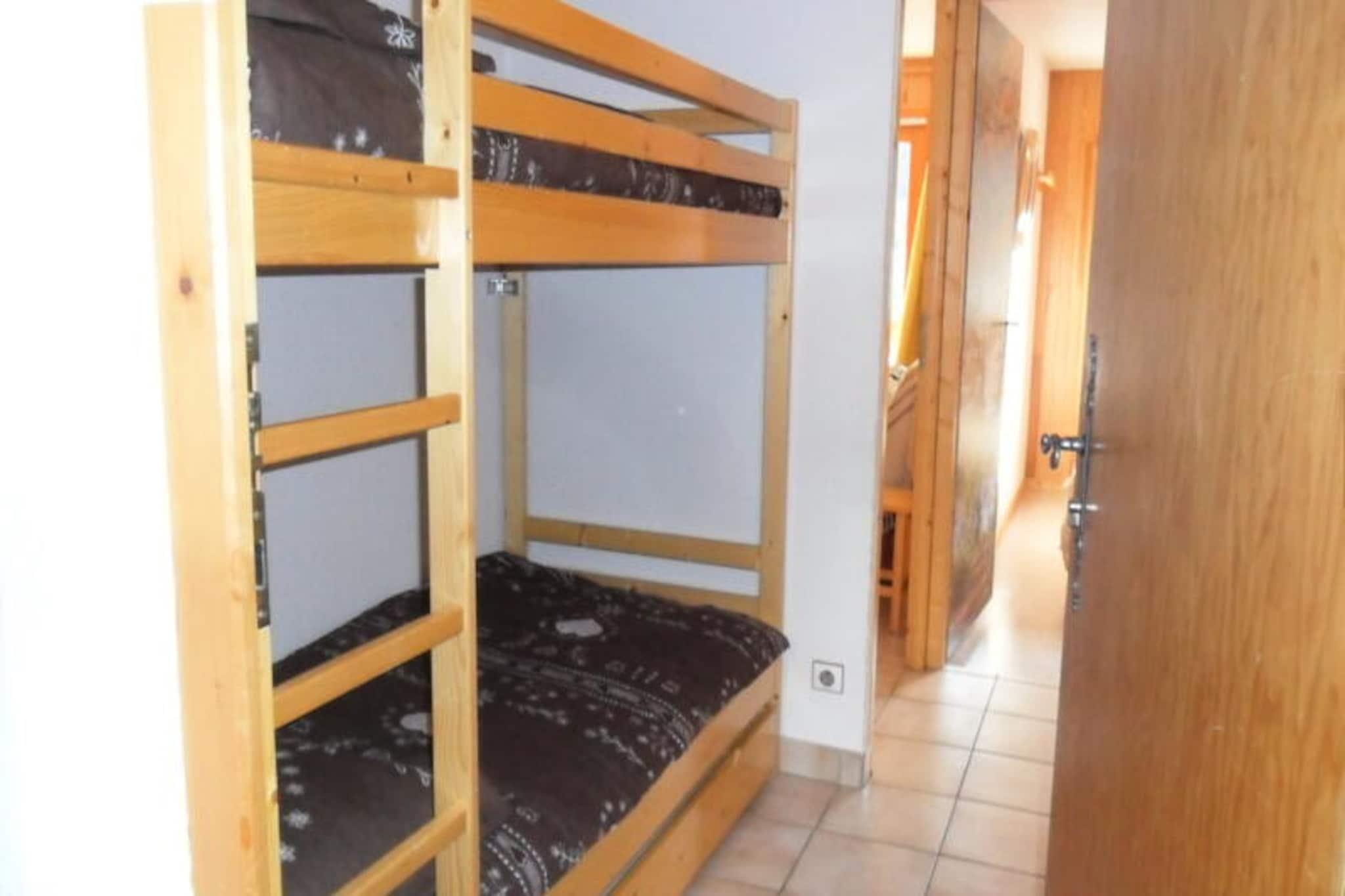 Denne hyggelige 2-værelses lejlighed, beliggende på 2. sal i en charmerende bolig, kan komfortabelt rumme op til 6 gæster. Lejligheden har et soveværelse med dobbeltseng og et soveværelse med to køjesenge, ideelt til familier eller grupper. Opholdsområdet omfatter en sovesofa til 2, der giver ekstra soveplads. Lejligheden er udstyret med væsentlige faciliteter, herunder et badeværelse med badekar, separate toiletter, en vaskemaskine og et tekøkken med elektrisk kogeplade, køleskab, ovn, mikroovn og opvaskemaskine. Der er også fjernsyn til underholdning. Alle lejligheder er kæledyrsfri og ikke-ryger. Boligen er ideelt placeret, kun 250 meter fra landsbyens centrum, hvor du vil finde forskellige butikker, restauranter og gondolliften for nem adgang til skiløb. ESF-skiskolen er også i nærheden, hvilket gør det til et perfekt sted for dem, der er interesserede i vintersport. Gæsterne kan nyde en betagende udsigt over de omkringliggende bjerge fra lejlighedens sydvendte balkon, ideel til at slappe af efter en dag på pisterne. For yderligere bekvemmelighed inkluderer lejligheden et skiskab i stueetagen. Tekøkkenet er fuldt udstyret til selvforplejning, så du kan tilberede dine egne måltider. Valgfri tjenester, såsom Wi-Fi, babyudstyr og slutrengøring, er tilgængelige mod et ekstra gebyr, hvilket gør dette til et komfortabelt og praktisk valg for dit ophold.