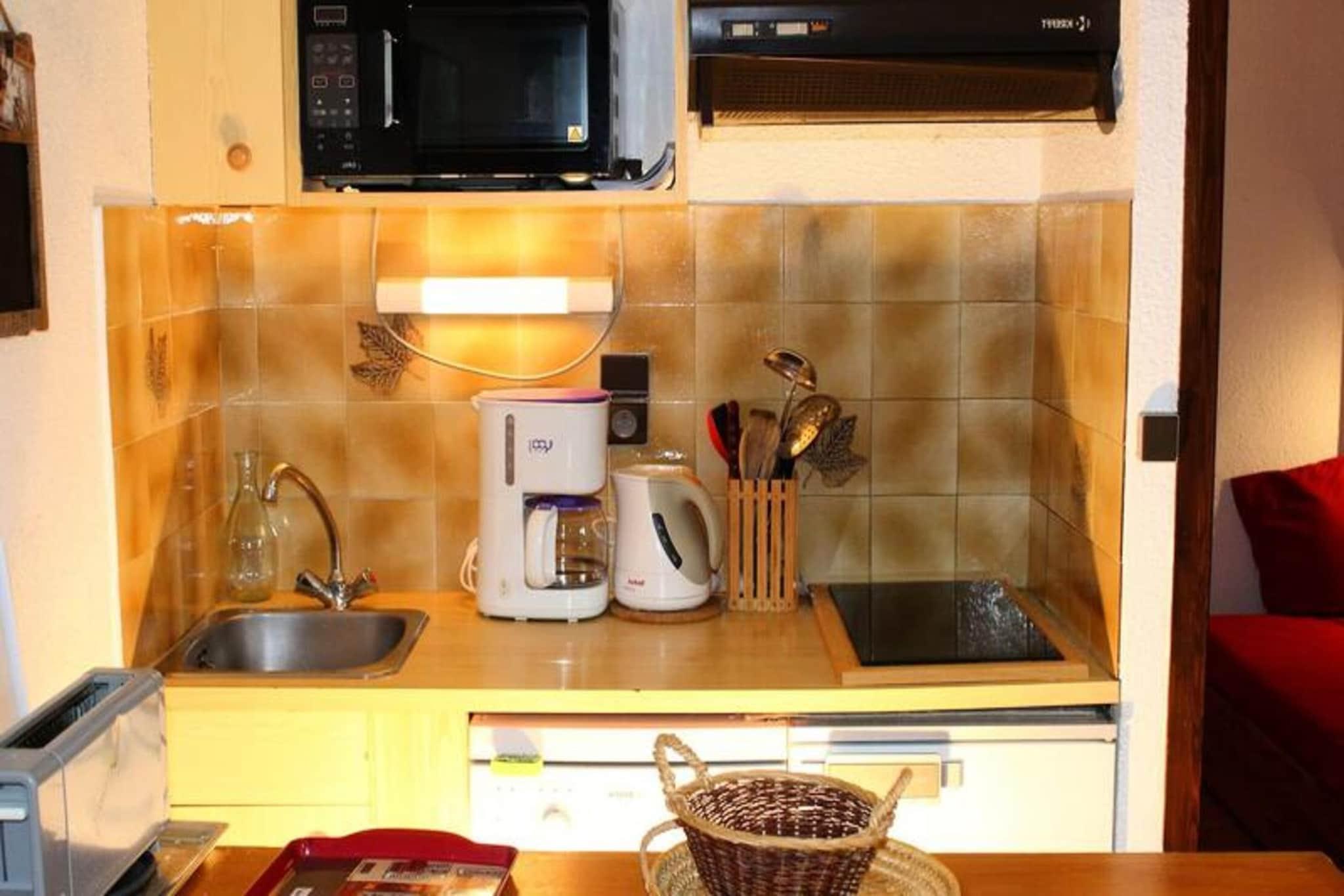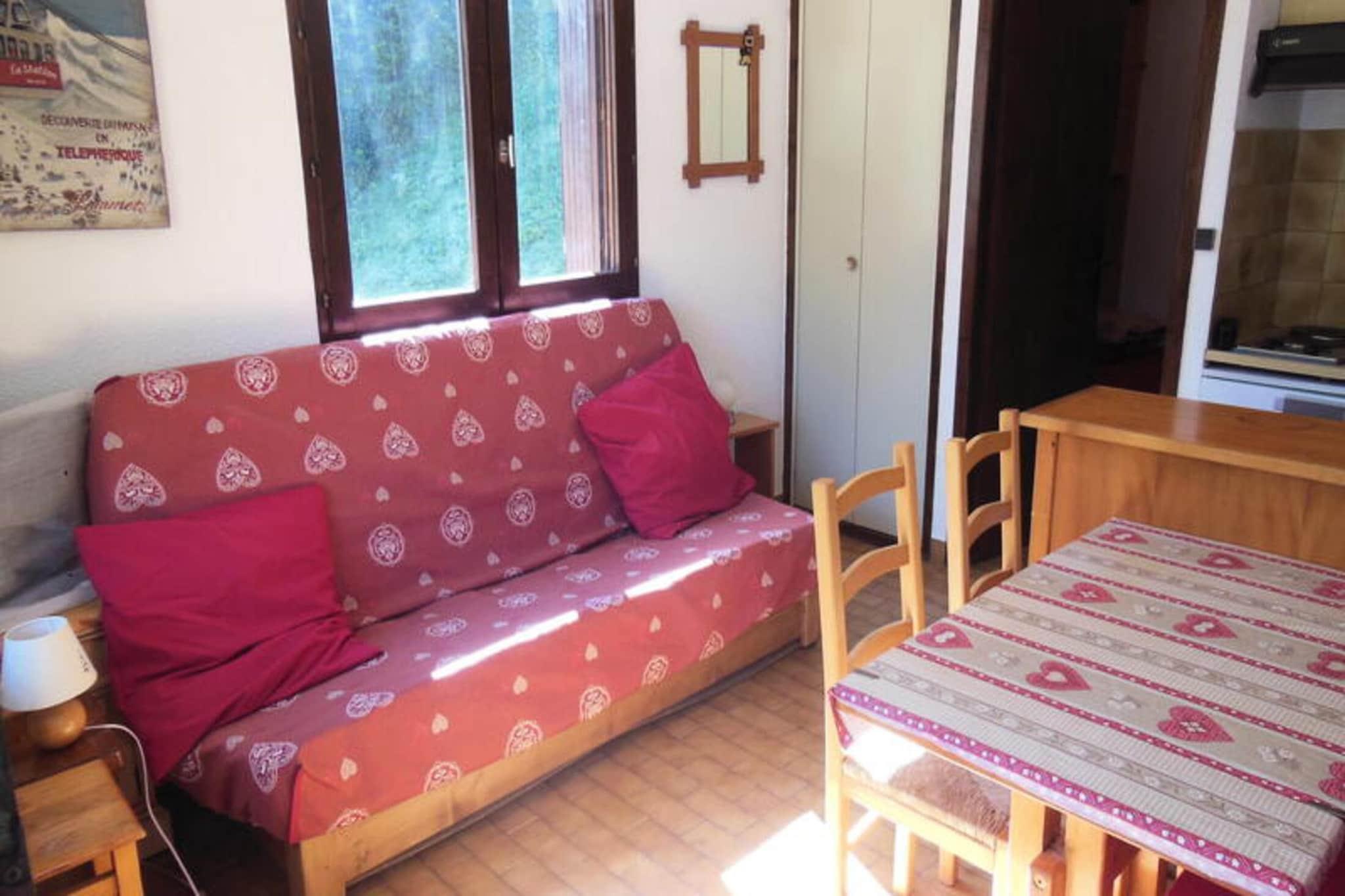 Denne hyggelige studiolejlighed er perfekt til 3 personer og tilbyder en sydøstvendt balkon med uhindret udsigt over landsbyen og de omkringliggende bjerge. Lejligheden indeholder en lav seng og en ekstra seng i SNCF-stil samt en sovesofa til 2 personer i opholdsområdet. Det er en ikke-ryger enhed, og kæledyr er ikke tilladt. Der kræves et depositum på EURO300 ved indtjekning. Lejligheden ligger ved foden af ??pisterne, kun 100 meter fra gondolafgangen og ESF, med butikker kun 150 meter væk. Den fantastiske udsigt over landsbyen og bjergene giver fredelige og naturskønne omgivelser, mens den bekvemme nærhed til skiløb og landsbyfaciliteter gør dette til en ideel base for at udforske området. Lejligheden har fuldt udstyret tekøkken med opvaskemaskine, ovn, elektrisk kogeplade og køleskab. Badeværelset har badekar og separat toilet. Yderligere tjenester tilgængelige mod et gebyr inkluderer Wi-Fi, babyudstyr og slutrengøring. Lagner, håndklæder og sengetøj kan lejes, hvilket sikrer et behageligt og bekvemt ophold.