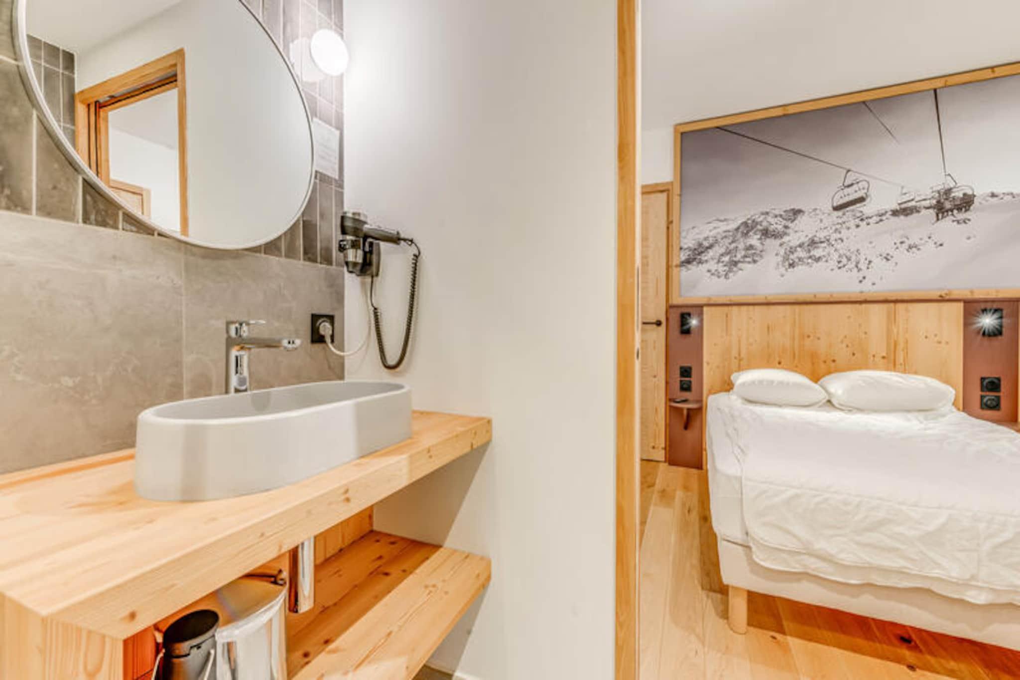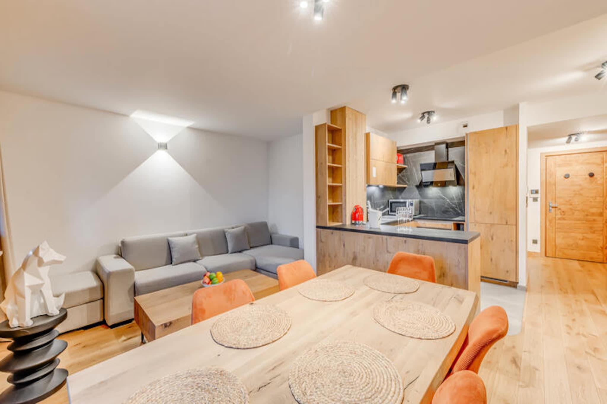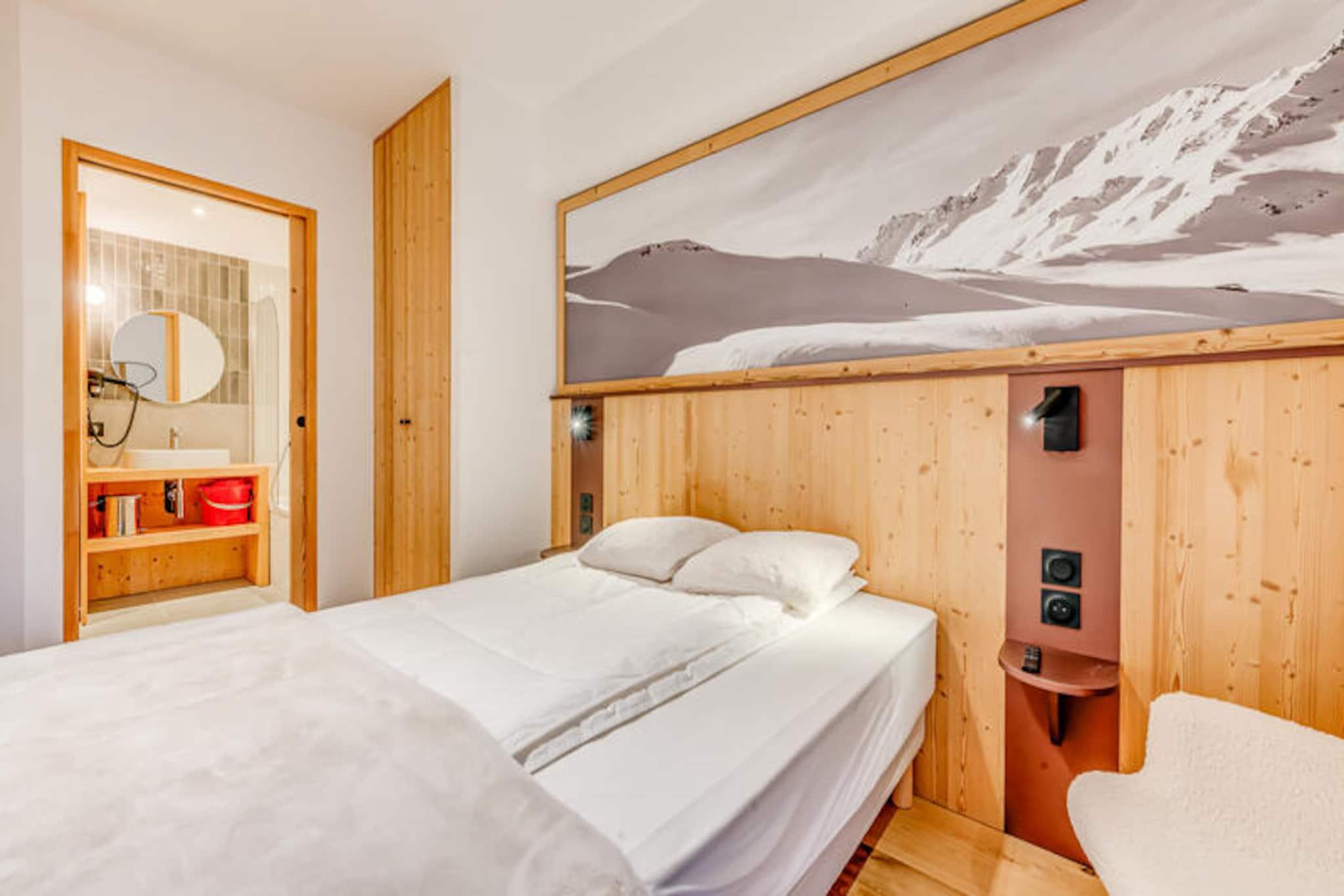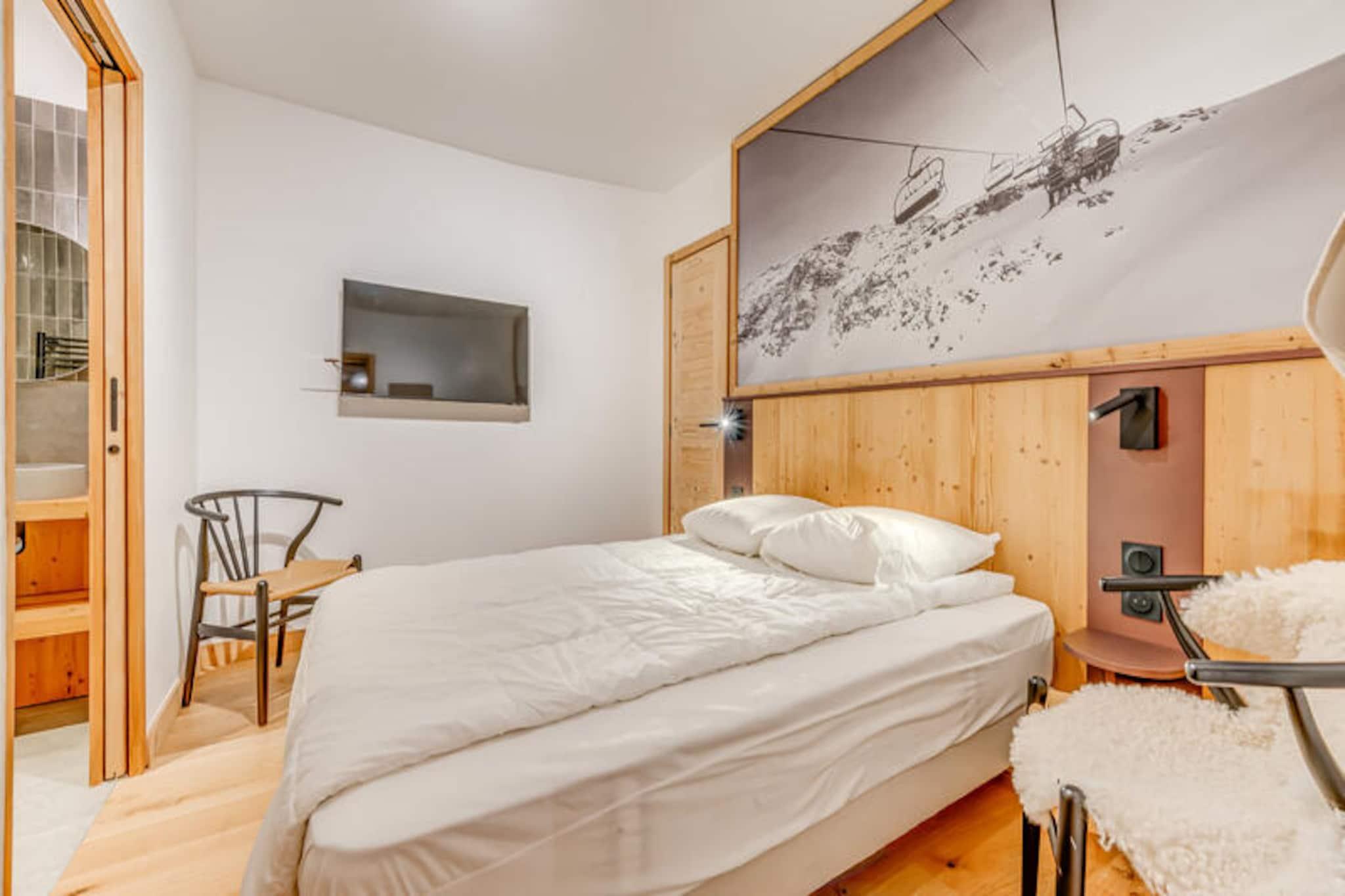 Denne luksuriøse 3-værelses lejlighed i en nyåbnet 4* bolig har plads til op til 6 gæster. Det har to soveværelser med dobbeltsenge, det ene med eget badeværelse og en vaskemaskine/tørretumbler, og det andet med eget brusebad. Den rummelige stue indeholder en dobbelt sovesofa, pilleovn og tv. Lejligheden er ikke-ryger, kæledyr er ikke tilladt, og sengetøj, håndklæder og slutrengøring er inkluderet. Der kræves et depositum på 1.500 EURO ved indtjekning. Beliggende i det fredelige Planay-distrikt i Champagny en Vanoise, er boligen perfekt til udendørs aktiviteter såsom skiløb, vandreture og mountainbiking. Lokale caféer, restauranter og butikker er i nærheden, og boligen tilbyder nem adgang til pisterne med et skiskab og skovarmer. Området kombinerer ro med nærhed til pulserende alpekultur. Lejligheden har et fuldt udstyret køkken med moderne apparater, en rummelig 9,5 m² terrasse, gulvvarme, WiFi og overdækket parkering med ladestationer til elbiler og cykler. Gæsterne vil nyde adgang til en ny indendørs pool og sauna, der åbner i december 2023, og tilbyder et ekstra niveau af komfort og afslapning.