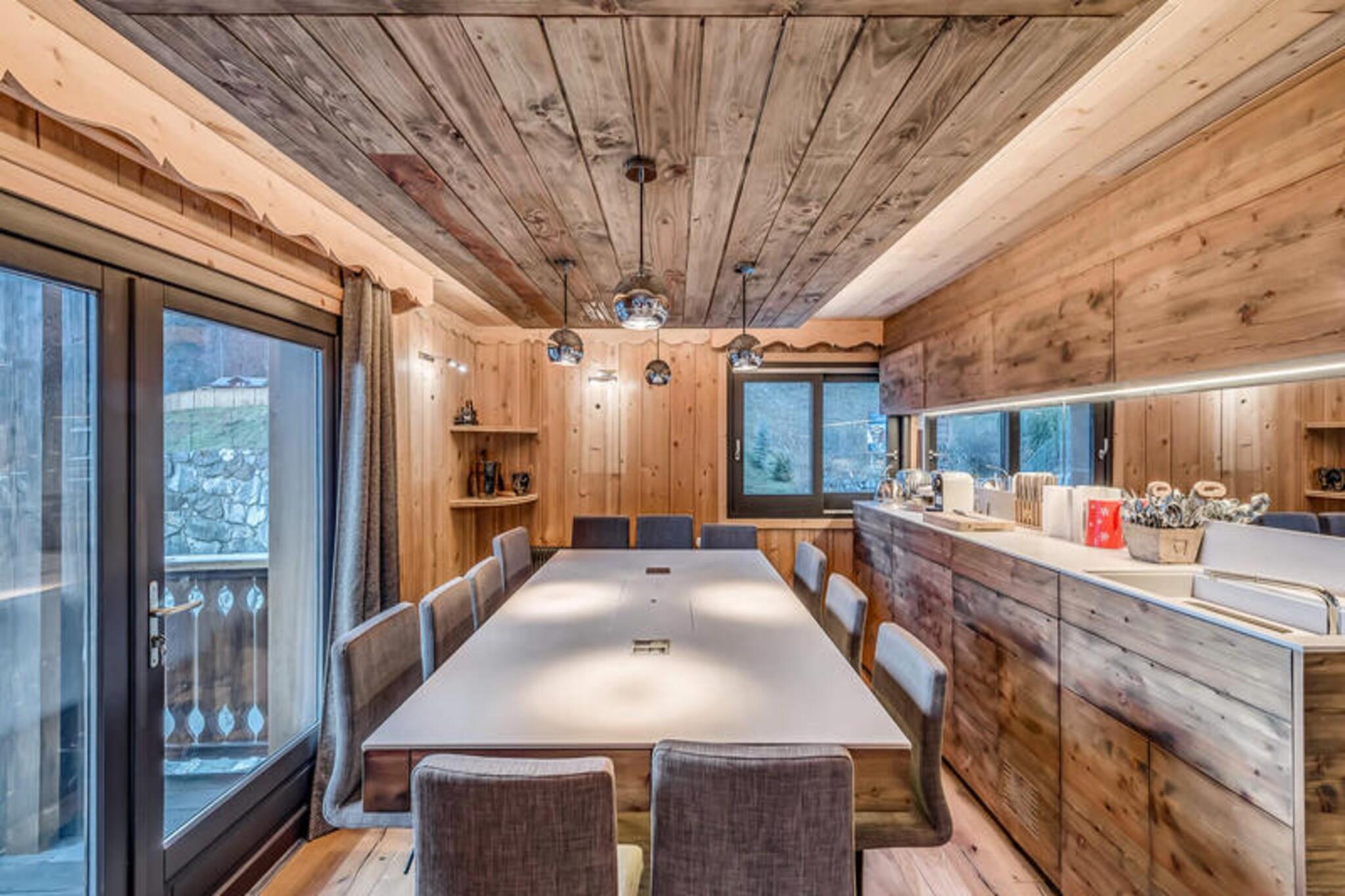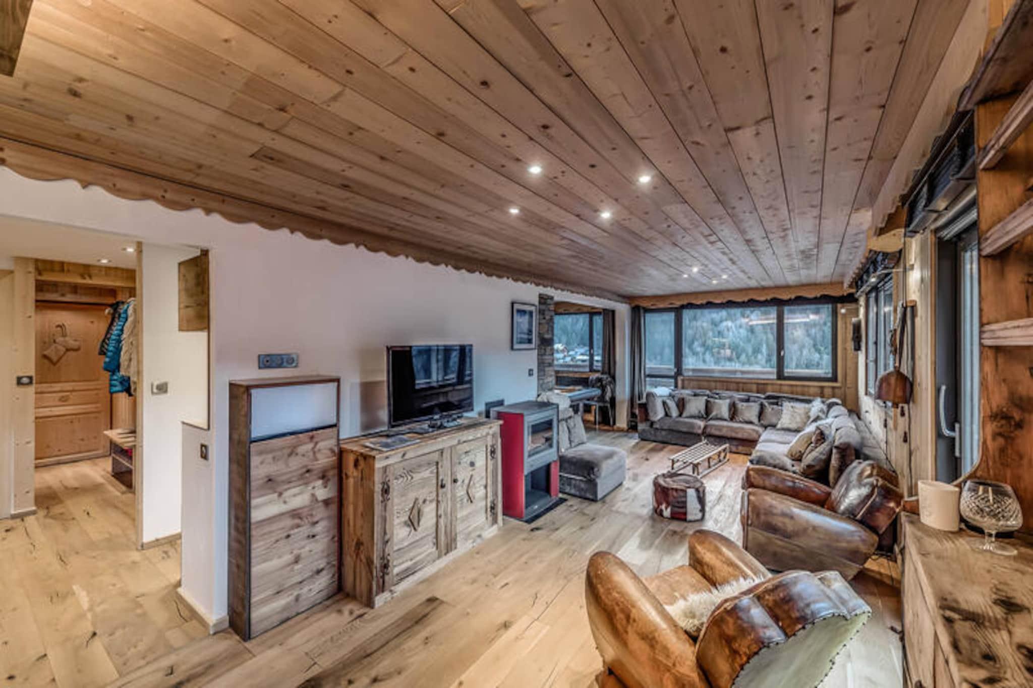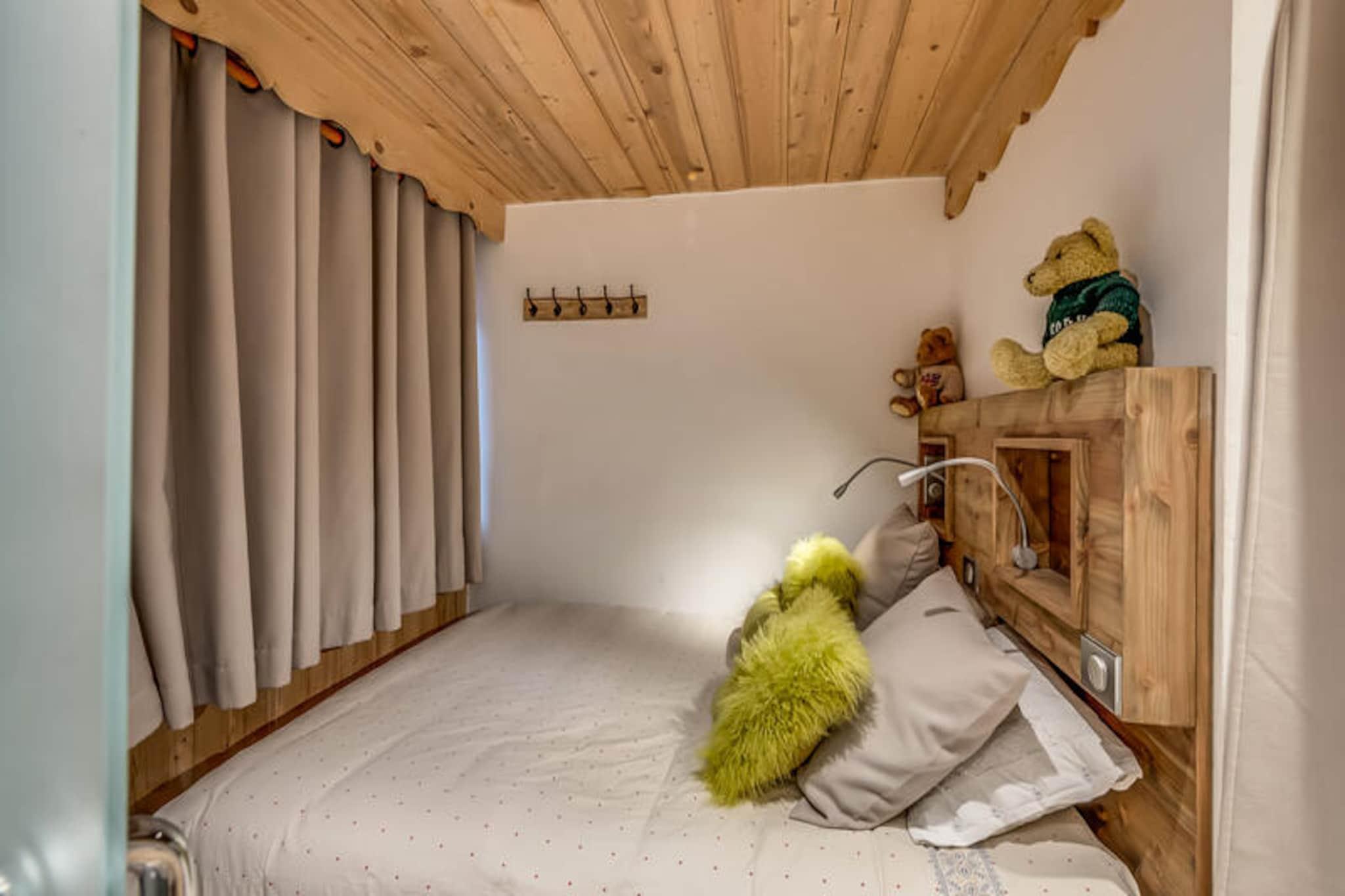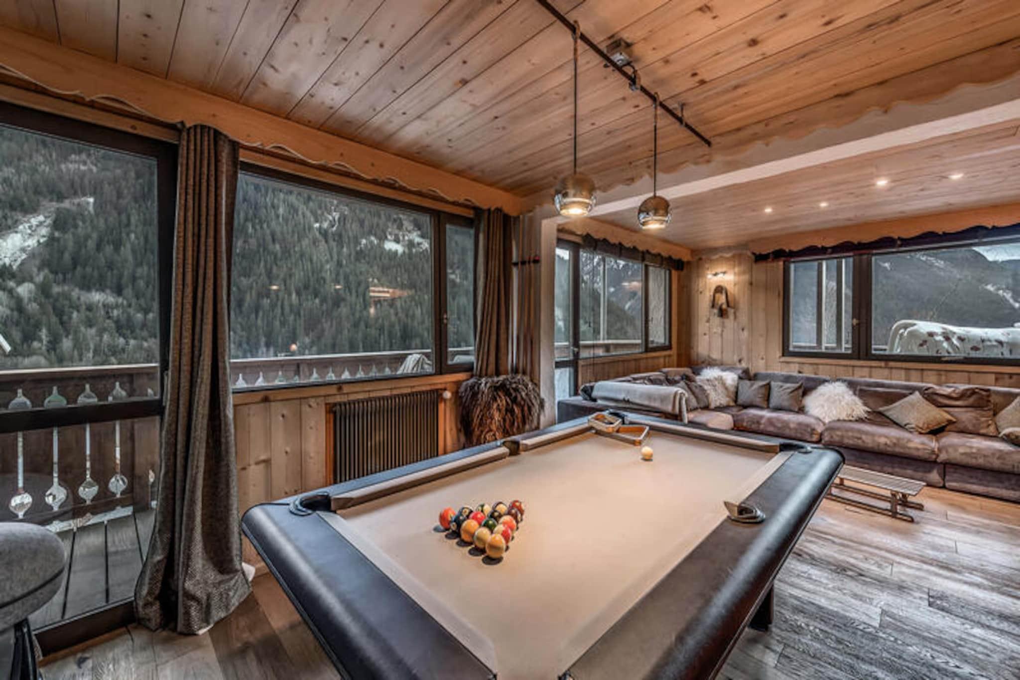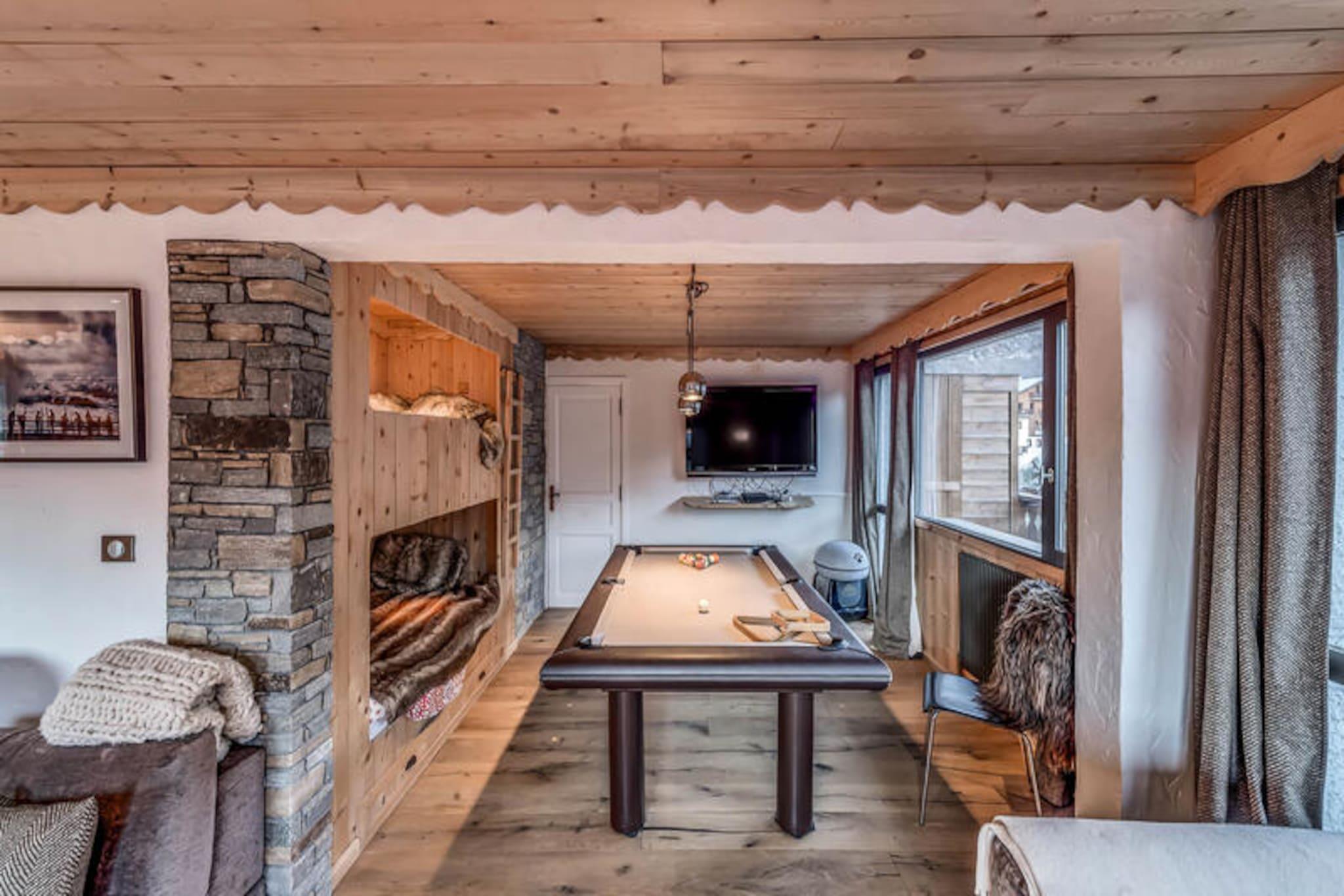 This modern 4-star apartment, part of a new residence, offers a luxurious stay for up to 12 people. The apartment features five spacious bedrooms, including a master suite with a double bed and en-suite bathroom. Other bedrooms are equipped with double beds and adjoining shower rooms. For added convenience, the apartment includes two TVs, a large corner sofa, a billiard table, and free Wi-Fi. Pets are not allowed, and smoking is prohibited on the premises. A pellet stove is provided, though pellets are not included, and covered parking spaces are available for guests. Located near the traditional Planay district in Champagny en Vanoise, this apartment is close to local shops and attractions. Guests can enjoy outdoor activities such as skiing and mountain biking, with ski lockers and a shoe dryer available. The residence is also near hiking trails and scenic views of the surrounding mountains. The town offers various dining options, cafes, and a supermarket, providing everything you need for a comfortable stay. The apartment is equipped with a fully modern kitchen featuring a central island, ideal for preparing meals. The living area opens to a sunny balcony with deckchairs, perfect for relaxing. Additional amenities include a washing machine, dryer, and ski storage. For those with electric bikes or cars, the residence provides charging facilities. The residence also includes an indoor pool and sauna, opening in December 2023, enhancing your stay with relaxing options.