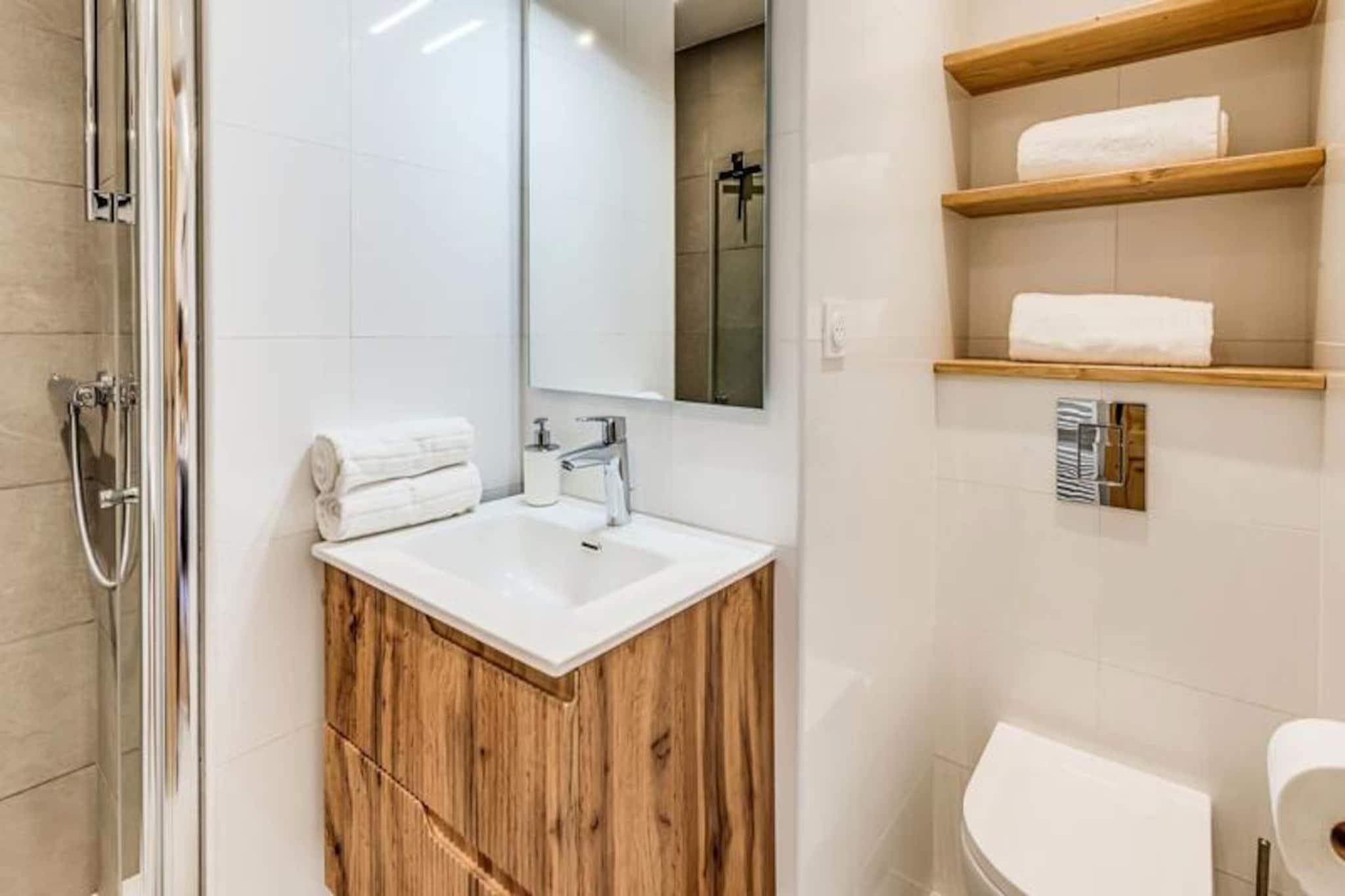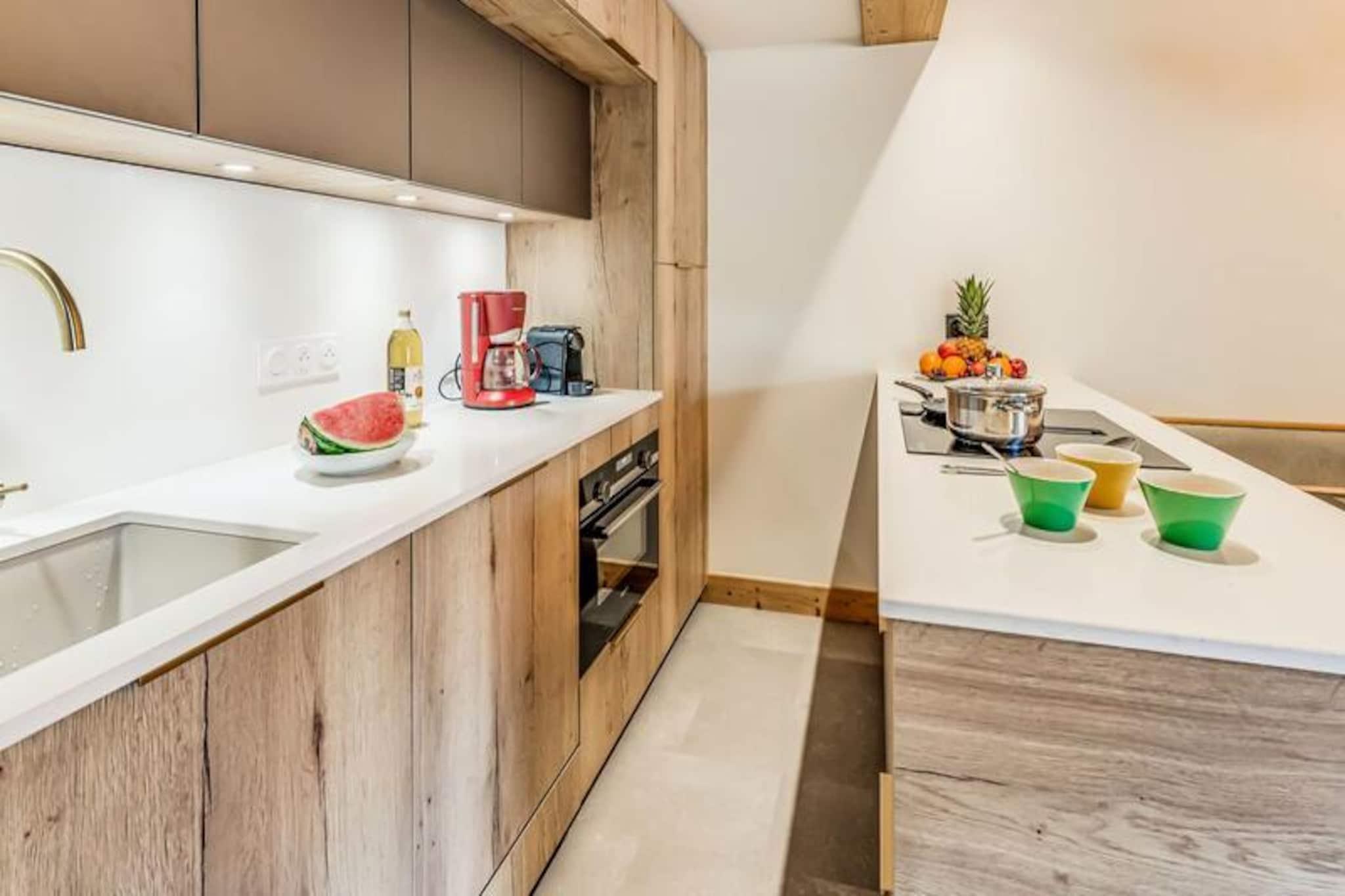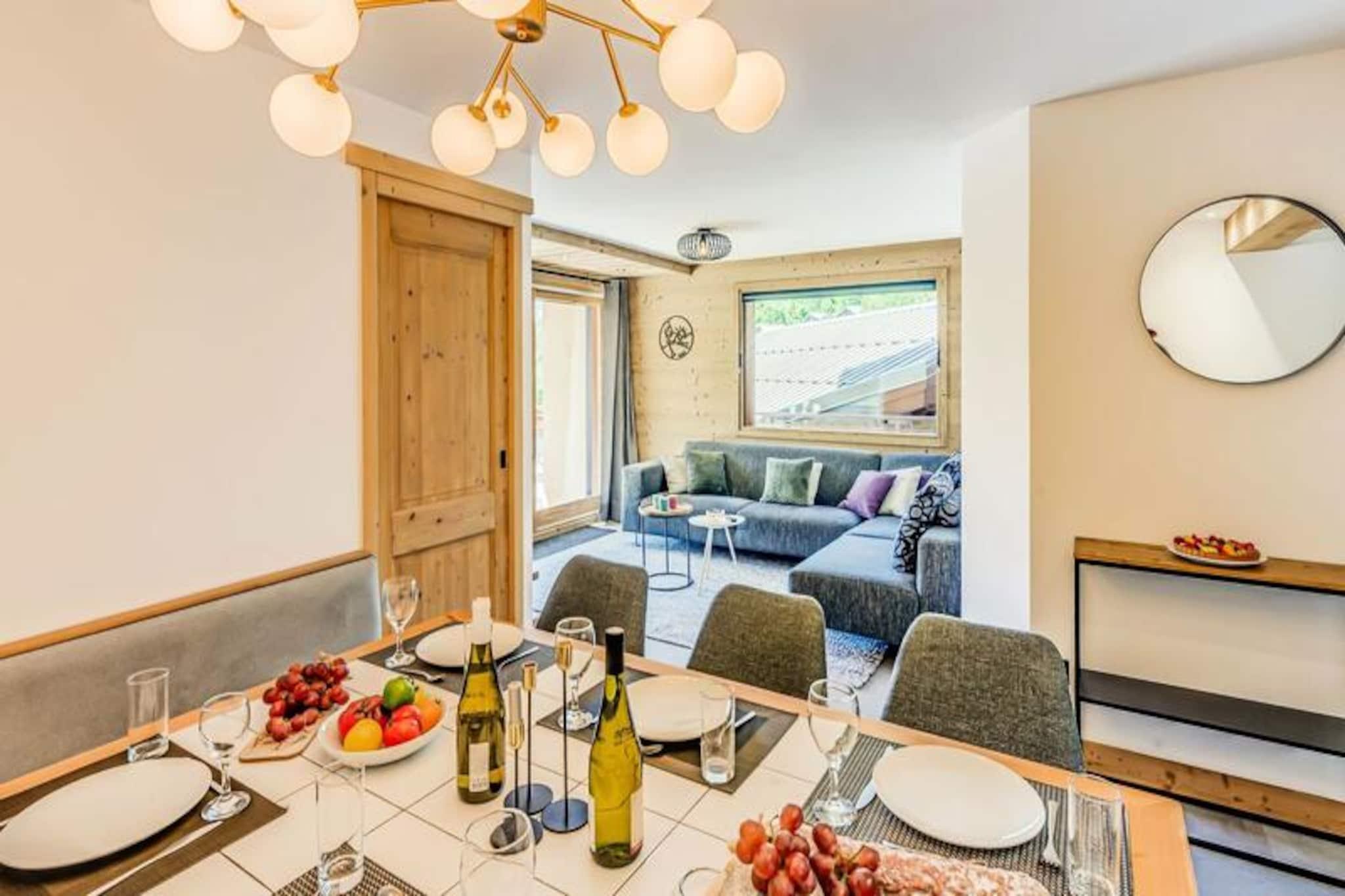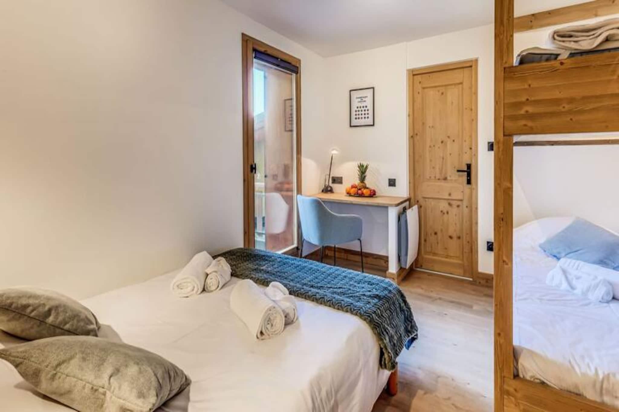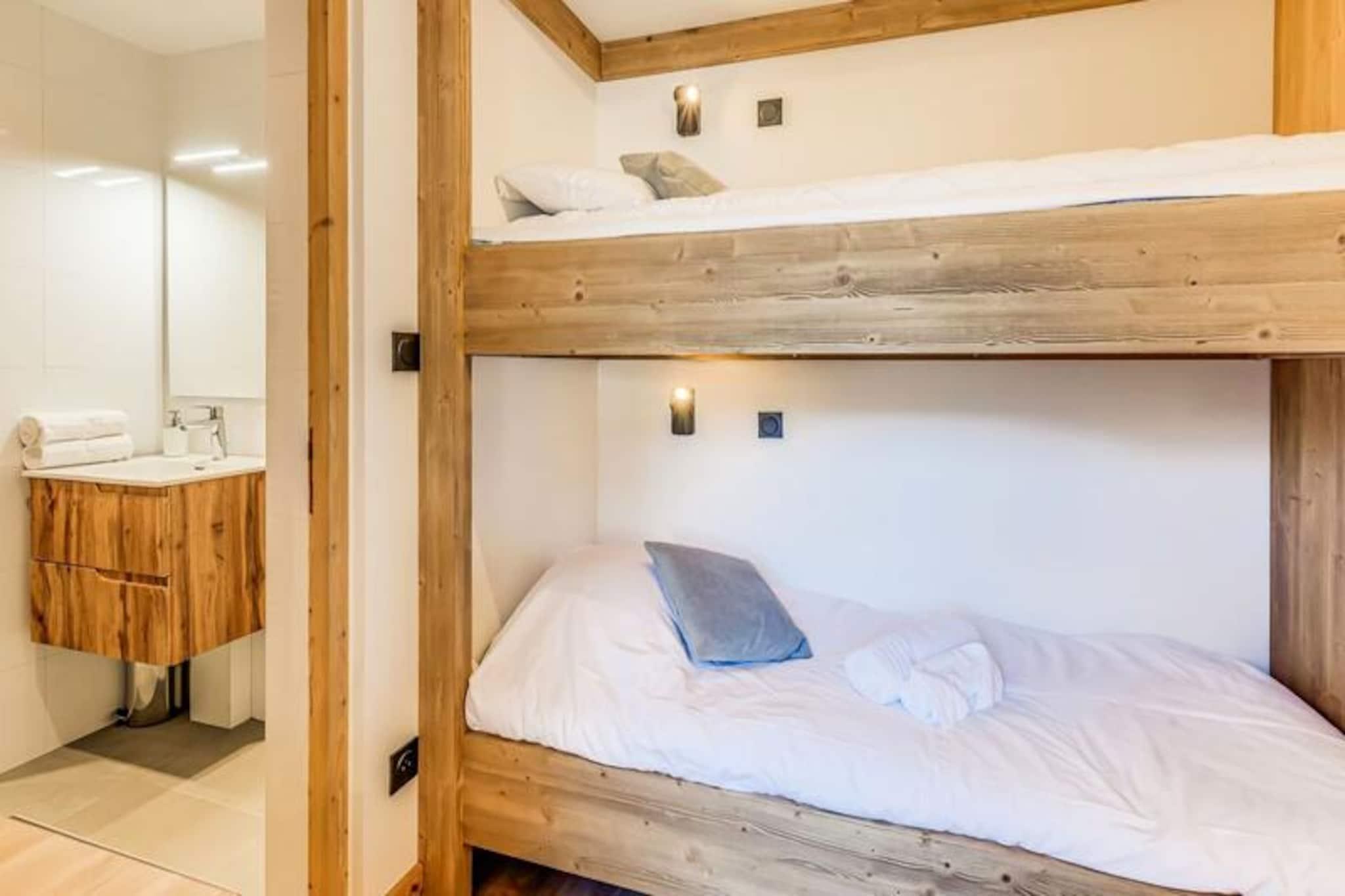 La TOUR du MERLE er en elegant, sydvendt bolig beliggende øverst i landsbyen Champagny-en-Vanoise. Beliggende i "Les Hauts du Crey", 150 meter fra landsbyens centrum, butikker og afgangsstedet for svævebanen, der forbinder den med skiområdet LA PLAGNE-PARADISKI, tilbyder den en pragtfuld og sjælden beliggenhed. Lejligheder med terrasser eller altaner tilbyder uhindret, solrig udsigt over bjergene. Den 9-etagers bolig har elevator og skibokse. La Tour du Merle 1 - 4-værelses lejlighed til 8 personer - 2. sal Denne 75 m² store lejlighed, renoveret i 2025, omfattede: - 1 entré med opbevaringsskab og skoomklædningsområde - Soveværelse 1: med 1 dobbeltseng, opbevaringsskab og vestvendt vindue - Soveværelse 2: med 1 dobbeltseng, opbevaringsskab og sydvendt vindue med udgang til en terrasse - Soveværelse 3: familiesuite med 1 dobbeltseng og 2 køjesenge, 1 brusebadeværelse med vaskeskab, bruser og toilet - Separat badeværelse med bruser, vaskeskab og toilet - Udstyret køkken med udgang til stuen med køleskab med frostboks, kogeplader, ovn, mikrobølgeovn, opvaskemaskine - Stue, opholdsstue, spiseplads med udgang til en sydvendt terrasse og et stort vestvendt vindue med sofa og tv - 1 sydvendt terrasse (80m²) med havemøbler HOTELTJENESTER INKLUDERET: - Vaskemaskine-tørretumbler - Wi-Fi - Sengelinned, håndklæder - Slutrengøring undtagen køkken Følgende tjenester er ikke inkluderet, men er tilgængelige mod et ekstra gebyr og efter reservation: - Barneseng: EURO20 - Barnestol: EURO20 - Kæledyr ikke tilladt - Ikke-ryger lejlighed - Depositum: EURO2.000 Depositum (i euro): EURO250 Opvarmning: EURO1