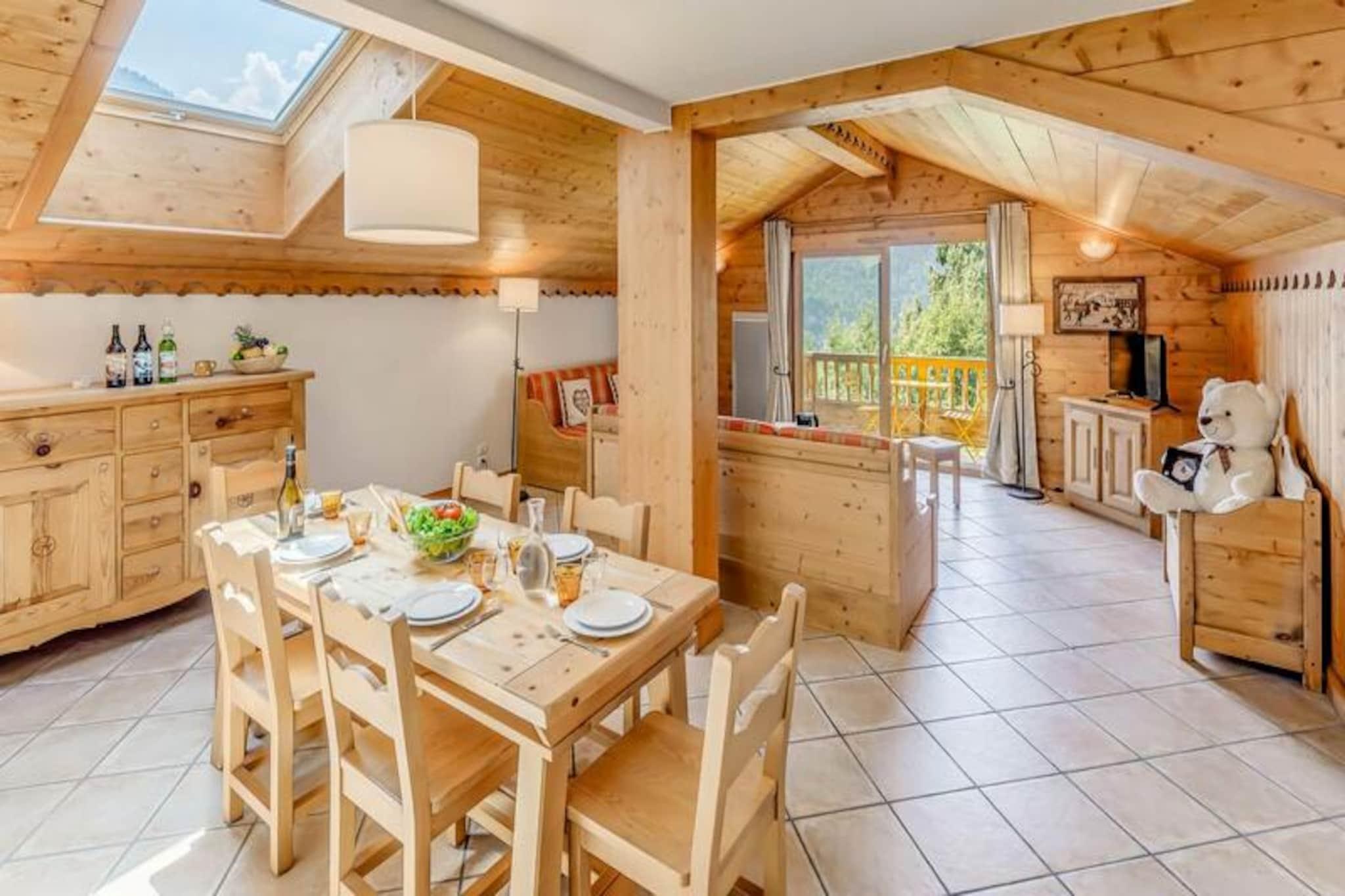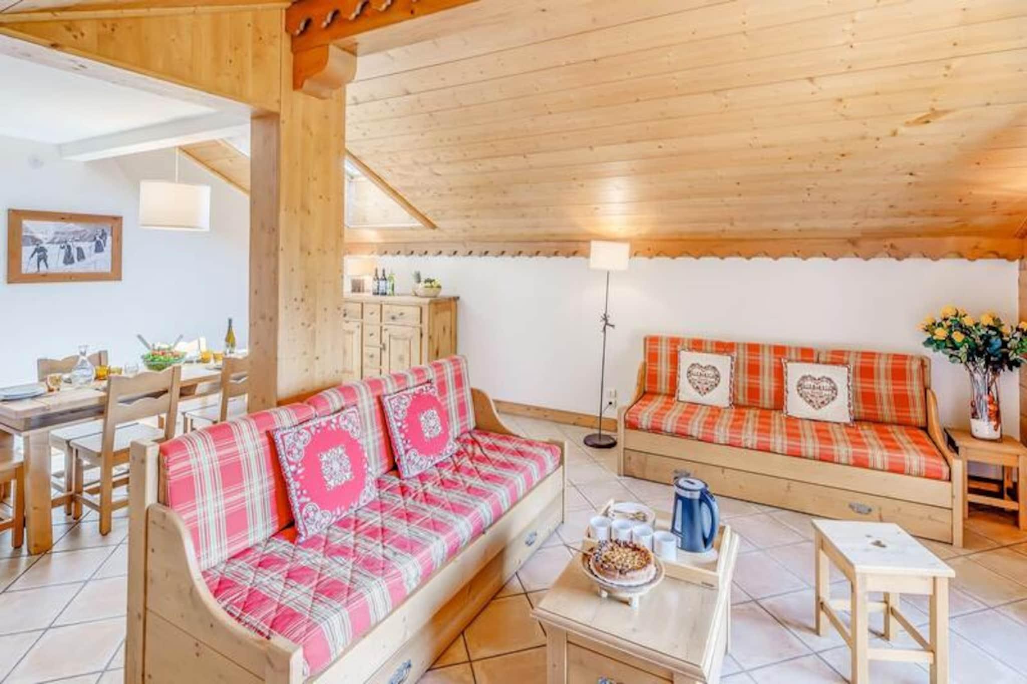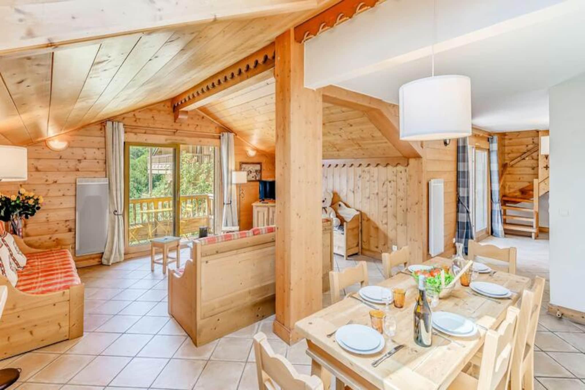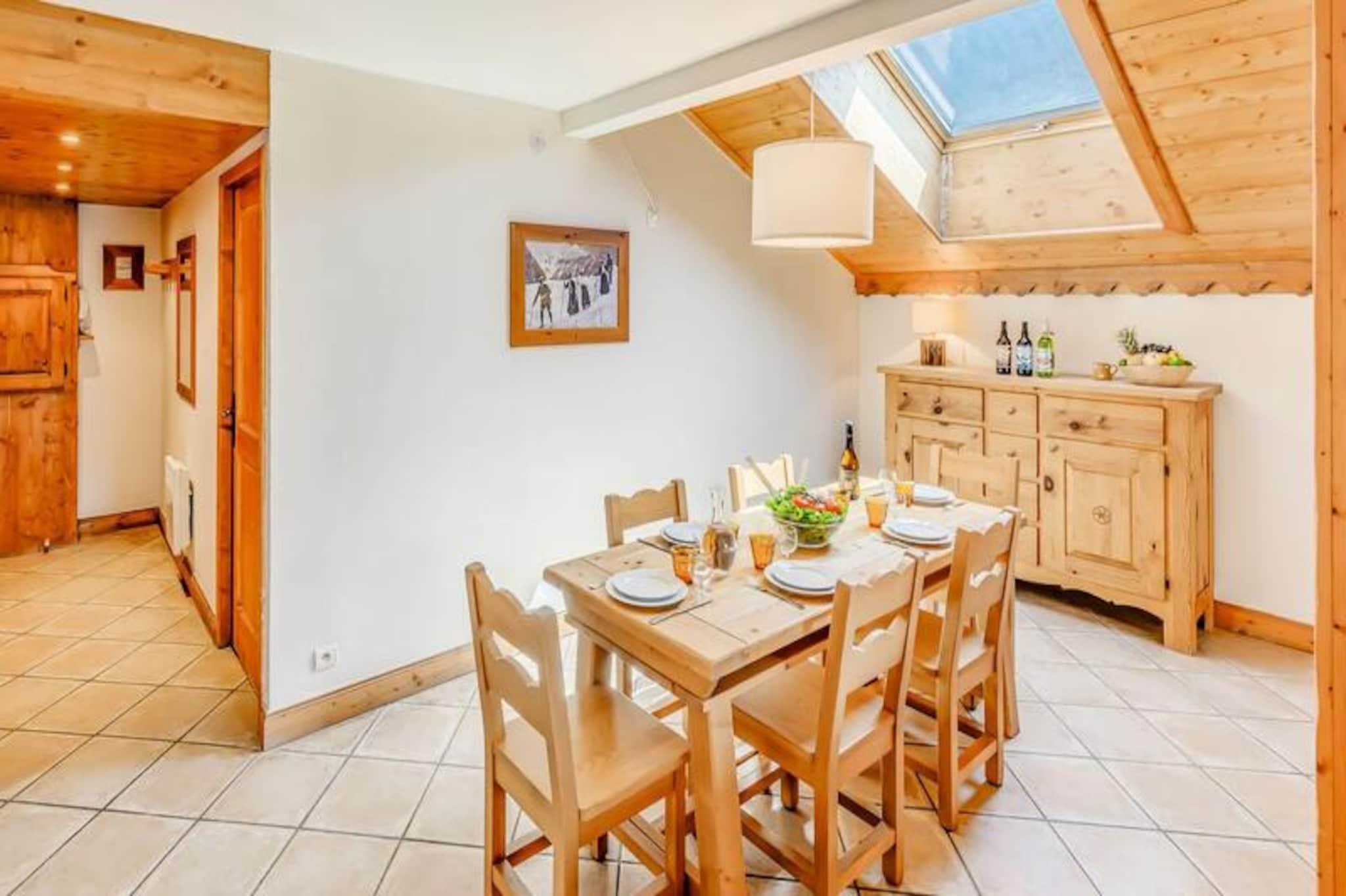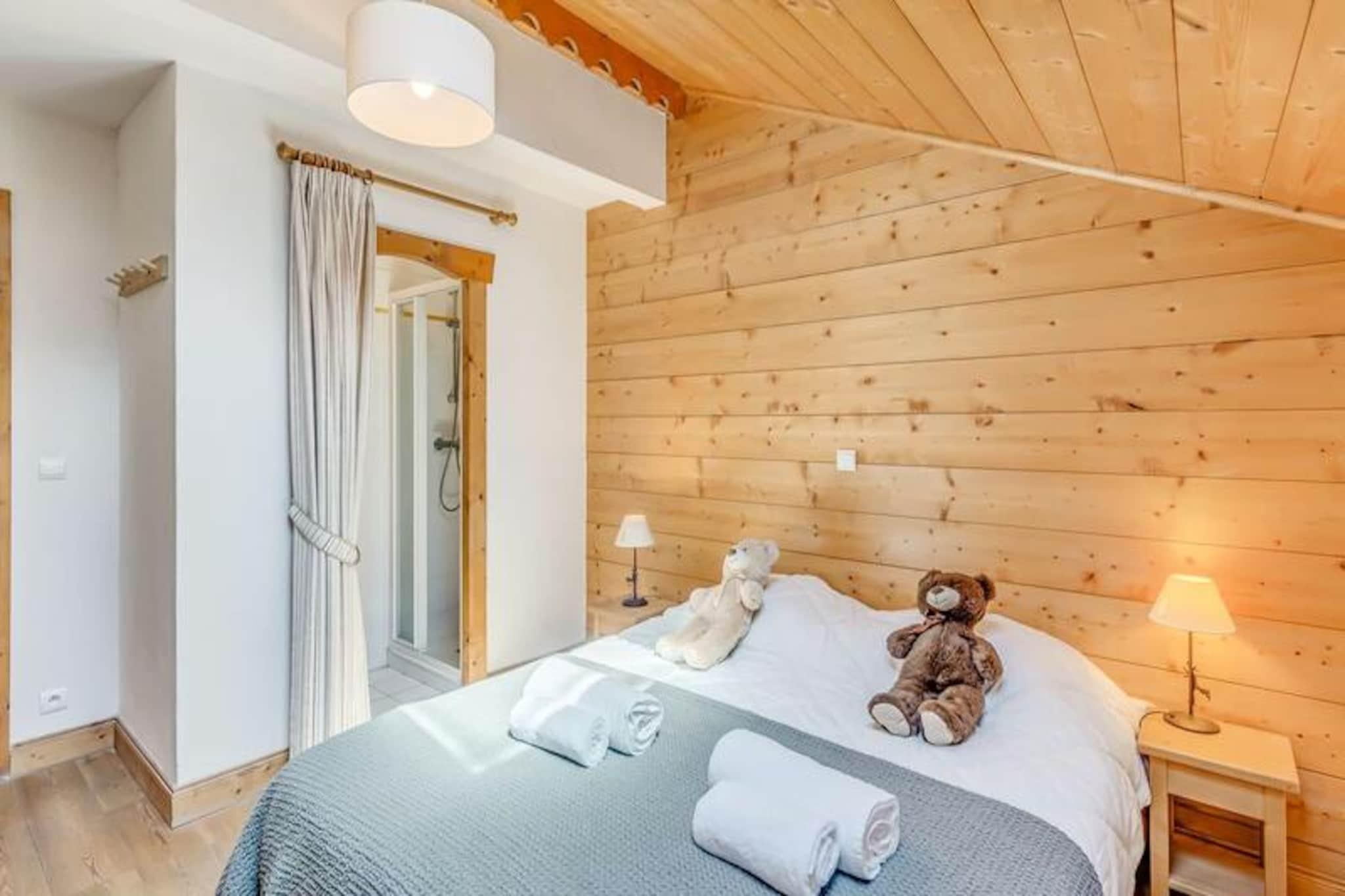 Ved indgangen til den charmerende landsby Champagny-en-Vanoise tilbyder denne førsteklasses alpine residens en harmonisk blanding af komfort og naturlig skønhed. Omgivet af de majestætiske tinder i Vanoise-massivet og Courchevel-skråningerne, tilbyder de sydvendte hytter i Les Alpages de Champagny en betagende udsigt og en rolig atmosfære til din bjergferie. Uanset om du er her for vintereventyr eller sommerro, sikrer denne residens et mindeværdigt ophold i hjertet af Alperne. Den rummelige 4-værelses duplexlejlighed har plads til op til otte gæster, hvilket gør den ideel til familier eller grupper. I stueetagen finder du en indbydende entré, en suite med dobbeltseng og eget brusebad samt et fuldt udstyret køkken, der åbner ud til en solrig terrasse. Stuen har en hyggelig opholdsstue med tv og to sofaer, der kan bruges som enkeltsenge, suppleret af ovenlysvinduer og en sydvestvendt balkon. Ovenpå fuldender to soveværelser med fleksible sengemuligheder og private balkoner samt et badeværelse planløsningen. Moderne faciliteter såsom Wi-Fi, privat garage og skibokse sikrer bekvemmelighed, mens det inkluderede sengelinned og slutrengøring tilføjer et strejf af luksus. Gæsterne kan nyde gratis adgang til stedets swimmingpool, fitnesscenter og spa med hammam og sauna (sæsonbestemt tilgængelighed). En gratis shuttle-service kører hvert ottende minut om vinteren og forbinder dig med feriestedets centrum, svævebane og skiskole. Udforsk nærliggende stier, forkæl dig selv med spabehandlinger, eller slap blot af på din balkon med panoramaudsigt. Les Alpages de Champagny er din port til uforglemmelige alpine oplevelser, der blander komfort, eventyr og afslapning på én enestående beliggenhed.