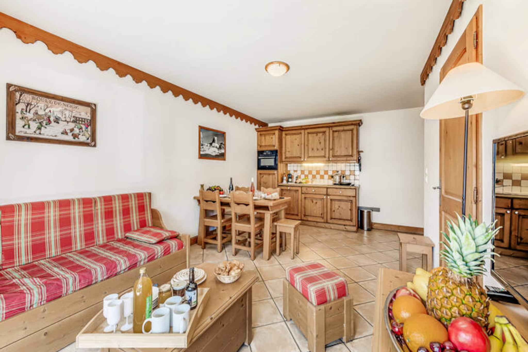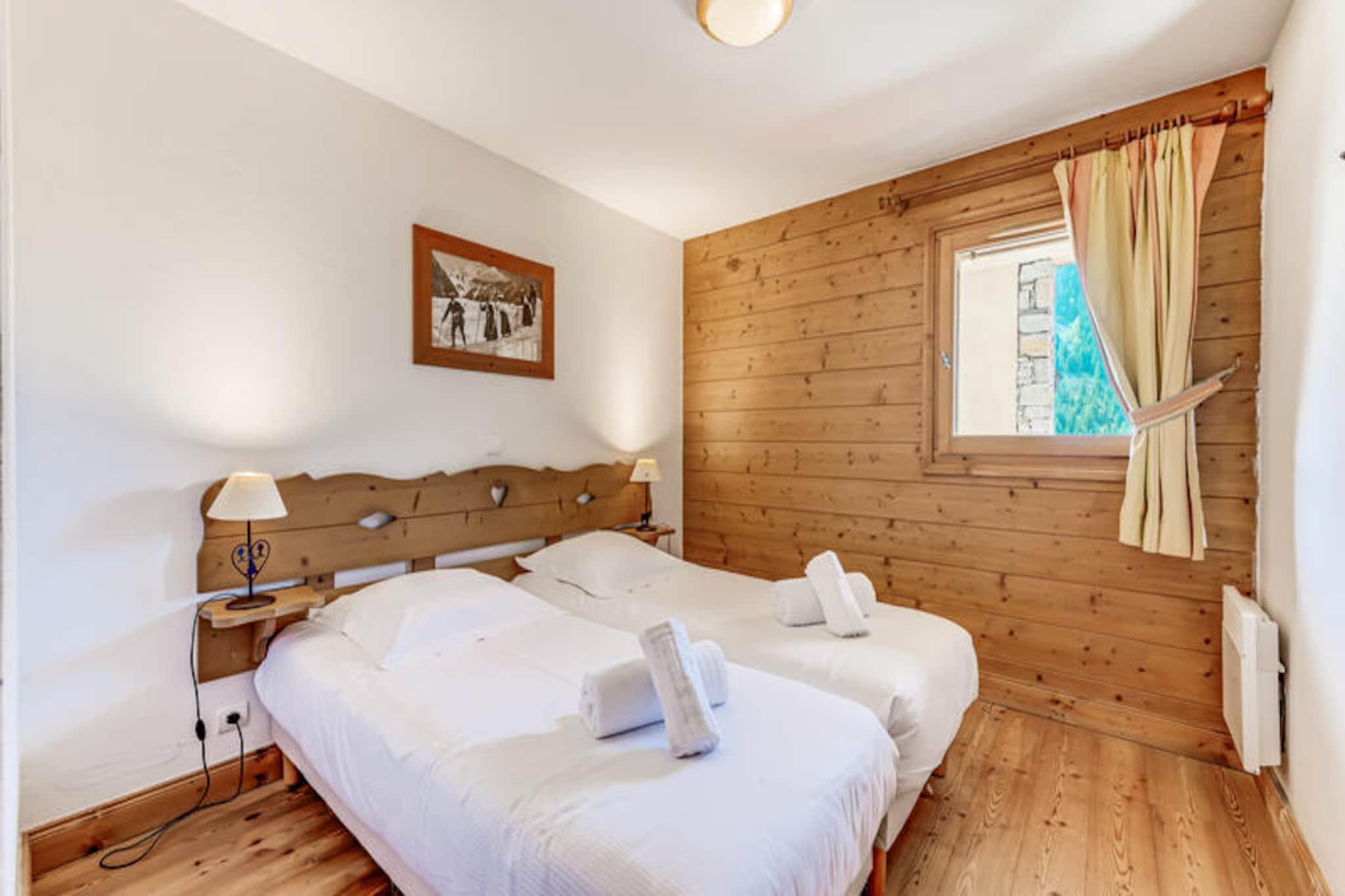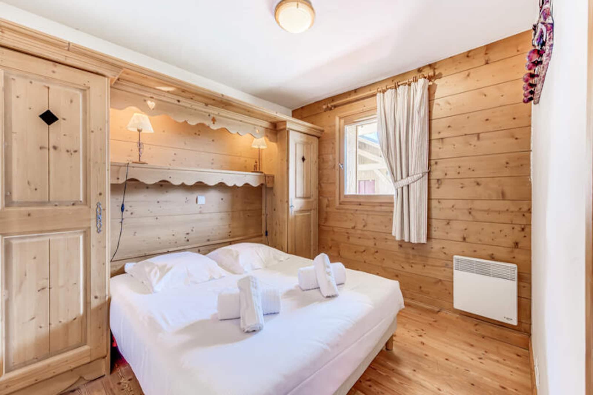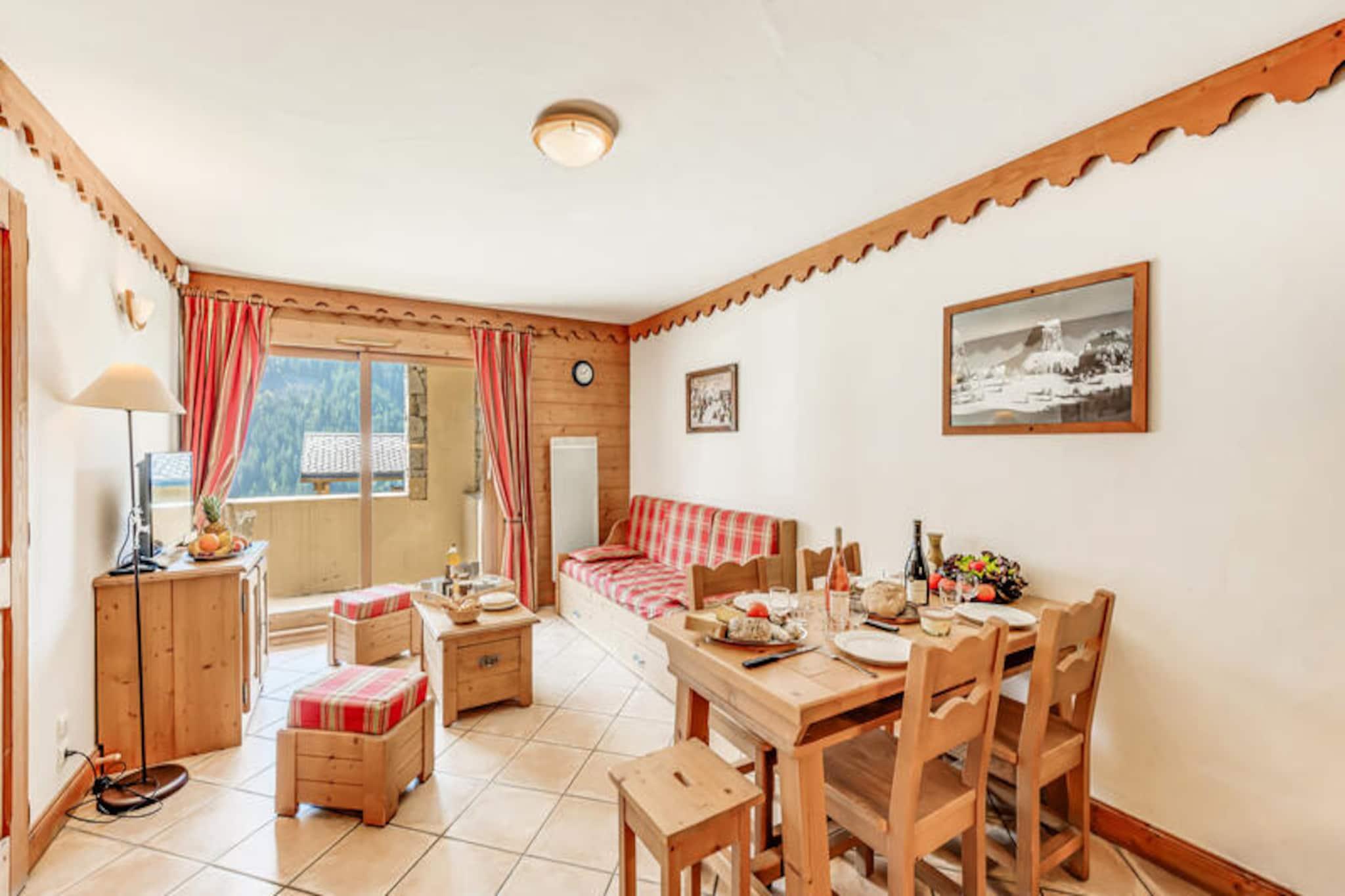 Ved indgangen til den charmerende landsby Champagny-en-Vanoise tilbyder Les Alpages de Champagny et roligt alpint tilflugtssted omgivet af betagende naturlig skønhed. Med sine seks rummelige hytter beliggende midt i det majestætiske Vanoise-massiv kan denne sydvendte ejendom prale af panoramaudsigt over Courchevels skråninger og den uberørte vildmark i de franske alper. Uanset om du søger eventyr eller ro, tilbyder denne bolig den perfekte blanding af komfort og bekvemmelighed til din bjergferie. \n\nHver lejlighed er omhyggeligt designet til at sikre et afslappende ophold. Den 58 m² store premium-lejlighed har plads til op til seks gæster og har to hyggelige soveværelser, et moderne badeværelse og et fuldt udstyret køkken, der åbner op til en indbydende opholds- og spisestue. Den sydvendte balkon inviterer dig til at nyde solskinnet og den fantastiske alpine udsigt. Yderligere faciliteter inkluderer Wi-Fi, en privat garage, et skiskab og opredte senge ved ankomst, hvilket sikrer en problemfri oplevelse. Gæsterne har også gratis adgang til residensens opvarmede swimmingpool, fitnesscenter og spa-faciliteter, herunder hammam og sauna, perfekt til afslapning efter en dag med udforskning.\n\nResidensens beliggenhed er ideel for skientusiaster, med en gratis shuttle-service, der kører hvert ottende minut om vinteren til svævebanen og ESF-skiskolen. Ud over skiløb tilbyder området et væld af aktiviteter, lige fra vandreture og sneskovandring til at opdage den kulturelle charme i landsbyen Champagny. Efter en dag med eventyr kan du forkæle dig selv med en massage i stedets salon eller blot slappe af i de rolige alpine omgivelser.\n\nLes Alpages de Champagny er mere end bare et sted at bo - det er en invitation til at fordybe dig i de franske alpers skønhed og ro og skabe uforglemmelige minder i hver sæson.
