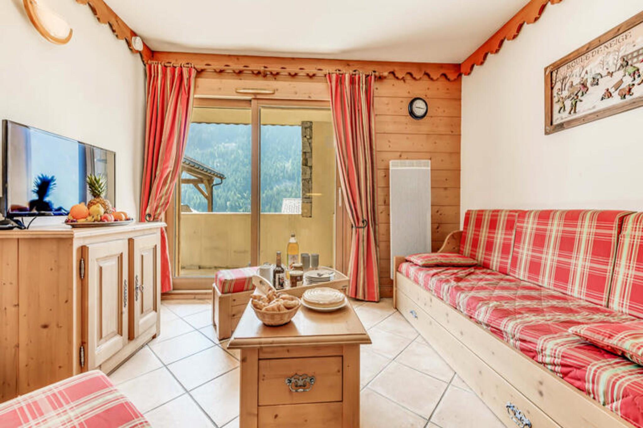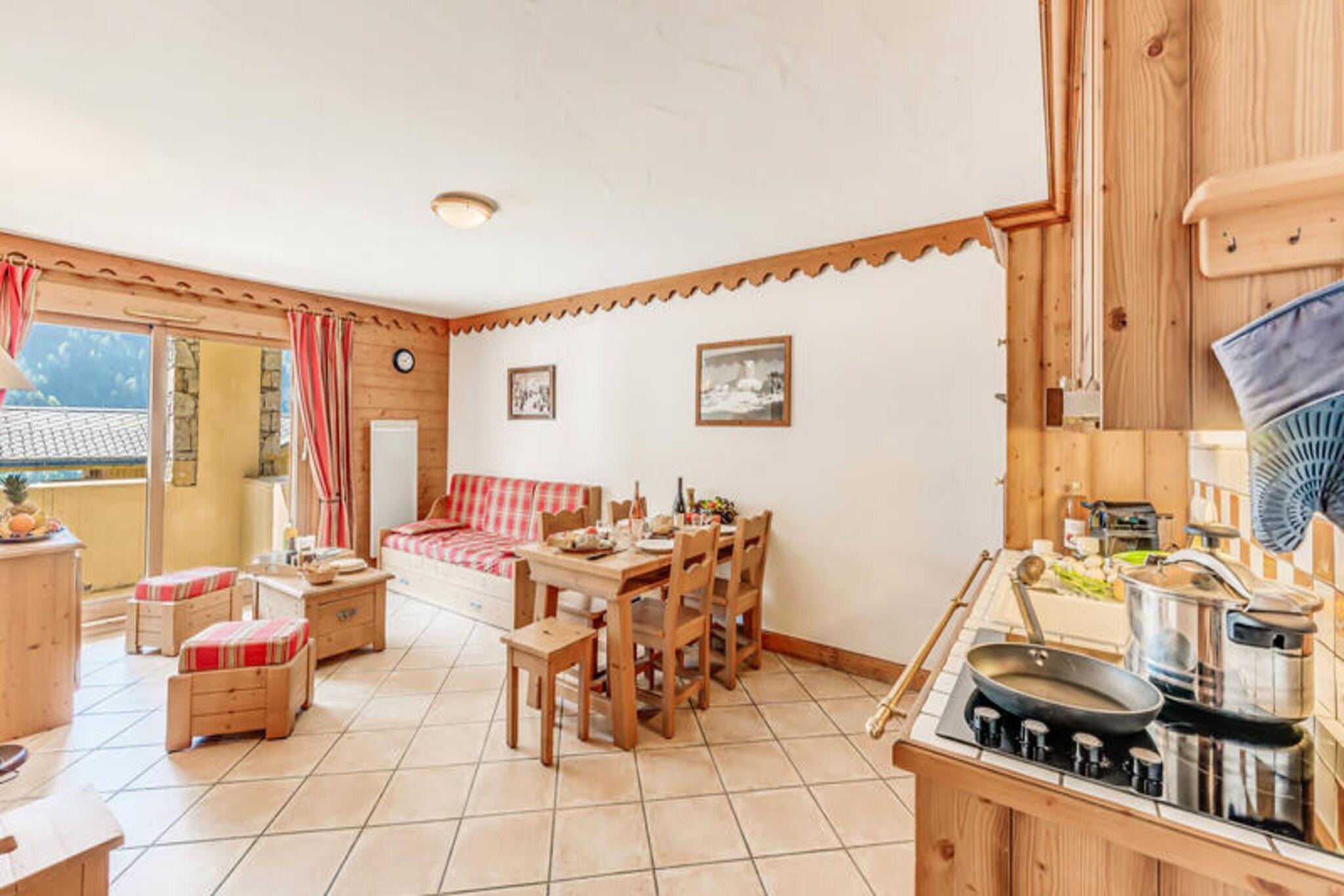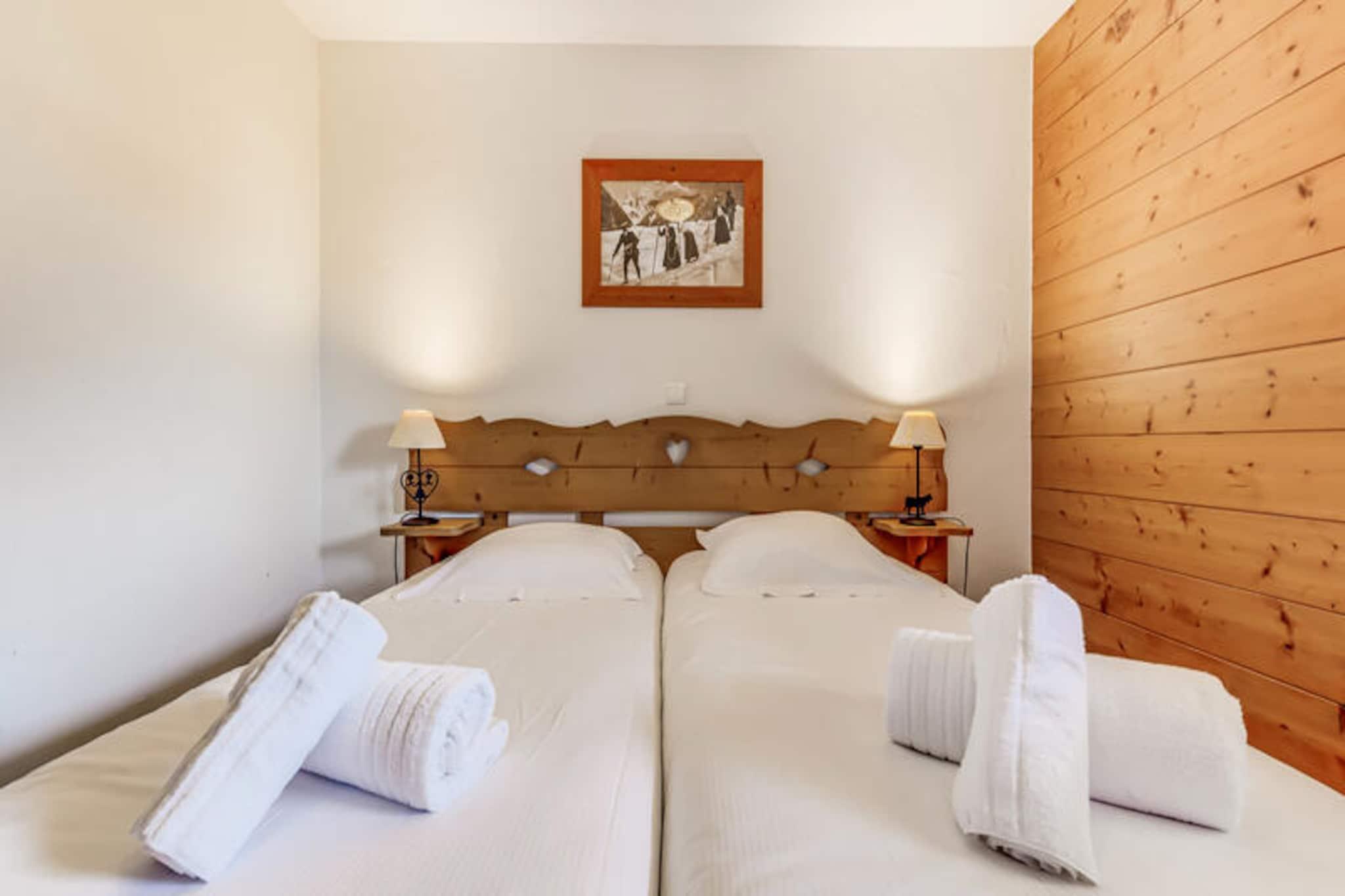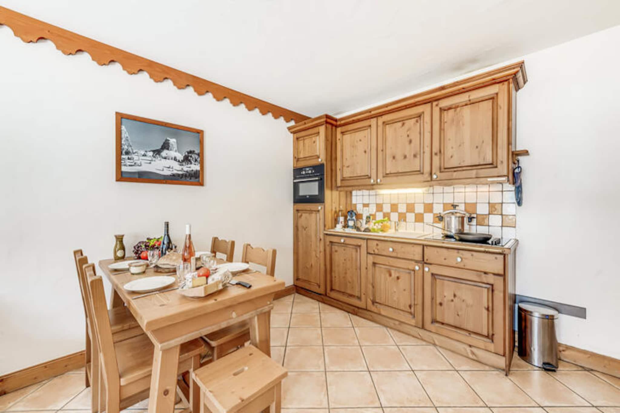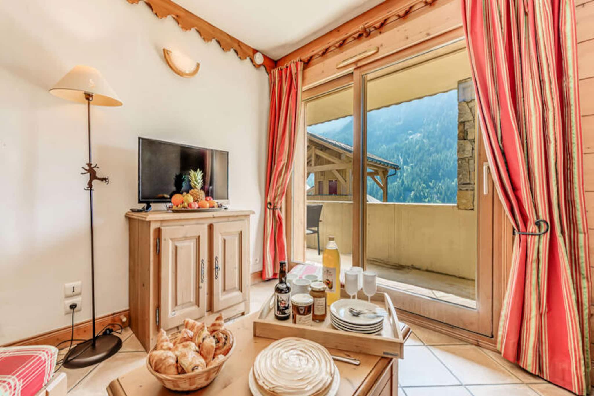 Ved indgangen til den charmerende landsby Champagny-en-Vanoise tilbyder Les Alpages de Champagny et roligt alpint tilflugtssted omgivet af betagende naturlig skønhed. Med sine seks rummelige hytter beliggende midt i det majestætiske Vanoise-massiv kan denne sydvendte ejendom prale af panoramaudsigt over Courchevels skråninger og den uberørte vildmark i de franske alper. Uanset om du søger eventyr eller ro, tilbyder denne bolig den perfekte blanding af komfort og bekvemmelighed til din bjergferie. \n\nHver lejlighed er omhyggeligt designet til at sikre et afslappende ophold. Den 58 m² store premium-lejlighed har plads til op til seks gæster og har to hyggelige soveværelser, et moderne badeværelse og et fuldt udstyret køkken, der åbner op til en indbydende opholds- og spisestue. Den sydvendte balkon inviterer dig til at nyde solskinnet og den fantastiske alpine udsigt. Yderligere faciliteter inkluderer Wi-Fi, en privat garage, et skiskab og opredte senge ved ankomst, hvilket sikrer en problemfri oplevelse. Gæsterne har også gratis adgang til residensens opvarmede swimmingpool, fitnesscenter og spa-faciliteter, herunder hammam og sauna, perfekt til afslapning efter en dag med udforskning.\n\nResidensens beliggenhed er ideel for skientusiaster, med en gratis shuttle-service, der kører hvert ottende minut om vinteren til svævebanen og ESF-skiskolen. Ud over skiløb tilbyder området et væld af aktiviteter, lige fra vandreture og sneskovandring til at opdage den kulturelle charme i landsbyen Champagny. Efter en dag med eventyr kan du forkæle dig selv med en massage i stedets salon eller blot slappe af i de rolige alpine omgivelser.\n\nLes Alpages de Champagny er mere end bare et sted at bo - det er en invitation til at fordybe dig i de franske alpers skønhed og ro og skabe uforglemmelige minder i hver sæson.