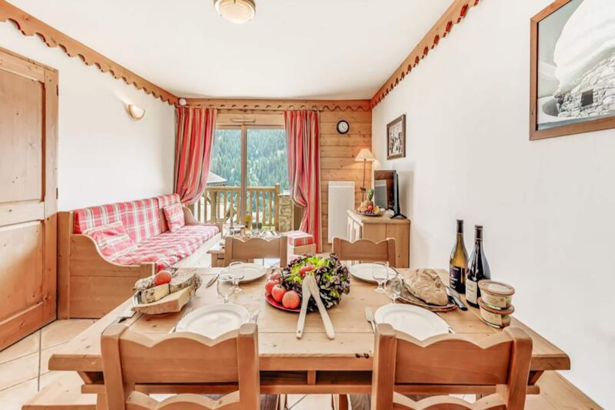 I udkanten af ??en rolig alpelandsby tilbyder Les Alpages de Champagny-residensen en harmonisk blanding af komfort og natur. Med sine seks rummelige hytter beliggende midt i betagende landskaber byder denne charmerende landsby dig velkommen til et sydvendt tilflugtssted med panoramaudsigt over Vanoise-massivet og Courchevel-skråningerne. Uanset om du søger eventyr eller afslapning, er denne ejendom din port til de franske alpers fortryllende skønhed. Indenfor er lejligheden omhyggeligt designet til at rumme op til seks gæster fordelt på to hyggelige soveværelser og en sovesofa i stuen. Den sydvendte balkon inviterer dig til at nyde solen, mens du nyder de majestætiske bjergudsigter. Et fuldt udstyret køkken åbner ud til et varmt og indbydende opholdsrum, perfekt til at slappe af efter en dag med alpin udforskning. Moderne faciliteter såsom Wi-Fi, tv og et privat skirum sikrer bekvemmelighed og komfort under hele dit ophold. Gæsterne har også adgang til residensens swimmingpool, fitnesscenter og spa-faciliteter, herunder hammam og sauna, hvilket tilføjer et strejf af luksus til din ferie. Beliggenheden er ideel til at udforske regionen, med en gratis shuttle-service, der kører hvert ottende minut om vinteren og tager dig til feriestedets centrum, svævebanen og ESF-skiskolen. Ud over skiløb tilbyder området aktiviteter året rundt såsom vandreture, mountainbiking og dyrelivsobservation i Vanoise Nationalpark. Den nærliggende landsby Champagny fortryller besøgende med sin autentiske charme, lokale markeder og indbydende atmosfære. Uanset om du er her for at klatre gennem uberørte pister eller blot sole dig i roen i alpelivet, lover Les Alpages de Champagny en uforglemmelig ferie, hvor hver eneste detalje er designet til at forbedre din oplevelse.