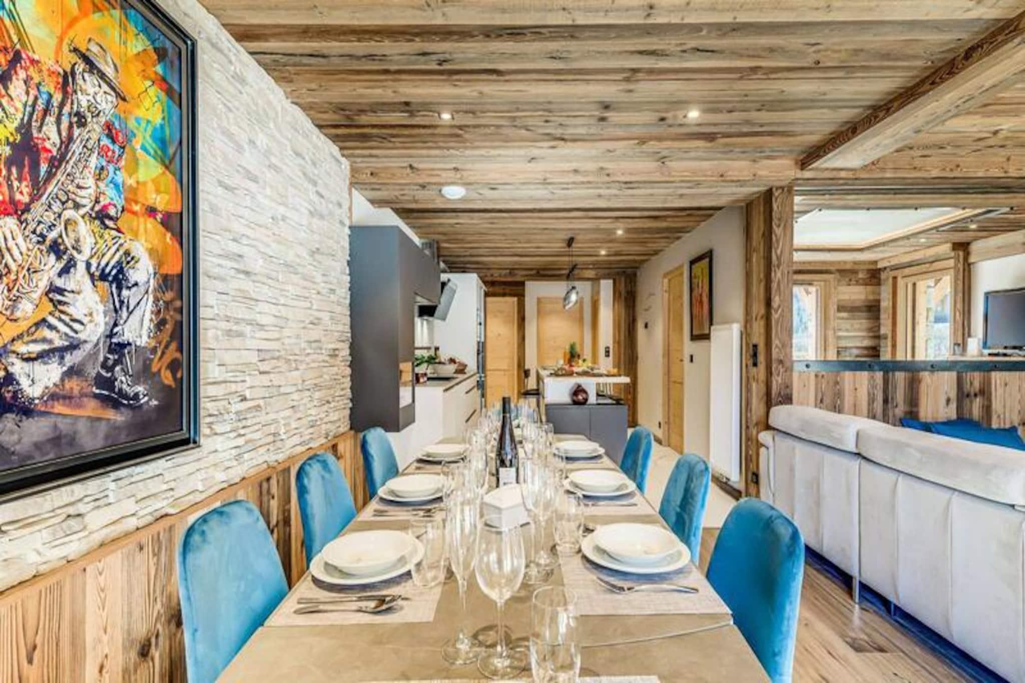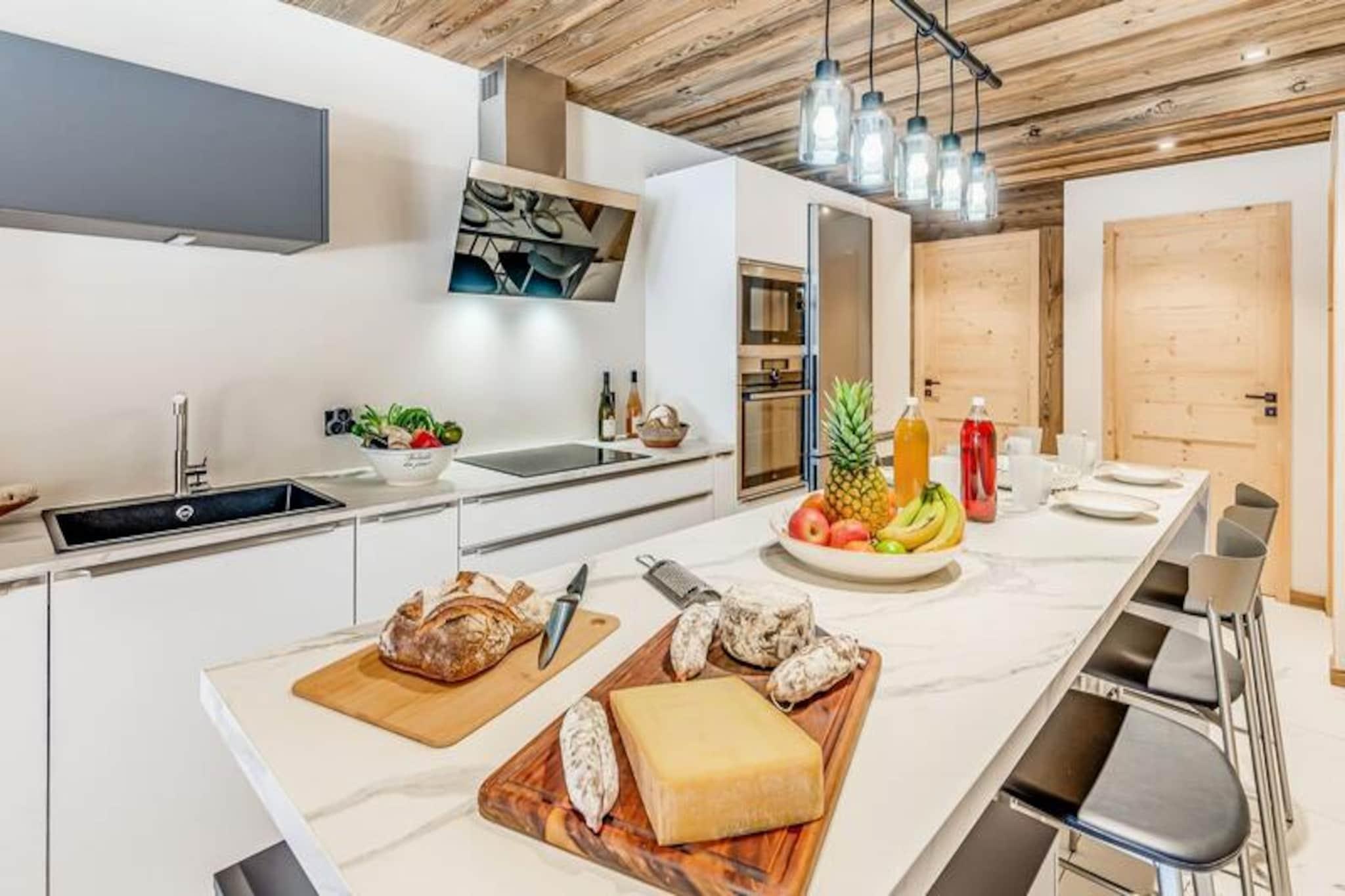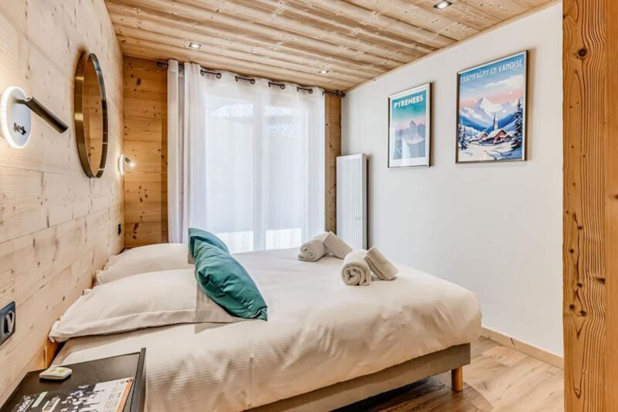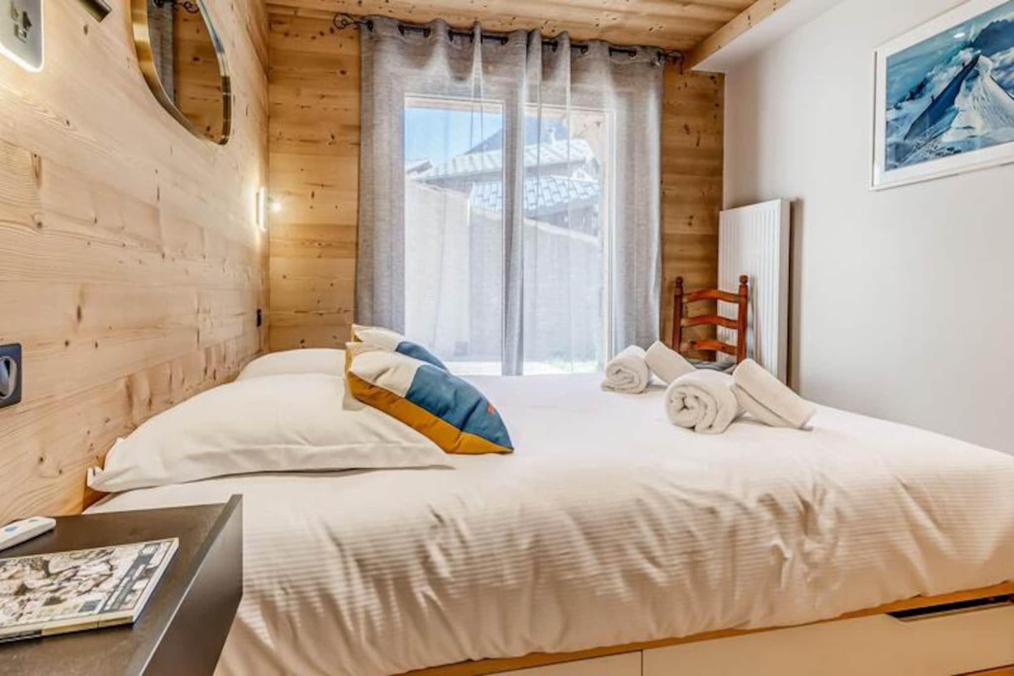 Beliggende over den charmerende landsby Champagny er PALAIS des DODES-residensen et moderne alpint mesterværk, der blander elegance med naturlig skønhed. Bygget i 2024 og beklædt med varmt lærketræ, tilbyder denne eksklusive ejendom en betagende udsigt over Vanoise-massivet, Courchevel-feriestedet og den maleriske dal nedenfor. Med sine tage i chaletstil og store altaner mod syd og vest er hver eneste detalje designet til at fordybe dig i den fredfyldte bjergatmosfære, samtidig med at den tilbyder uovertruffen komfort og luksus. Uanset om du kigger på de snedækkede tinder eller nyder de livlige farver fra en sommersolnedgang, er denne residens et paradis for både afslapning og eventyr. Indenfor byder Lejlighed 103 velkommen til op til otte gæster i sin rummelige 96 m² store planløsning, der er omhyggeligt designet til familier eller grupper. Lejligheden har tre hyggelige soveværelser, herunder to med terrasseadgang, og en sovealkove med køjesenge. Suiten mod øst kan prale af et privat badeværelse, mens det største badeværelse tilbyder både bruser og badekar for ultimativ bekvemmelighed. Det åbne køkken er fuldt udstyret med moderne apparater, perfekt til at tilberede solide måltider, som kan nydes i spisestuen med det store karnapvindue med udsigt over terrassen. Stuen, komplet med sovesofa, ethanolpejs og tv, er ideel til afslapning efter en dag med udforskning. Hoteltjenester såsom Wi-Fi, sengelinned, håndklæder og slutrengøring sikrer et problemfrit og behageligt ophold. Skiområdet ligger kun 200 meter væk og er let tilgængeligt via en naturskøn vandresti med udsigt over landsbyen. Butikker, herunder et håndværksbageri og et supermarked, ligger mindre end 50 meter fra din dørtrin, hvilket gør det nemt at fylde op med lokale lækkerier. Uanset om du er her for at stå på ski på de uberørte pister, vandre gennem alpine stier eller blot nyde regionens rolige skønhed, tilbyder PALAIS des DODES en uforglemmelig flugt i hjertet af de franske alper. Lad de majestætiske tinder og raffinerede komfort i denne bolig skabe værdsatte minder i mange år fremover.