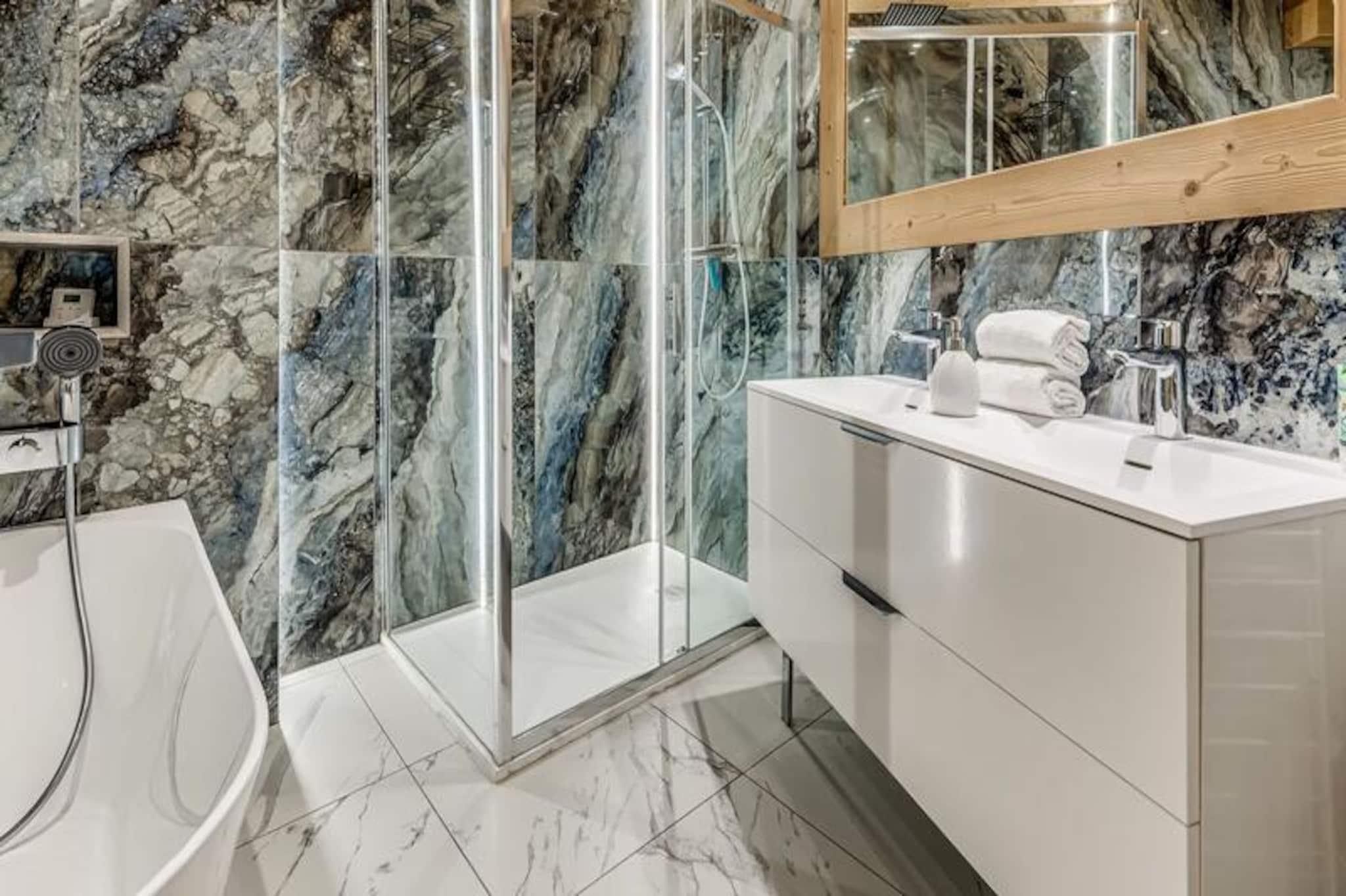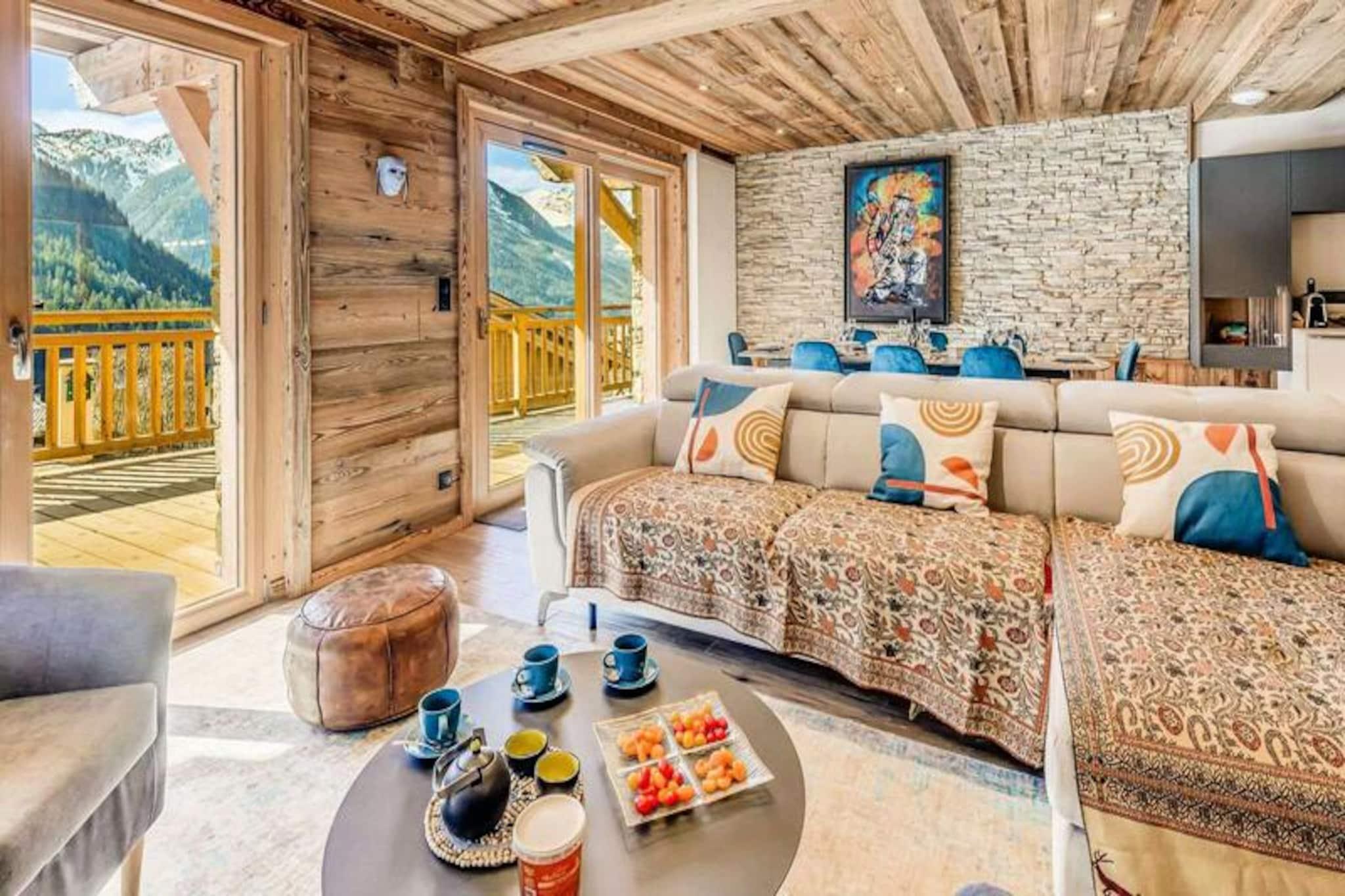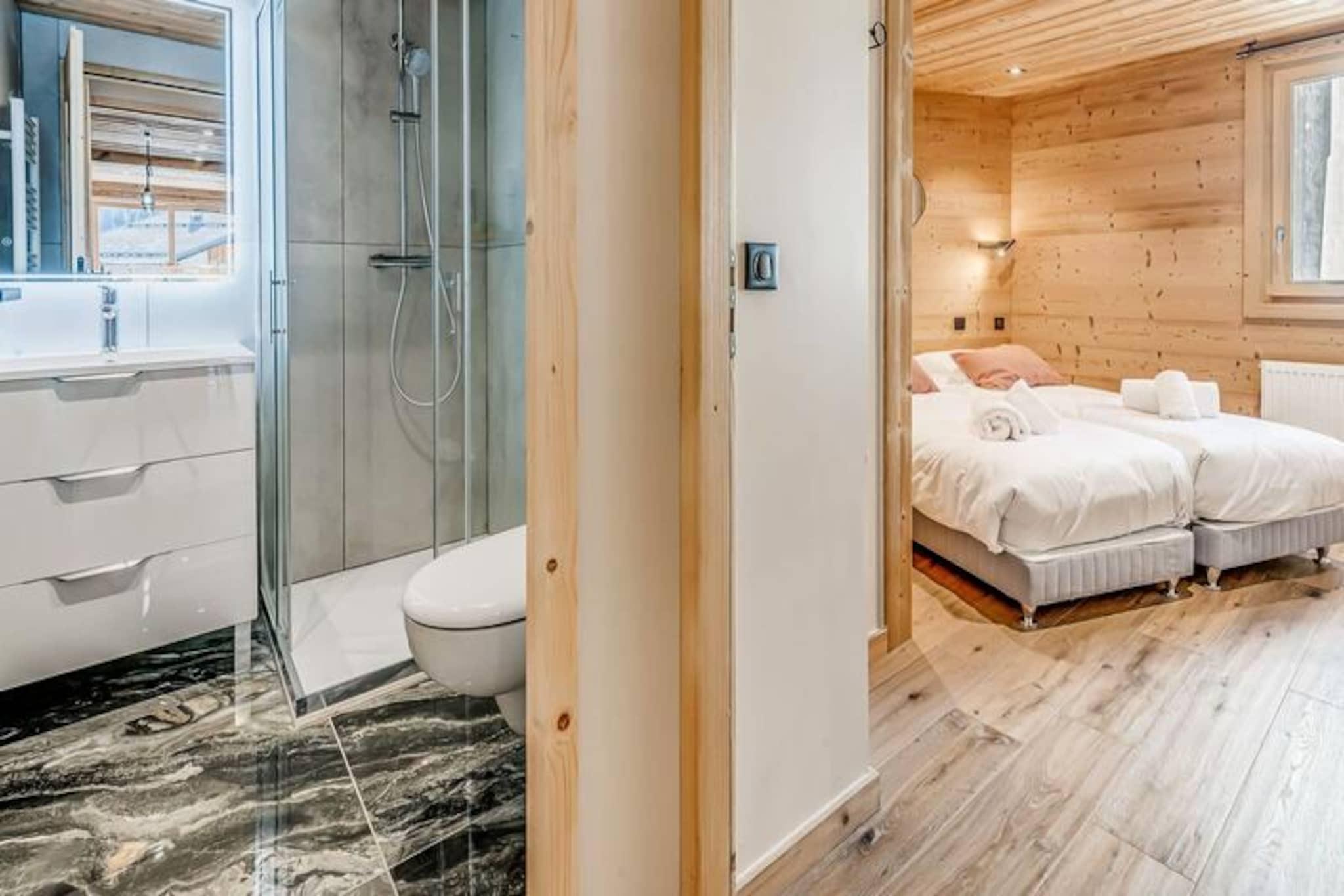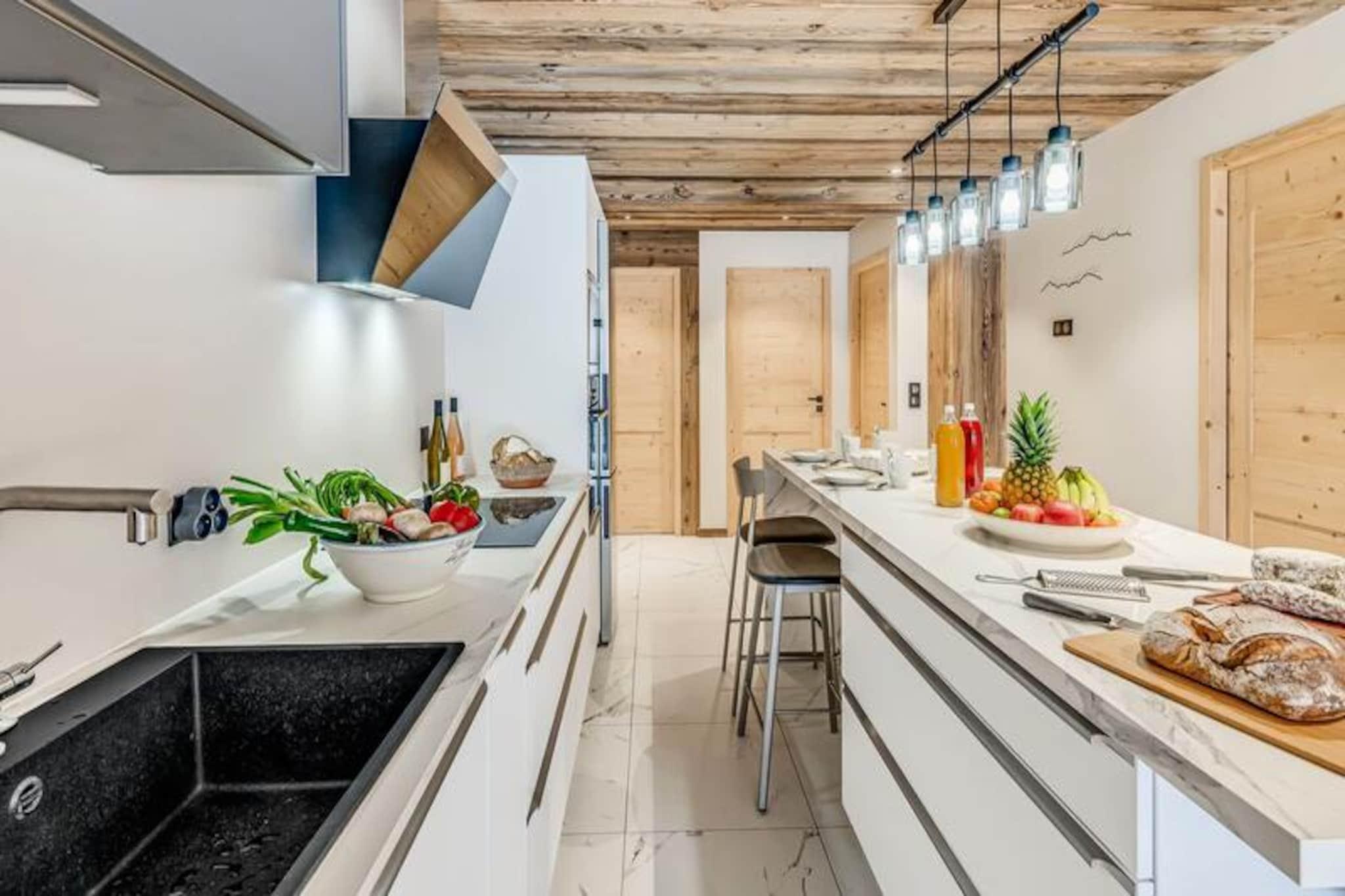 Beliggende over den charmerende landsby Champagny er PALAIS des DODES-residensen et moderne alpint mesterværk, der blander elegance med naturlig skønhed. Bygget i 2024 og beklædt med varmt lærketræ, tilbyder denne eksklusive ejendom en betagende udsigt over Vanoise-massivet, Courchevel-feriestedet og den maleriske dal nedenfor. Med sine tage i chaletstil og store altaner mod syd og vest er hver eneste detalje designet til at fordybe dig i den fredfyldte bjergatmosfære, samtidig med at den tilbyder uovertruffen komfort og luksus. Uanset om du kigger på de snedækkede tinder eller nyder de livlige farver fra en sommersolnedgang, er denne residens et paradis for både afslapning og eventyr. Indenfor byder Lejlighed 103 velkommen til op til otte gæster i sin rummelige 96 m² store planløsning, der er omhyggeligt designet til familier eller grupper. Lejligheden har tre hyggelige soveværelser, herunder to med terrasseadgang, og en sovealkove med køjesenge. Suiten mod øst kan prale af et privat badeværelse, mens det største badeværelse tilbyder både bruser og badekar for ultimativ bekvemmelighed. Det åbne køkken er fuldt udstyret med moderne apparater, perfekt til at tilberede solide måltider, som kan nydes i spisestuen med det store karnapvindue med udsigt over terrassen. Stuen, komplet med sovesofa, ethanolpejs og tv, er ideel til afslapning efter en dag med udforskning. Hoteltjenester såsom Wi-Fi, sengelinned, håndklæder og slutrengøring sikrer et problemfrit og behageligt ophold. Skiområdet ligger kun 200 meter væk og er let tilgængeligt via en naturskøn vandresti med udsigt over landsbyen. Butikker, herunder et håndværksbageri og et supermarked, ligger mindre end 50 meter fra din dørtrin, hvilket gør det nemt at fylde op med lokale lækkerier. Uanset om du er her for at stå på ski på de uberørte pister, vandre gennem alpine stier eller blot nyde regionens rolige skønhed, tilbyder PALAIS des DODES en uforglemmelig flugt i hjertet af de franske alper. Lad de majestætiske tinder og raffinerede komfort i denne bolig skabe værdsatte minder i mange år fremover.
