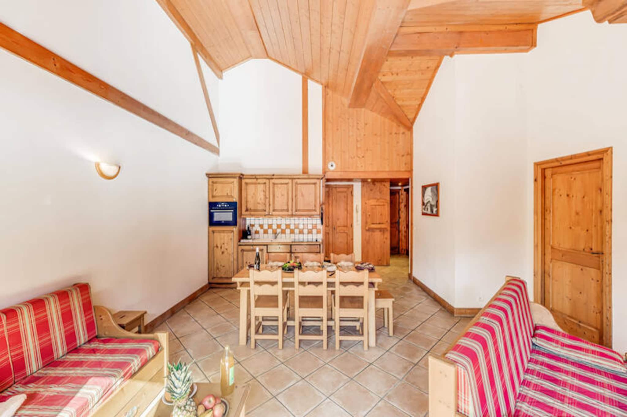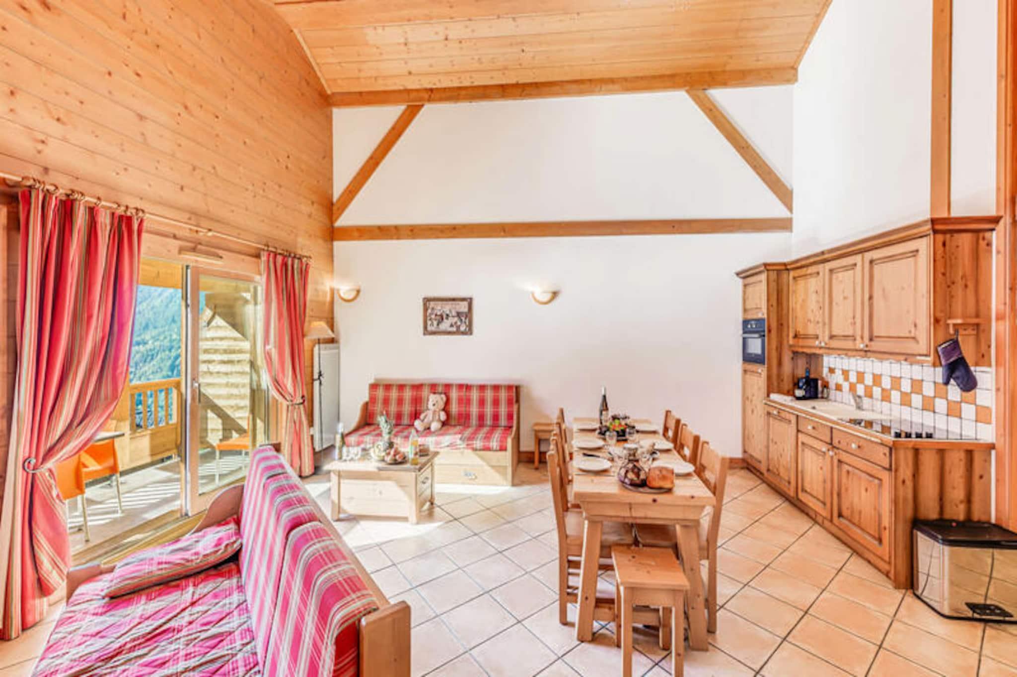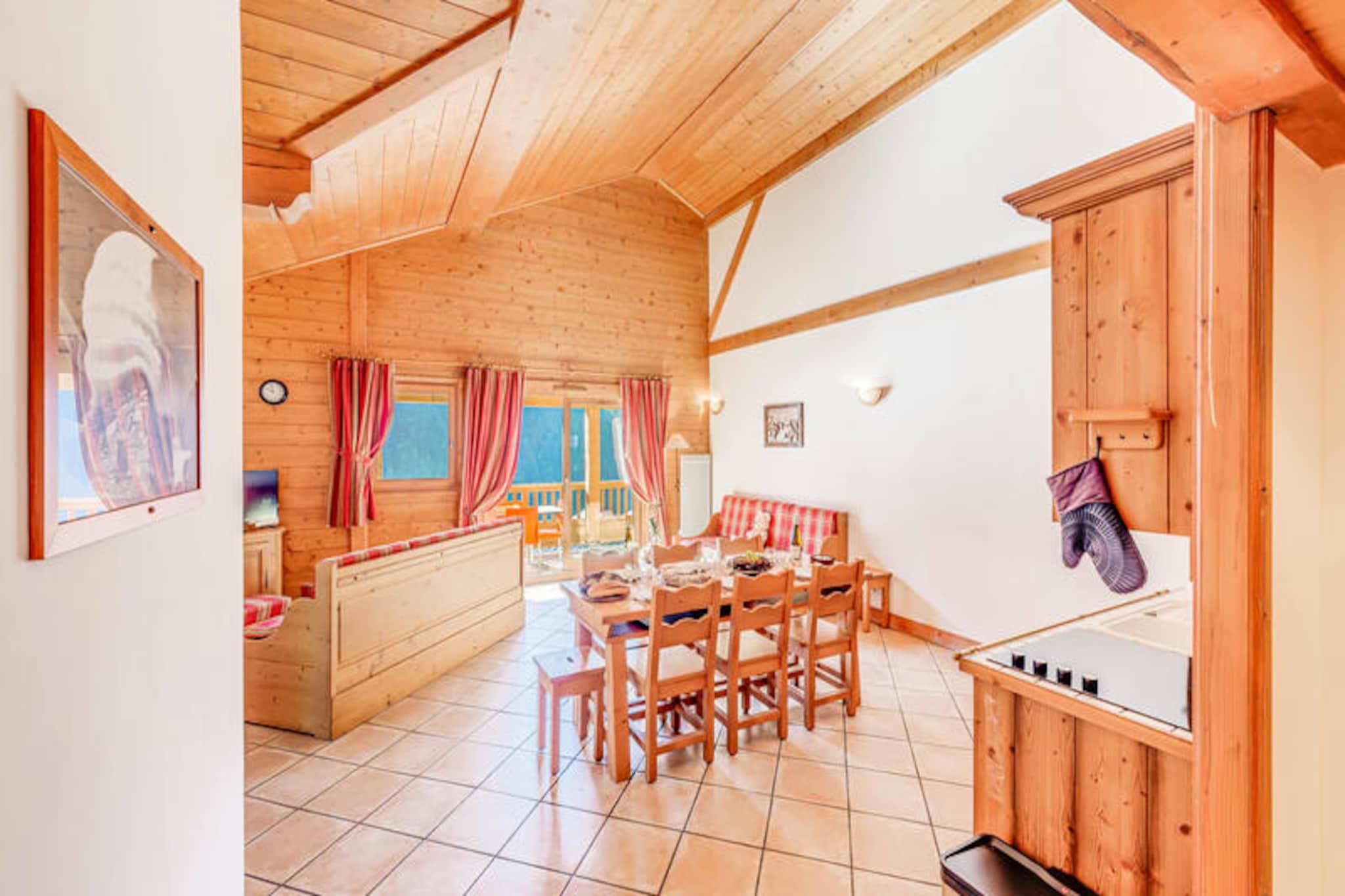 Ved indgangen til den charmerende landsby Champagny-en-Vanoise tilbyder Les Alpages de Champagny et roligt alpint tilflugtssted omgivet af betagende naturlig skønhed. Med seks rummelige hytter beliggende i hjertet af naturen, kan denne sydvendte landsby prale af panoramaudsigt over det majestætiske Vanoise-massiv og de berømte Courchevel-skråninger, hvilket skaber en idyllisk ramme for din bjergferie. Uanset om du søger eventyr eller afslapning, inviterer denne ejendom dig til at opleve magien i de franske alper i enhver sæson. \n\nResidensen kombinerer komfort og bekvemmelighed med en række førsteklasses faciliteter. Gæsterne kan nyde gratis adgang til den indendørs swimmingpool, fitnesscenter og spa-faciliteter, herunder et hammam og sauna, mens massagesalonen på stedet tilbyder yderligere forkælelse. Hver lejlighed er omhyggeligt designet med skibokse, overdækket parkering og solrige altaner, der maksimerer den fantastiske udsigt. Den rummelige 4-værelses lejlighed har plads til op til otte gæster, med et fuldt udstyret køkken, hyggelig opholdsstue og elegante soveværelser, herunder en master suite med eget badeværelse. Moderne detaljer som Wi-Fi, sengelinned og slutrengøring sikrer et problemfrit ophold. \n\nEn gratis shuttle-service kører hvert ottende minut om vinteren og forbinder dig med hjertet af feriestedet, svævebanens afgangssted og ESF-skiskolen. Ud over skiløb tilbyder Champagny-en-Vanoise adgang til Vanoise Nationalpark, et paradis for vandrere og naturentusiaster. Om sommeren forvandles regionen til et paradis af alpine stier, enge med vilde blomster og udendørsfestivaler. Uanset om du udforsker pisterne eller slapper af i spaen, er Les Alpages de Champagny den perfekte base for uforglemmelige eventyr i Alperne.