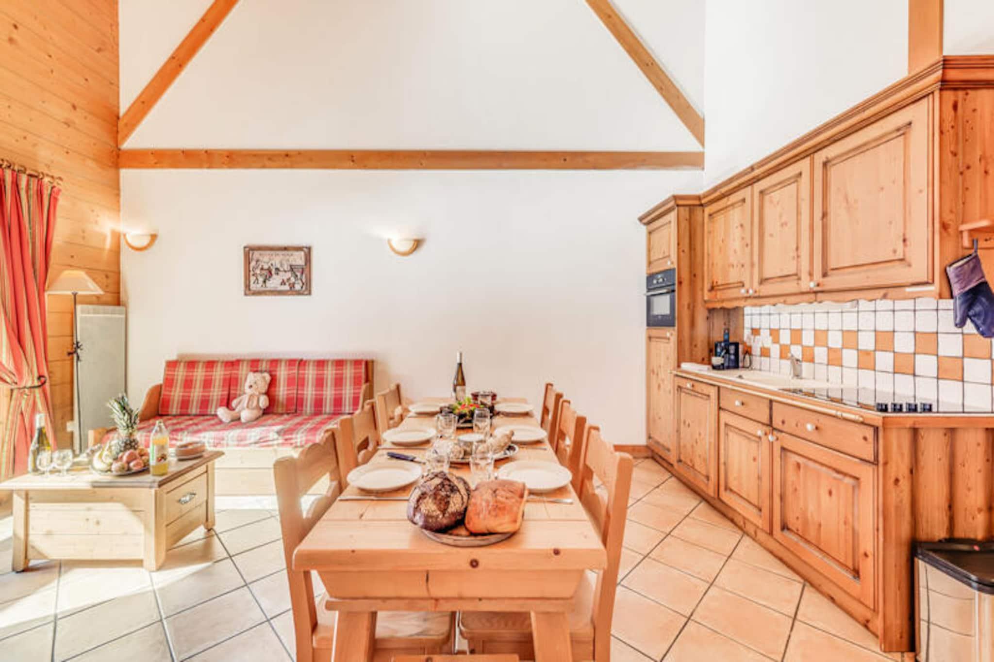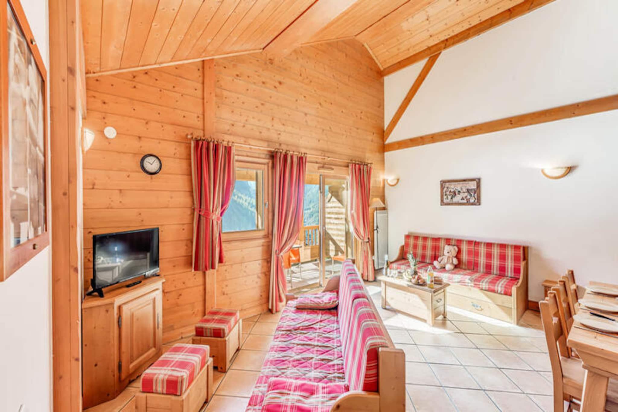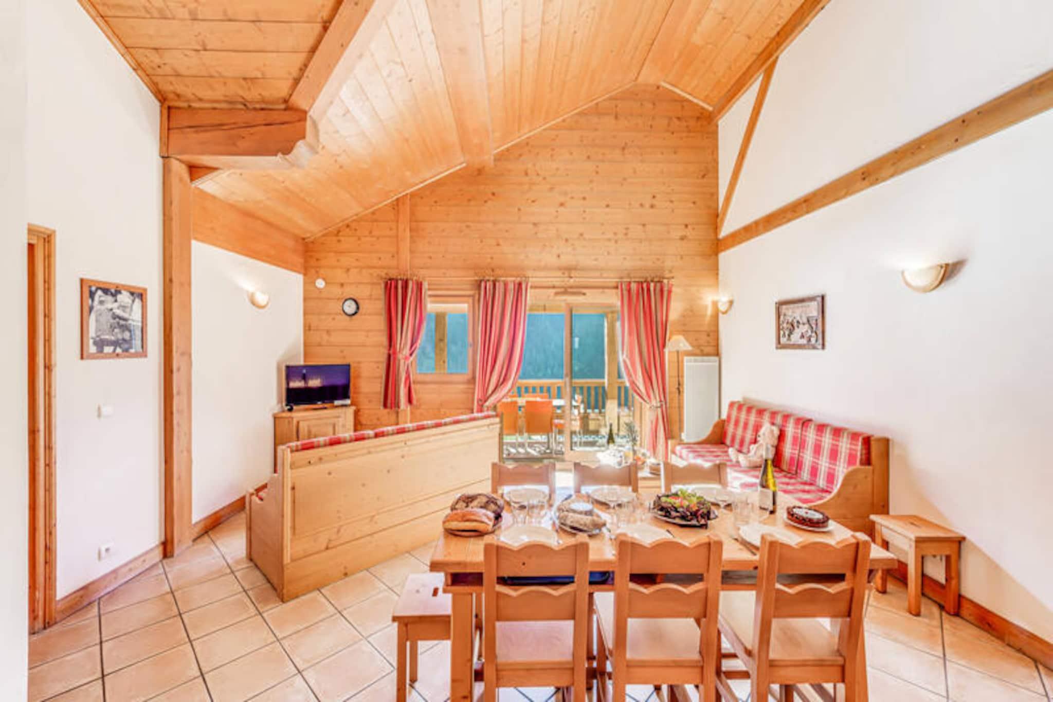 Ved indgangen til den charmerende landsby Champagny-en-Vanoise tilbyder Les Alpages de Champagny et roligt alpint tilflugtssted omgivet af betagende naturlig skønhed. Med seks rummelige hytter beliggende i hjertet af naturen, kan denne sydvendte landsby prale af panoramaudsigt over det majestætiske Vanoise-massiv og de berømte Courchevel-skråninger, hvilket skaber en idyllisk ramme for din bjergferie. Uanset om du søger eventyr eller afslapning, inviterer denne ejendom dig til at opleve magien i de franske alper i enhver sæson. \n\nResidensen kombinerer komfort og bekvemmelighed med en række førsteklasses faciliteter. Gæsterne kan nyde gratis adgang til den indendørs swimmingpool, fitnesscenter og spa-faciliteter, herunder et hammam og sauna, mens massagesalonen på stedet tilbyder yderligere forkælelse. Hver lejlighed er omhyggeligt designet med skibokse, overdækket parkering og solrige altaner, der maksimerer den fantastiske udsigt. Den rummelige 4-værelses lejlighed har plads til op til otte gæster, med et fuldt udstyret køkken, hyggelig opholdsstue og elegante soveværelser, herunder en master suite med eget badeværelse. Moderne detaljer som Wi-Fi, sengelinned og slutrengøring sikrer et problemfrit ophold. \n\nEn gratis shuttle-service kører hvert ottende minut om vinteren og forbinder dig med hjertet af feriestedet, svævebanens afgangssted og ESF-skiskolen. Ud over skiløb tilbyder Champagny-en-Vanoise adgang til Vanoise Nationalpark, et paradis for vandrere og naturentusiaster. Om sommeren forvandles regionen til et paradis af alpine stier, enge med vilde blomster og udendørsfestivaler. Uanset om du udforsker pisterne eller slapper af i spaen, er Les Alpages de Champagny den perfekte base for uforglemmelige eventyr i Alperne.