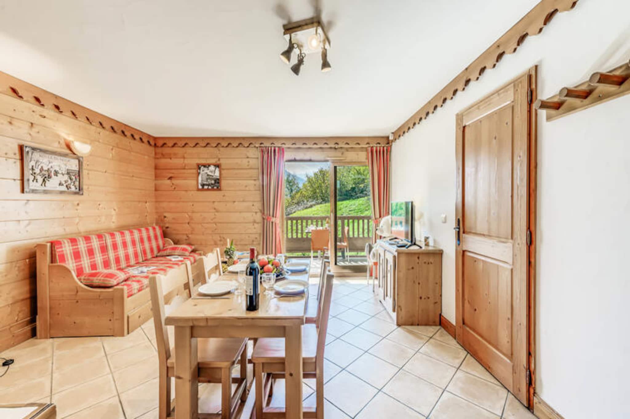 I udkanten af ??den charmerende landsby Champagny-en-Vanoise, omgivet af den uberørte skønhed i Vanoise Nationalpark, ligger den hyggelige residens Les Alpages de Champagny. Denne fredelige landsby med seks store hytter tilbyder en harmonisk blanding af alpin tradition og moderne komfort, hvilket gør den til et ideelt tilflugtssted for både naturelskere og skientusiaster. Med sin sydvendte beliggenhed kan gæsterne nyde en betagende udsigt over Courchevel-pisterne og det majestætiske Vanoise-massiv, hvilket skaber en rolig kulisse for din ferie. Residensen kan prale af en række førsteklasses faciliteter, der er designet til at forbedre dit ophold. Slap af i den opvarmede indendørs swimmingpool, slap af i spaen med hammam og sauna, eller forkæl dig selv med en beroligende massage i Infiniment Zen-salonen. Fitnessentusiaster vil sætte pris på stedets fitnesscenter, mens familier kan nyde bekvemmeligheden med en gratis shuttle-service, der kører hvert ottende minut om vinteren og forbinder dig med feriestedets centrum, svævebanen og ESF-skiskolen. Hver lejlighed er omhyggeligt udstyret med et skirum, overdækket parkeringsplads og en solrig balkon, hvor man kan nyde den alpine udsigt. Selve lejligheden er et komfortabelt paradis med en vestvendt terrasse, et fuldt udstyret køkken og en hyggelig stue med en sovesofa. Soveværelset tilbyder en luksuriøs dobbeltseng og rigelig opbevaringsplads, mens badeværelset er udstyret med et badekar og håndklædetørrer for ekstra luksus. Uanset om du er her for at stå på ski på Courchevels verdensklasse-pister eller udforske vandrestierne i Vanoise Nationalpark, er Les Alpages de Champagny den perfekte base for dine eventyr. Flygt til dette idylliske alpine tilflugtssted og skab varige minder midt i de franske alpers fantastiske landskaber. Med sine exceptionelle faciliteter og førsteklasses beliggenhed lover denne bolig en ferieoplevelse, der er både afslappende og spændende.