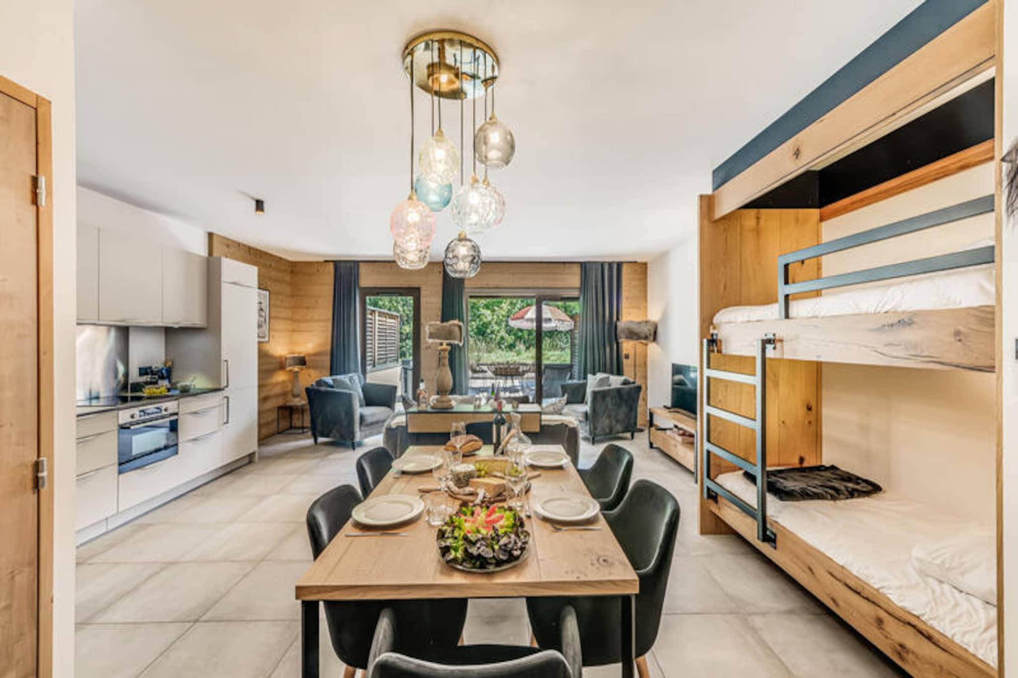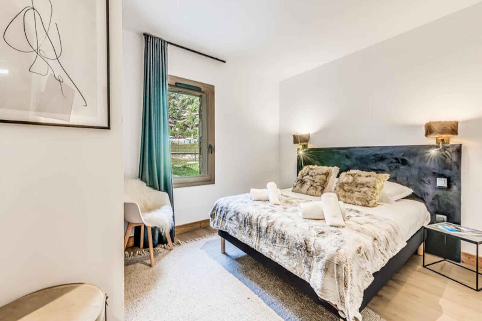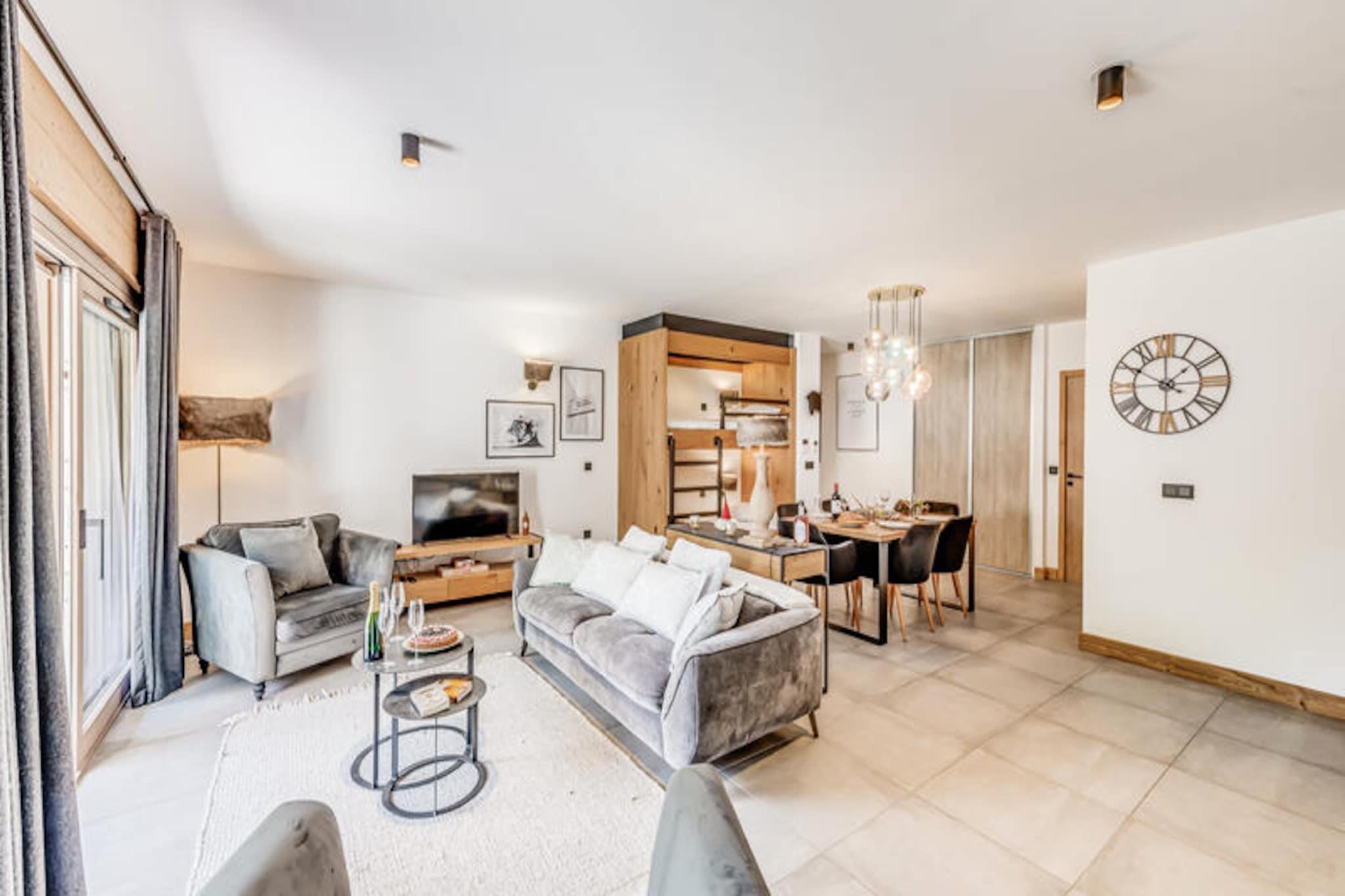 Denne moderne og elegante lejlighed i Terrasses de la Vanoise-residensen ligger i udkanten af ??de maleriske Vanoise-bjerge og tilbyder et luksuriøst alpint tilflugtssted. Ejendommen ligger i den charmerende landsby Villard Dessous, lige over for landsbyen Champagny en Vanoise, og kan prale af en betagende udsigt over de omkringliggende tinder og dale. Uanset om du besøger stedet om sommeren eller vinteren, giver beliggenheden nem adgang til områdets naturlige skønhed og aktiviteter, med butikker og skilifte kun 500 meter væk og gratis kommunale shuttlebusser bekvemt placeret 50 meter fra residensen. \n\nLejligheden, der ligger i stueetagen, er omhyggeligt designet til komfort og stil. Den har en master suite med dobbeltseng, tv, skrivebord og eget brusebad samt et hyggeligt bjerghjørne med køjesenge. Den rummelige stue åbner ud til en sydvendt terrasse, perfekt til at nyde solen og beundre det fantastiske Vanoise-landskab. Et fuldt udstyret køkken, spiseplads og moderne faciliteter såsom vaskemaskine/tørretumbler, satellit-tv og Wi-Fi sikrer et problemfrit ophold. Gæsterne kan også benytte sig af hotellets serviceydelser, herunder sengelinned, håndklæder og slutrengøring. \n\nChampagny en Vanoise tilbyder et væld af aktiviteter året rundt. Om vinteren kan du nyde skiløb og snowboarding i verdensklasse, mens sommeren inviterer dig til at udforske vandrestier, slappe af ved den nærliggende swimmingpool eller forkæle dig selv med spabehandlinger. Den gratis shuttle-service gør det nemt at opdage de charmerende omgivelser, fra Les Rochers til det fredfyldte Champagny-le-Haut. \n\nUanset om du søger eventyr eller ro, kombinerer denne lejlighed moderne komfort med den tidløse charme i de franske alper og lover en uforglemmelig ferieoplevelse.