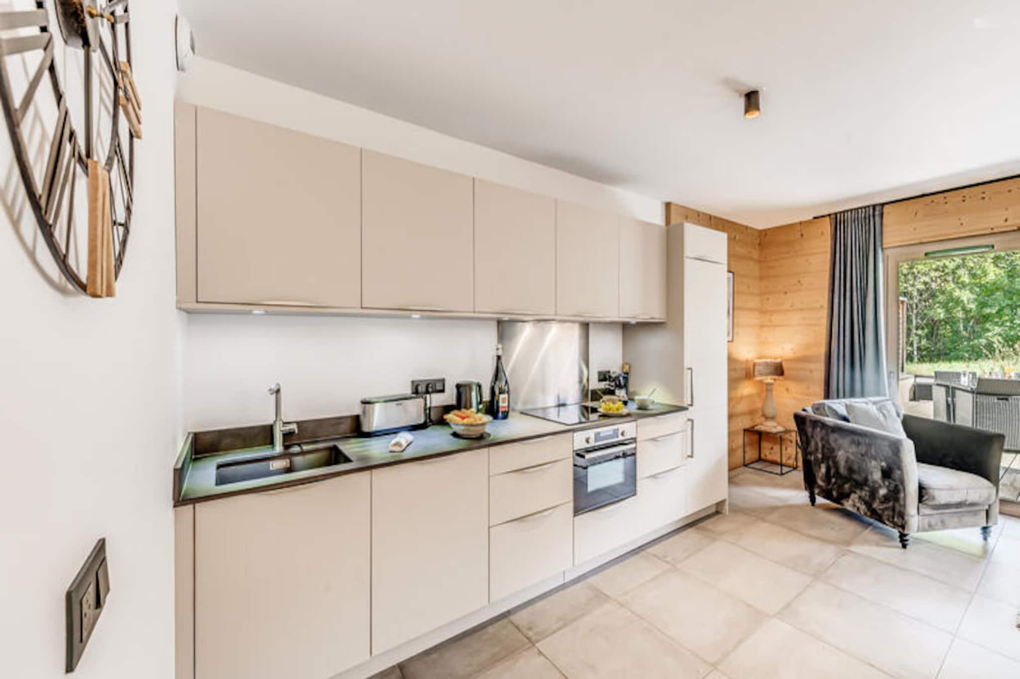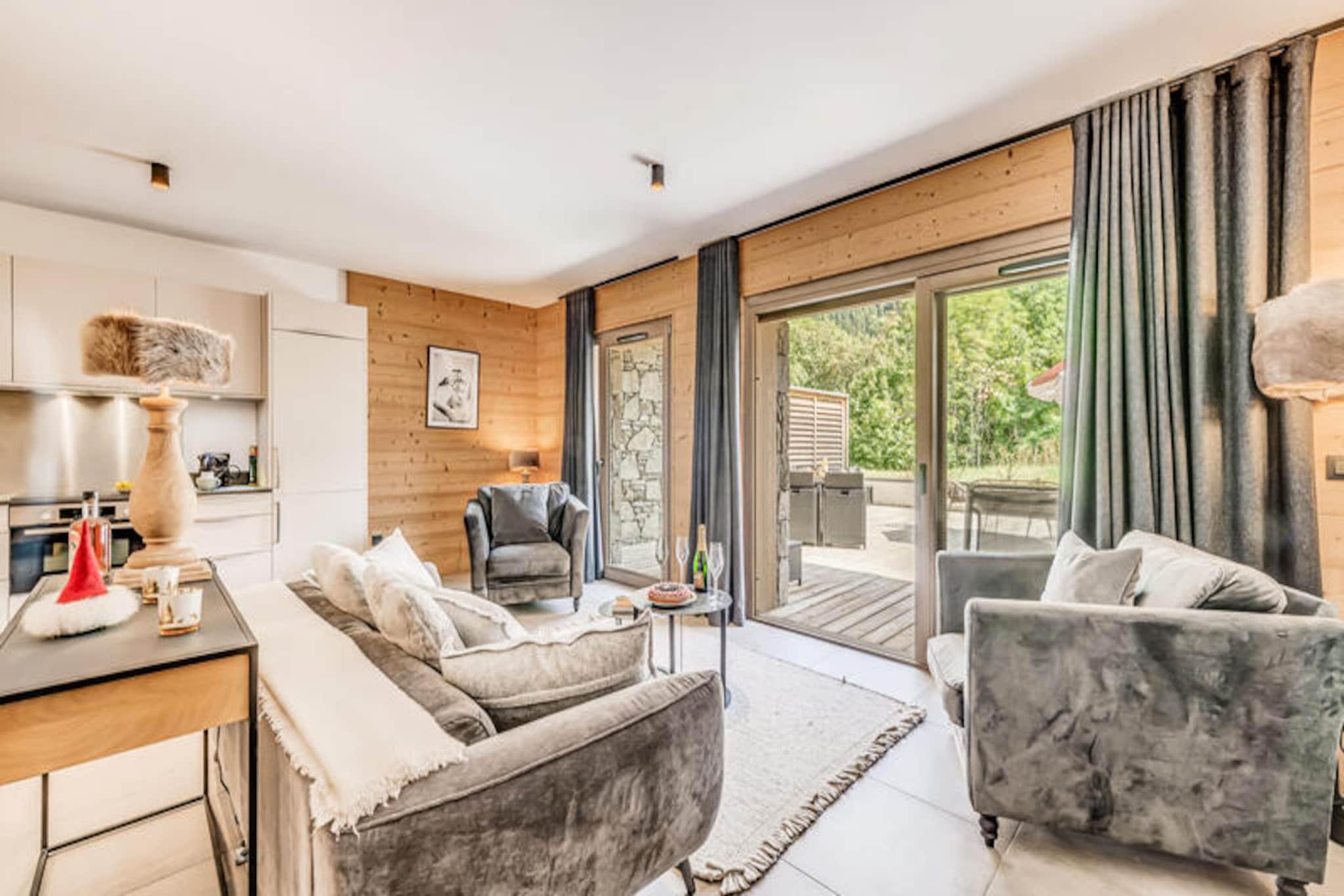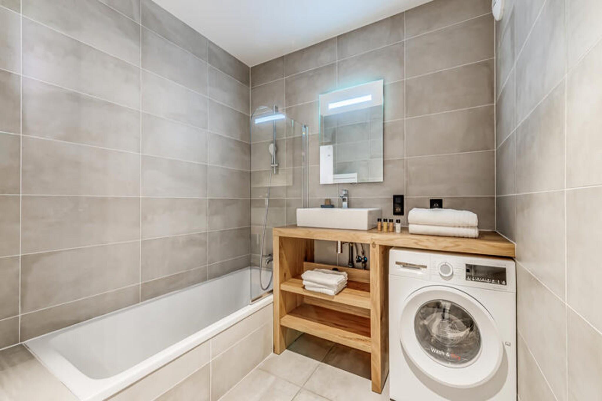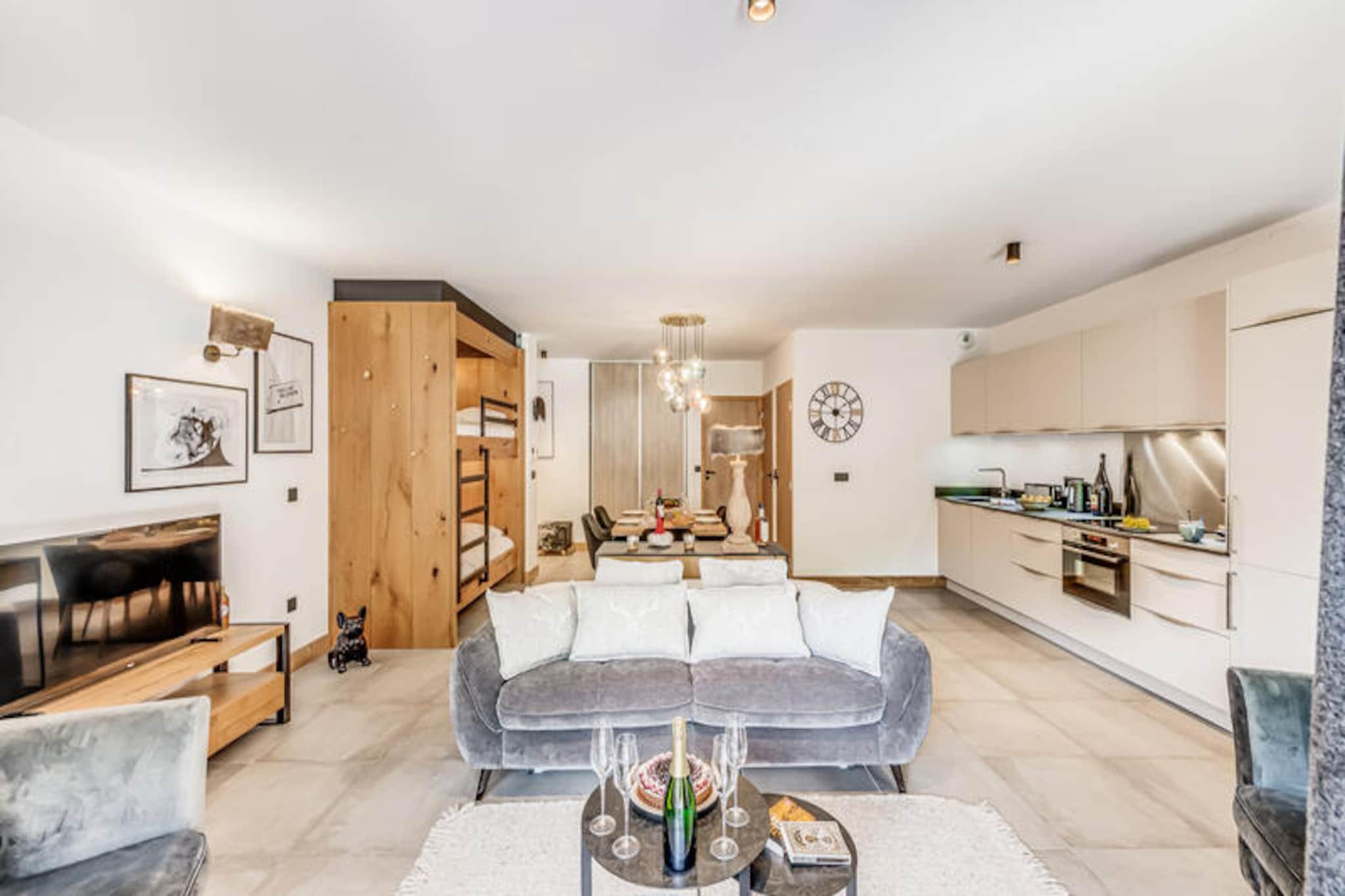 Denne moderne og elegante lejlighed i Terrasses de la Vanoise-residensen ligger i udkanten af ??de maleriske Vanoise-bjerge og tilbyder et luksuriøst alpint tilflugtssted. Ejendommen ligger i den charmerende landsby Villard Dessous, lige over for landsbyen Champagny en Vanoise, og kan prale af en betagende udsigt over de omkringliggende tinder og dale. Uanset om du besøger stedet om sommeren eller vinteren, giver beliggenheden nem adgang til områdets naturlige skønhed og aktiviteter, med butikker og skilifte kun 500 meter væk og gratis kommunale shuttlebusser bekvemt placeret 50 meter fra residensen. \n\nLejligheden, der ligger i stueetagen, er omhyggeligt designet til komfort og stil. Den har en master suite med dobbeltseng, tv, skrivebord og eget brusebad samt et hyggeligt bjerghjørne med køjesenge. Den rummelige stue åbner ud til en sydvendt terrasse, perfekt til at nyde solen og beundre det fantastiske Vanoise-landskab. Et fuldt udstyret køkken, spiseplads og moderne faciliteter såsom vaskemaskine/tørretumbler, satellit-tv og Wi-Fi sikrer et problemfrit ophold. Gæsterne kan også benytte sig af hotellets serviceydelser, herunder sengelinned, håndklæder og slutrengøring. \n\nChampagny en Vanoise tilbyder et væld af aktiviteter året rundt. Om vinteren kan du nyde skiløb og snowboarding i verdensklasse, mens sommeren inviterer dig til at udforske vandrestier, slappe af ved den nærliggende swimmingpool eller forkæle dig selv med spabehandlinger. Den gratis shuttle-service gør det nemt at opdage de charmerende omgivelser, fra Les Rochers til det fredfyldte Champagny-le-Haut. \n\nUanset om du søger eventyr eller ro, kombinerer denne lejlighed moderne komfort med den tidløse charme i de franske alper og lover en uforglemmelig ferieoplevelse.
