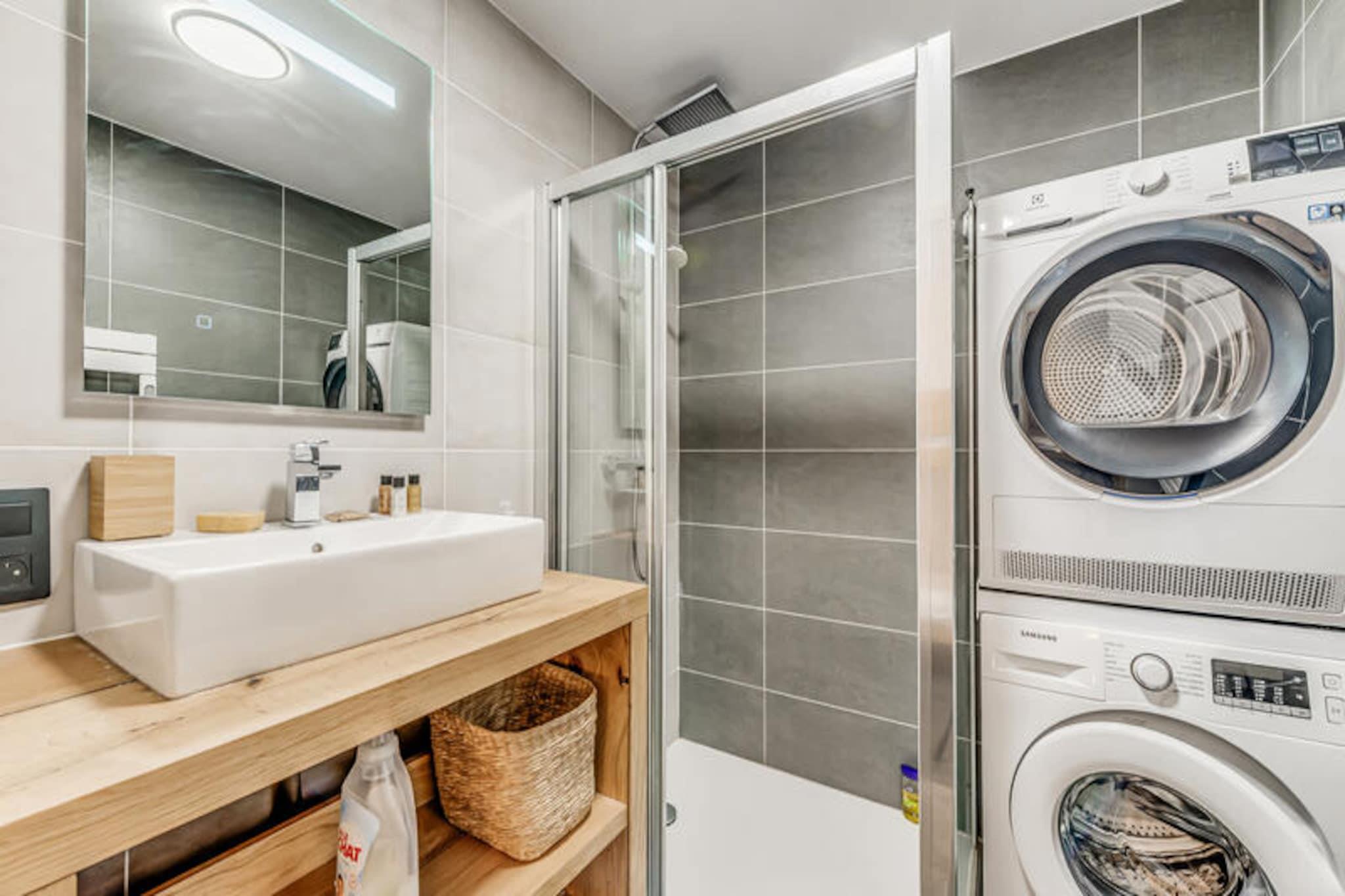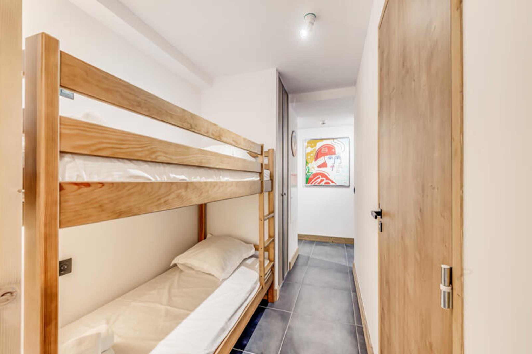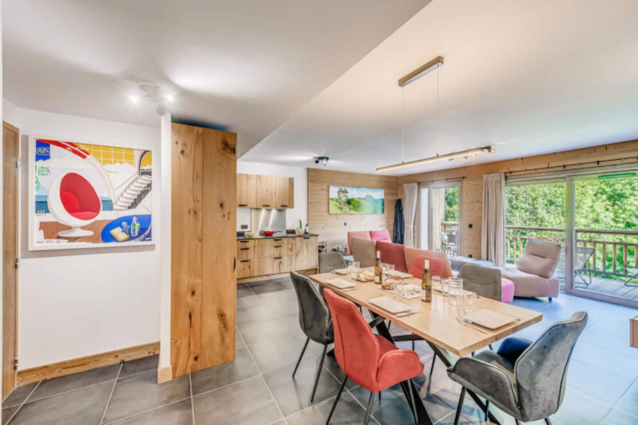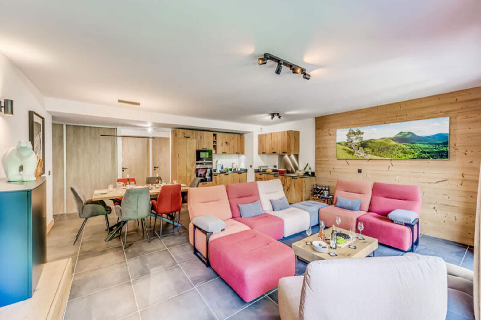Højt over den maleriske dal, hvor de majestætiske tinder af Vanoise-bjergene strækker sig mod horisonten, ligger den elegante residens Terrasses de la Vanoise. Dette moderne alpine tilflugtssted, beliggende i landsbyen Villard Dessous, tilbyder en uovertruffen blanding af luksus og bekvemmelighed. Med en betagende udsigt over Champagny en Vanoise og de omkringliggende landskaber er det den perfekte ramme for en mindeværdig bjergferie. Uanset om du er her for vinterskiløb eller sommervandreture, vil charmen ved denne beliggenhed fange dig fra det øjeblik, du ankommer. \n\nLejligheden Vulcania, der ligger på anden sal, er et rummeligt fristed designet til op til otte gæster. Dens gennemtænkte planløsning omfatter tre nordvendte soveværelser med bløde dobbeltsenge, en hyggelig hytte med køjesenge og to moderne badeværelser udstyret med håndklædetørrer. Det fuldt udstyrede L-formede køkken åbner ud til en stilfuld stue med satellit-tv og adgang til en sydvendt balkon. Her kan du nyde den friske alpine luft, mens du beundrer den fantastiske udsigt over Vanoise-toppene. Hotelservices såsom Wi-Fi, sengelinned, håndklæder og slutrengøring sikrer et problemfrit og behageligt ophold.\n\nResidensen ligger kun 500 meter fra butikker og skilifter og tilbyder nem adgang til Champagnys faciliteter. Gratis kommunale shuttlebusser, der kører hvert 30. minut i højsæsonen, forbinder dig med den charmerende landsby og det fredfyldte Champagny-le-Haut-område. Om sommeren tilbyder den nærliggende swimmingpool og spa afslapning efter en dag med udforskning af stierne i Vanoise Nationalpark.\n\nUanset om du søger spændende skieventyr eller rolige øjeblikke omgivet af natur, er Terrasses de la Vanoise din port til det bedste af de franske alper. Lad bjergenes skønhed og komforten i denne residens skabe uforglemmelige minder for dig og dine kære.