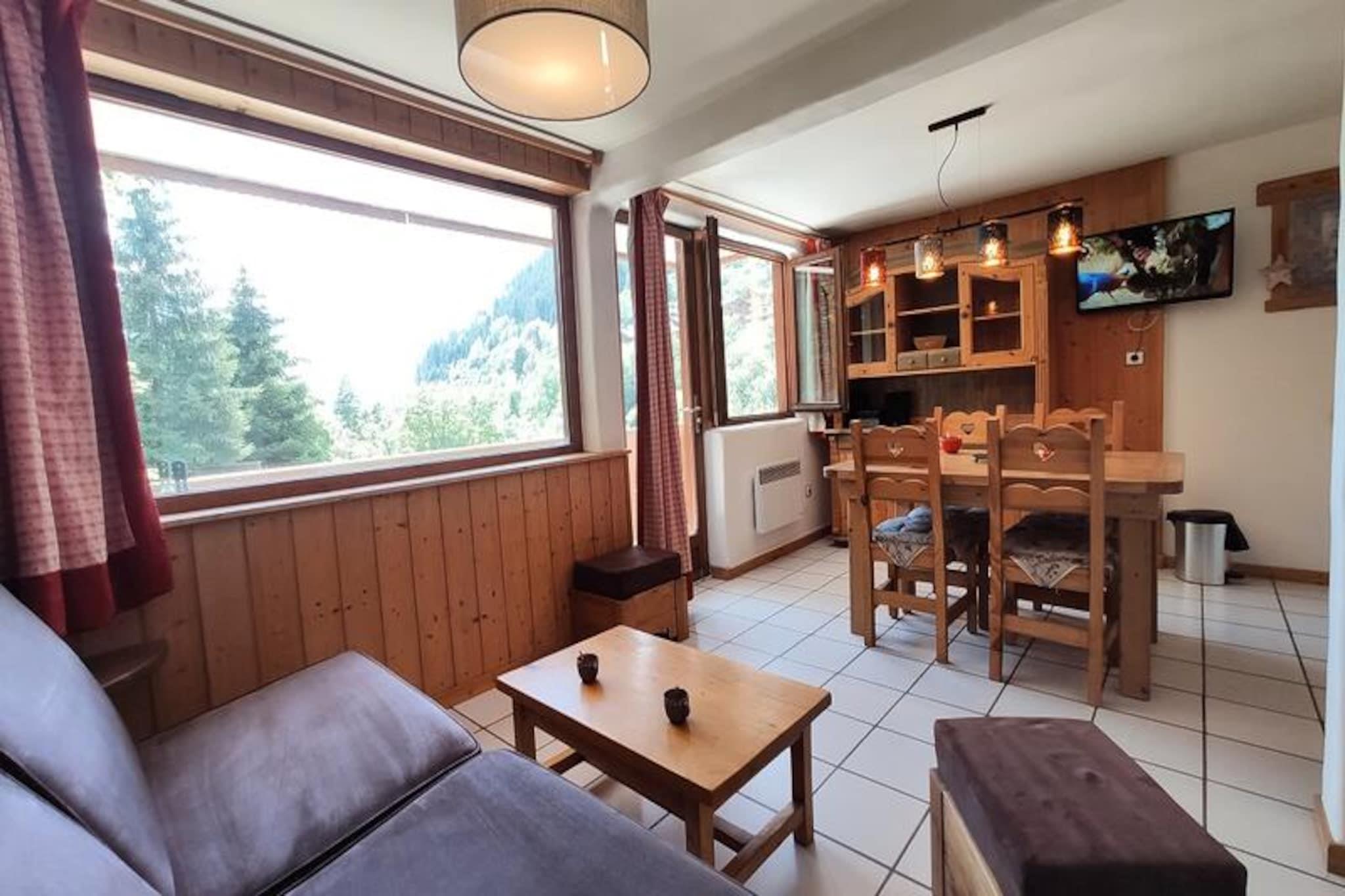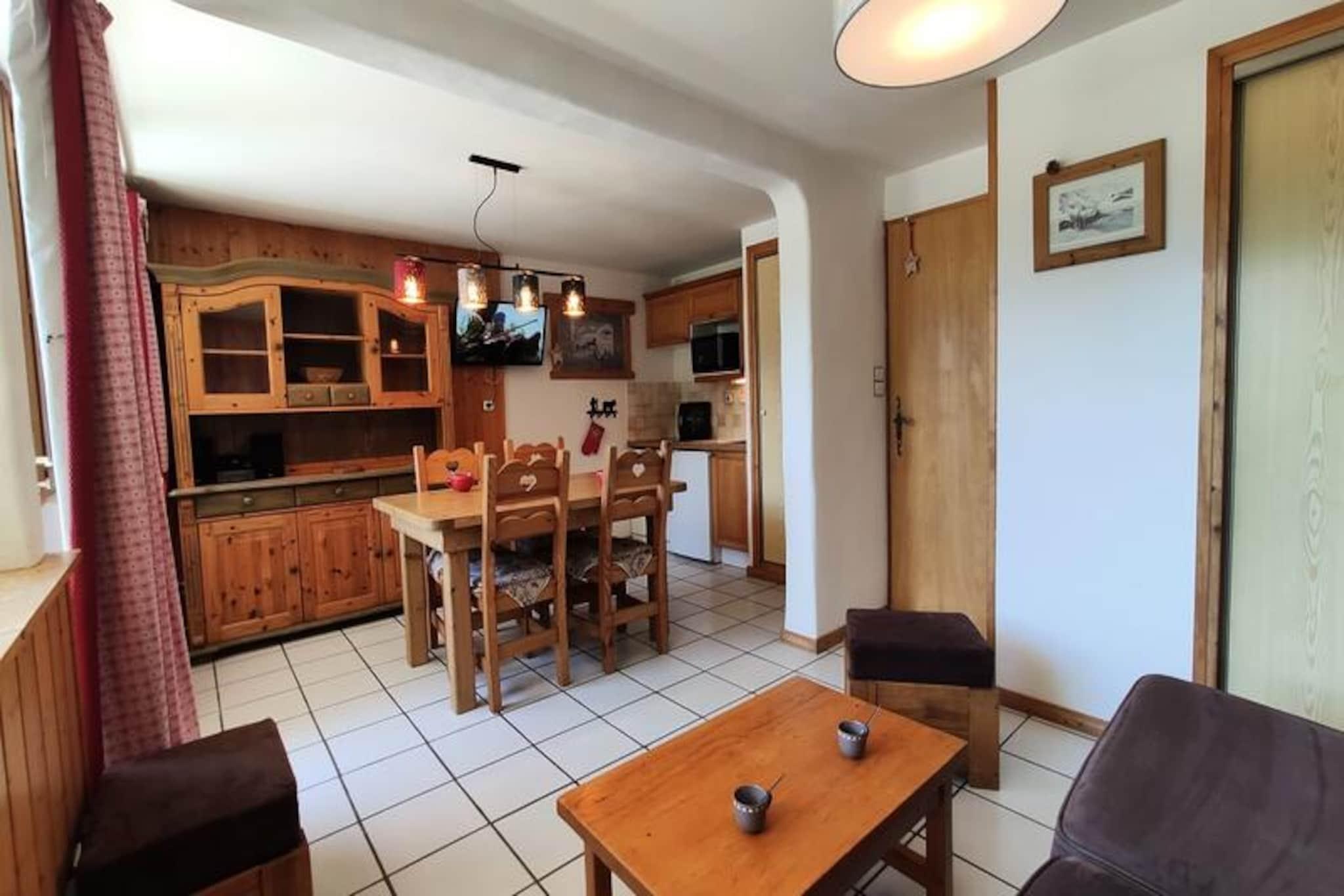 Ved indgangen til den majestætiske Vanoise Nationalpark inviterer Les Edelweiss Residence i Champagny-en-Vanoise dig til at opleve charmen ved et alpint liv. Omgivet af betagende bjergudsigter og beliggende i det rolige Hameau des Rochers, tilbyder denne residens en perfekt blanding af rustik elegance og moderne komfort. Hytterne, med deres sten- og træfacader og skifertage, udstråler en varm og indbydende atmosfære, hvilket gør det til et ideelt tilflugtssted for både naturelskere og eventyrlystne. \n\nIndenfor skaber træpanelerne en hyggelig atmosfære, der komplementerer de fantastiske omgivelser. Residensen har en delvist overdækket opvarmet swimmingpool, der er åben fra juli til september, perfekt til afslapning efter en dag med udforskning. Gæsterne kan også nyde den fælles sauna, tennisbane og petanquebane, hvilket sikrer en række aktiviteter til afslapning og rekreation. Indkvarteringen inkluderer Wi-Fi-adgang og et tv, hvilket gør dit ophold endnu mere bekvemt. Studiolejligheden til fire personer kan prale af en balkon, en stue med en sovesofa, et udstyret tekøkken og et soveområde med køjesenge, hvilket giver et komfortabelt sted for familier eller små grupper. \n\nChampagny-en-Vanoise tilbyder et væld af udendørsaktiviteter, lige fra vandreture langs markerede stier til toppe og bjerghytter, til klatring via ferrata-ruter og adventurebaner. Mountainbike-entusiaster vil finde masser af stier at udforske, mens det rolige alpine miljø giver muligheder for fredelige vandreture og dyrelivsobservation. Den nærliggende Vanoise Nationalpark er et paradis for naturelskere, der tilbyder uovertrufne landskaber og en mangfoldig flora og fauna. \n\nUanset om du søger eventyr eller ro, er Les Edelweiss Residence din indgang til en uforglemmelig alpin flugt. Med sine idylliske omgivelser og gennemtænkte faciliteter lover det en ferie fyldt med komfort, udforskning og den tidløse skønhed i de franske alper.