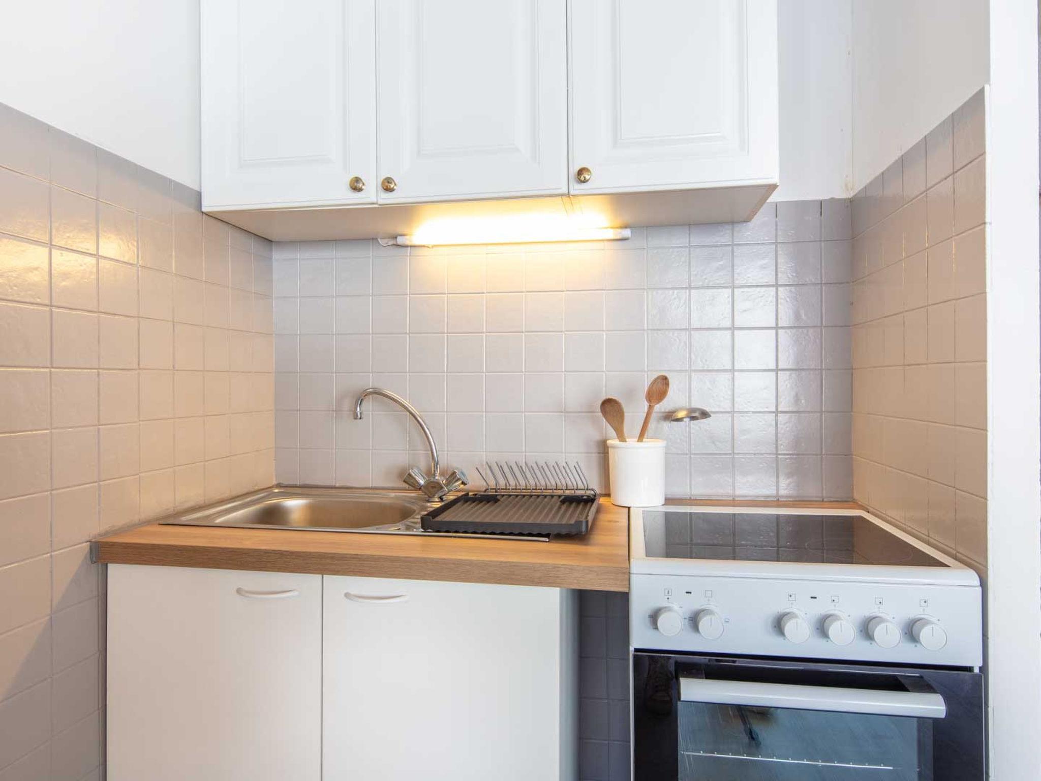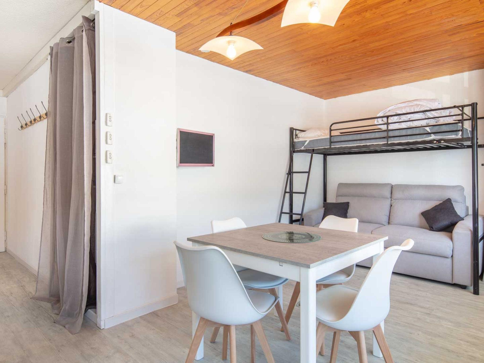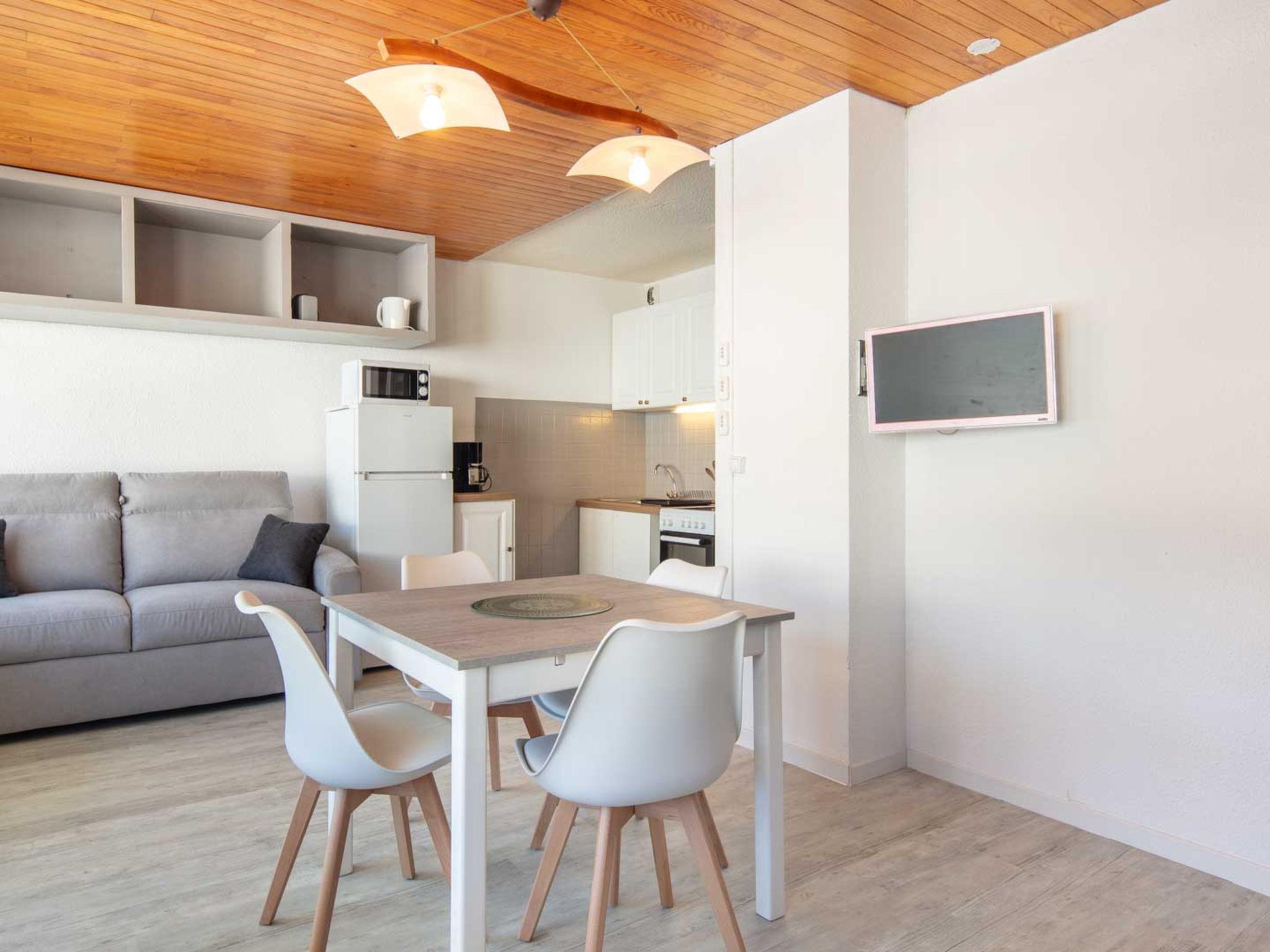 "Les Carlines", 1-room studio 30 m2 on 4th floor. Object suitable for 5 adults. Living room with 2 sofabeds and 1 x 2 bunk beds, 2 pull-out beds and TV. Open kitchen (2 hot plates, microwave, electric coffee machine). Shower/WC. Balcony. View of the mountains and the ski run. Please note: non-smokers only. 1 pet/ dog allowed. Offer by a commercial proprietor according to Art. 155, IV, CGI